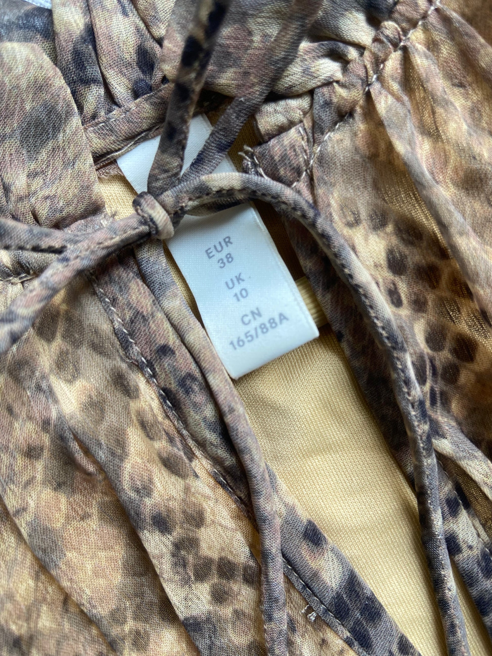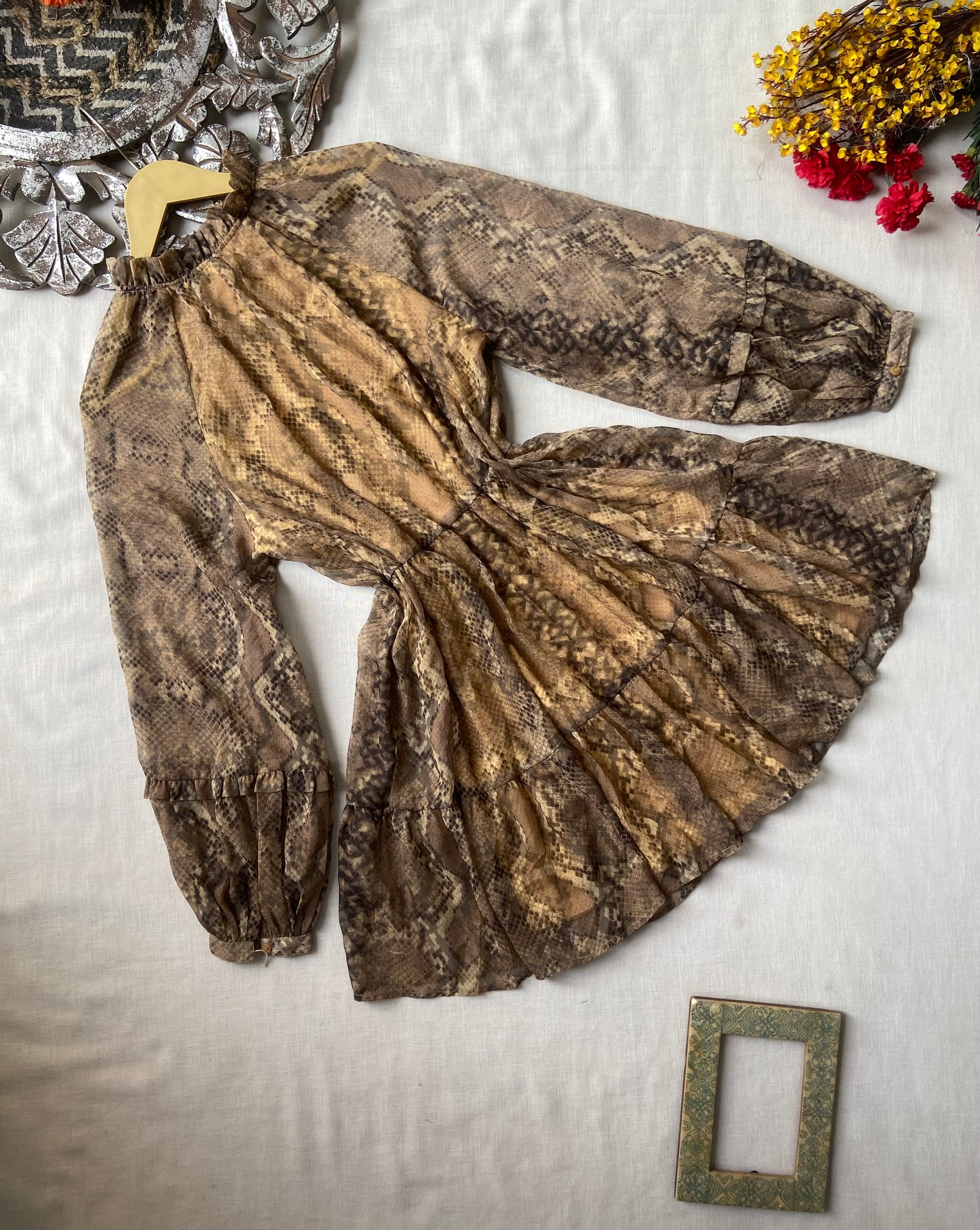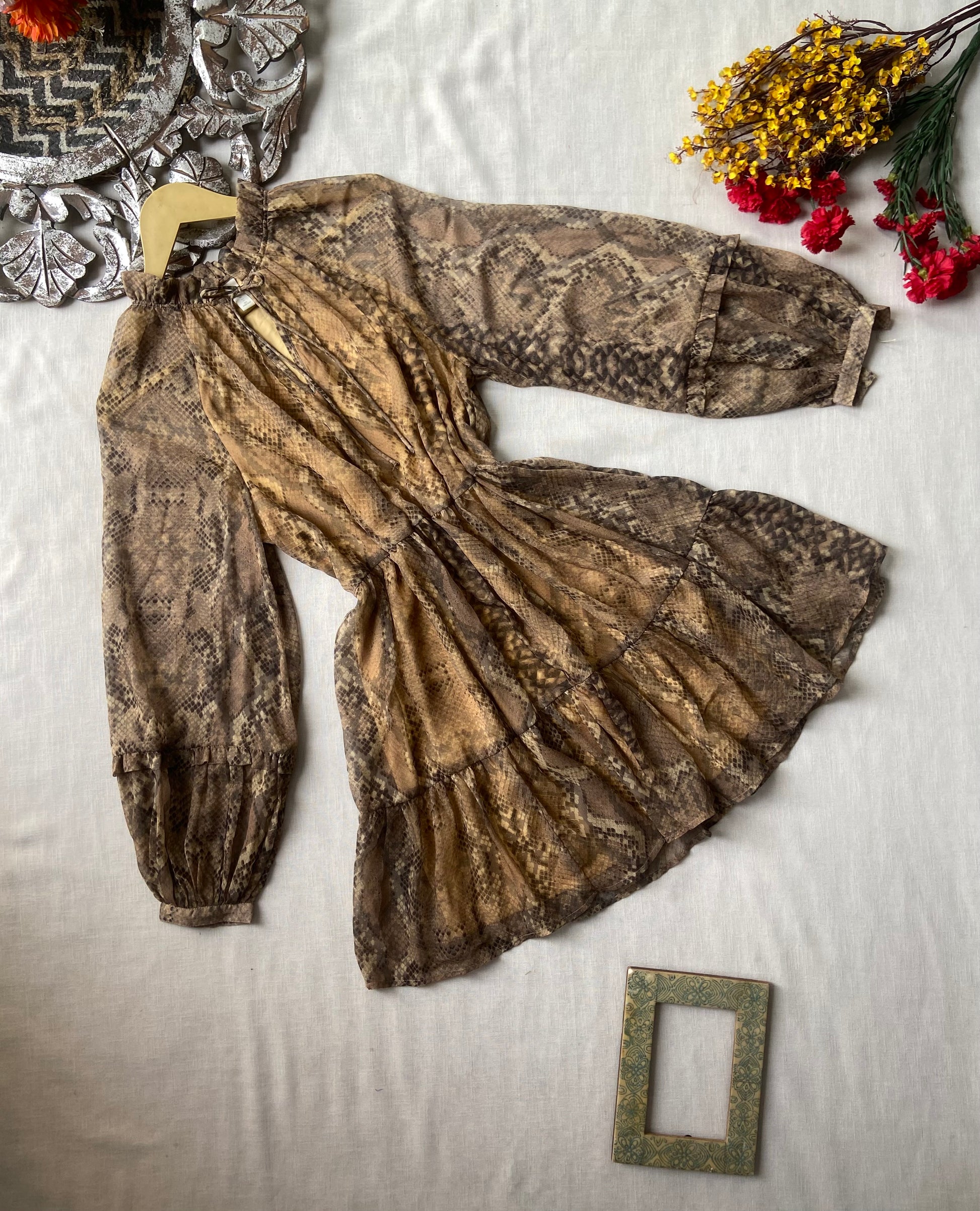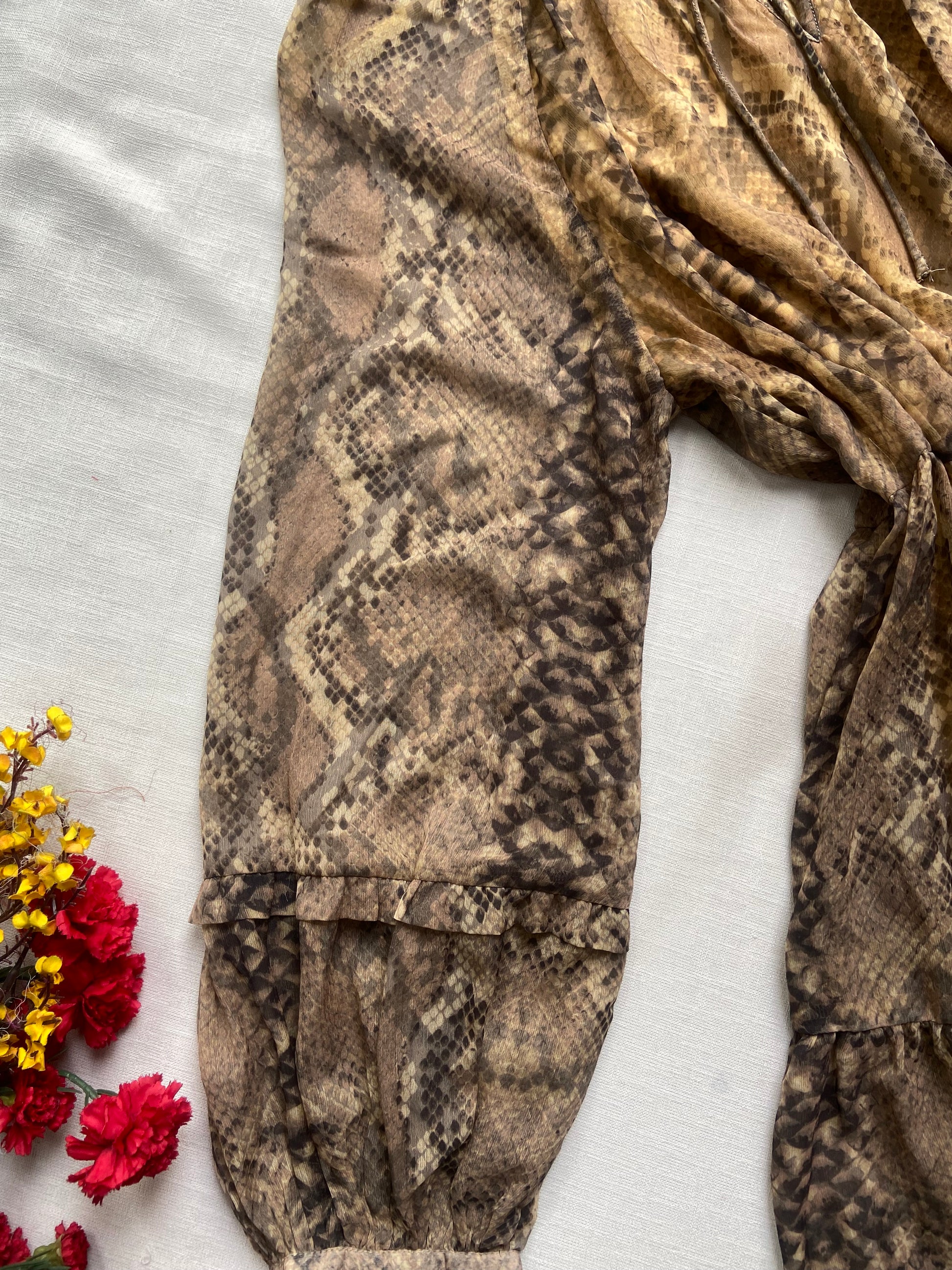 Introduce a touch of wild sophistication to your wardrobe with our animal print full sleeve flared a line mini dress. The elegant A-line silhouette and dramatic full sleeves make it a versatile piece for any occasion. The mini length adds a playful touch, perfect for showcasing your legs.