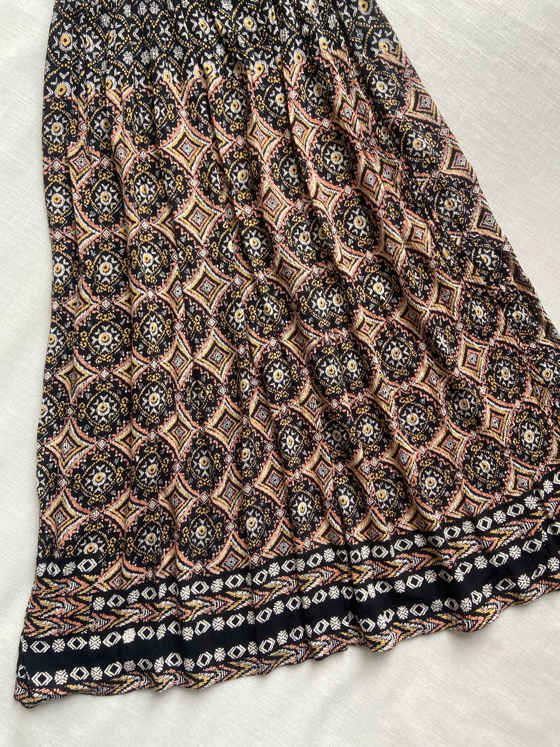 This strap pattern smocked boho midi dress is perfect for any occasion. Made with high-quality materials, it offers comfort and style in one. The smocked design provides a flattering fit while the boho pattern adds a touch of bohemian flair. Perfect for a casual day out or a special event.