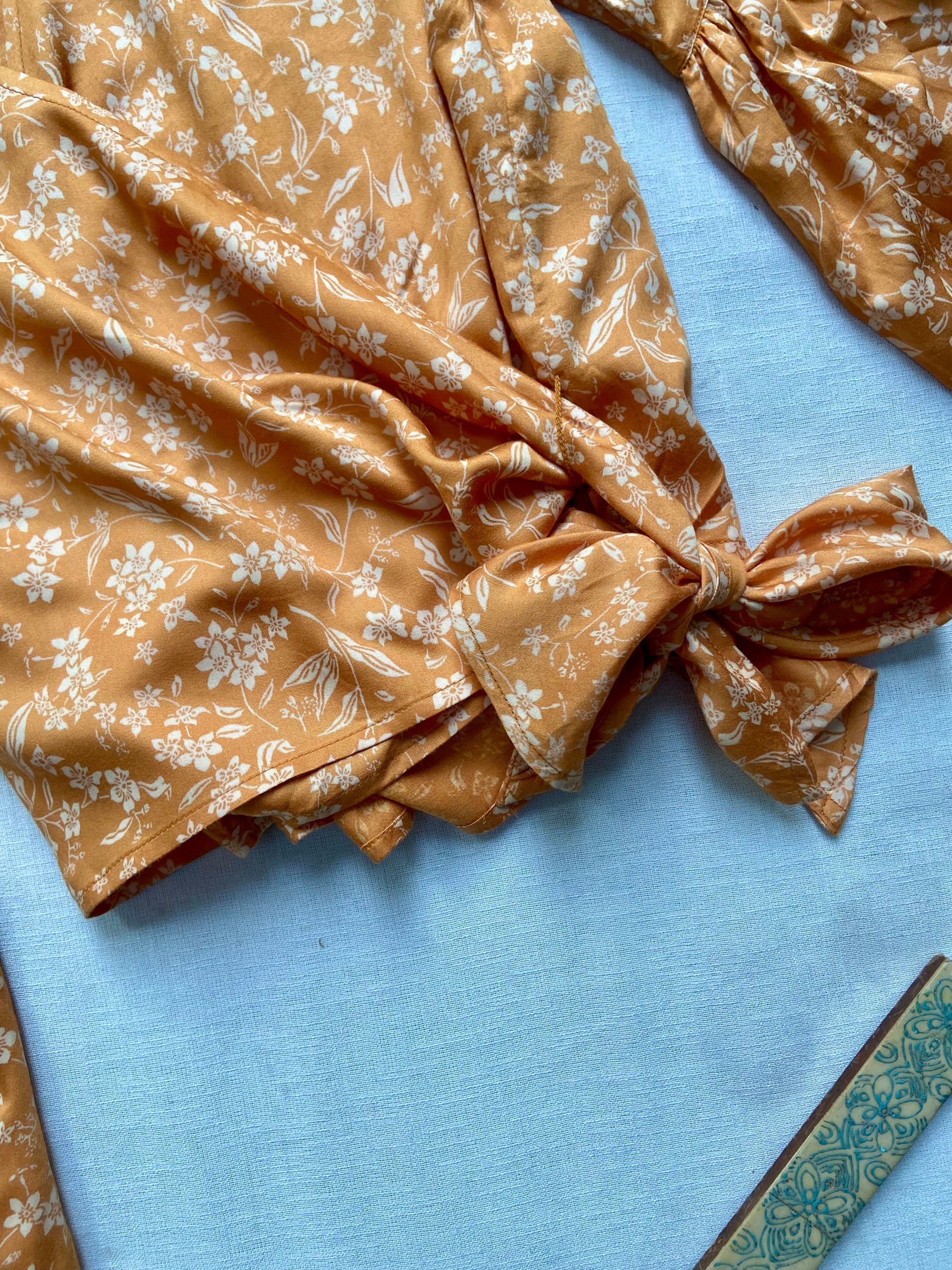 MUSTARD FLORAL WRAP TOP