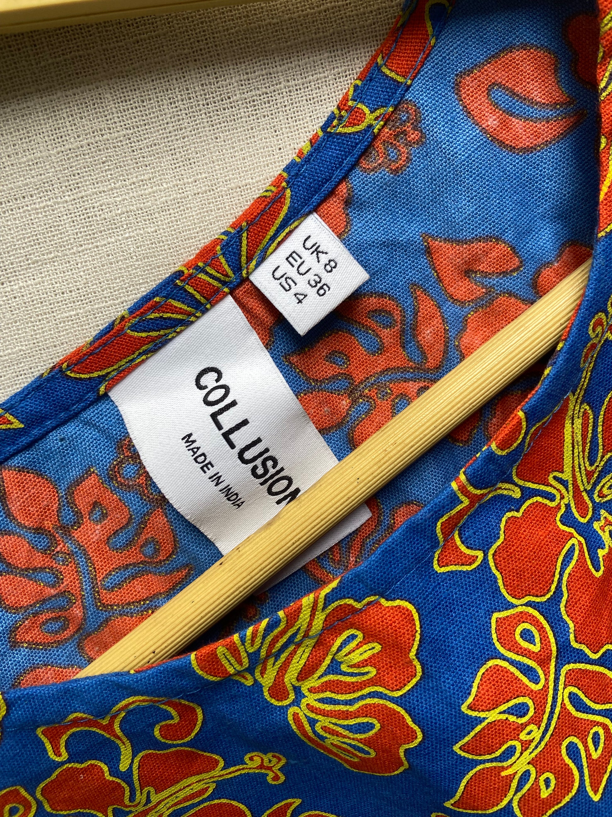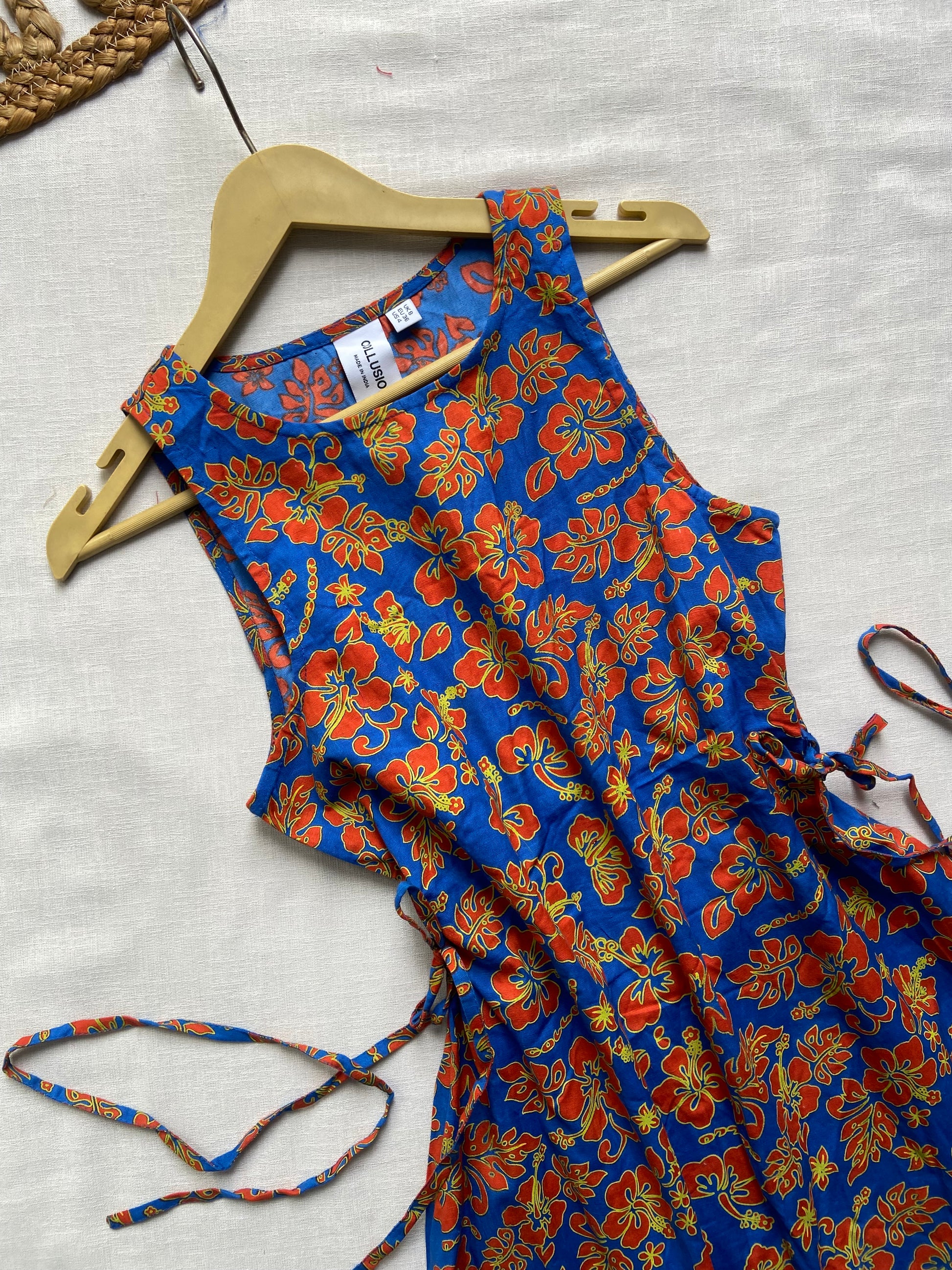 This sleeveless A-line mini dress from Colusion features a soft cotton fabric that ensures comfort and breathability. Designed in a small size with a trendy touch neck pattern, it showcases a vibrant blue base adorned with striking red floral prints. Ideal for warm weather, this dress pairs effortlessly with sandals or white sneakers for a chic, casual look. Perfect for daytime outings or relaxed gatherings, it combines style and ease for a confident, expert-approved ensemble.