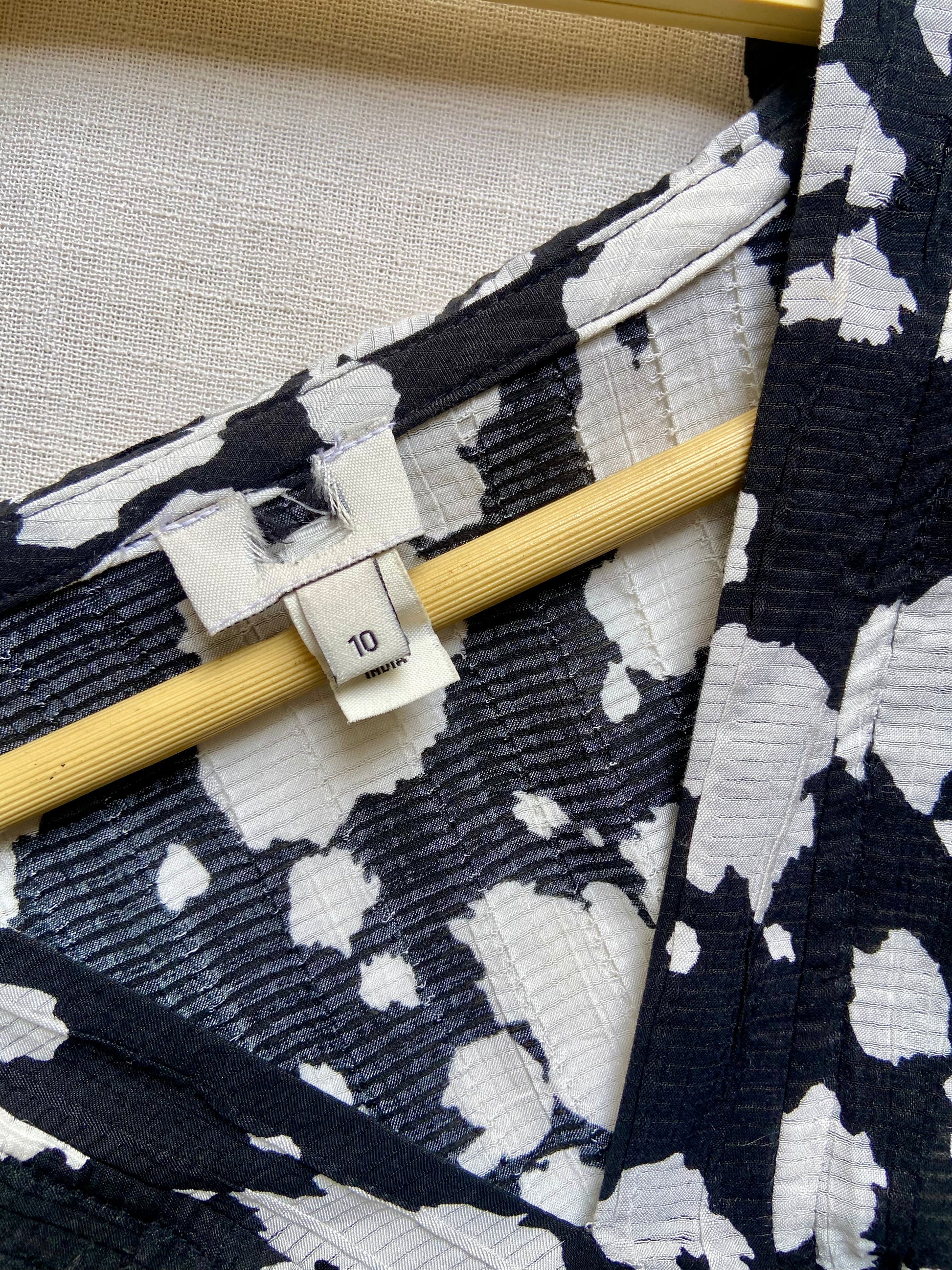 Crafted from a comfortable viscose blend, this black and white top features full sleeves and a stylish front knot pattern that adds a modern touch. The peplum detailing enhances the silhouette, offering a flattering fit in size M. Perfect for both casual and semi-formal occasions, this top combines elegance with everyday wearability.
