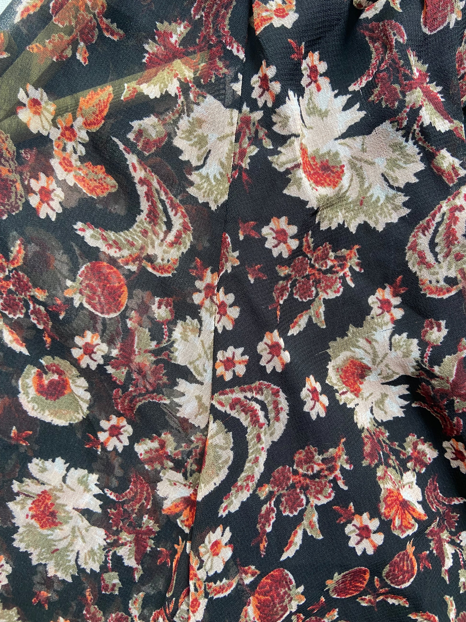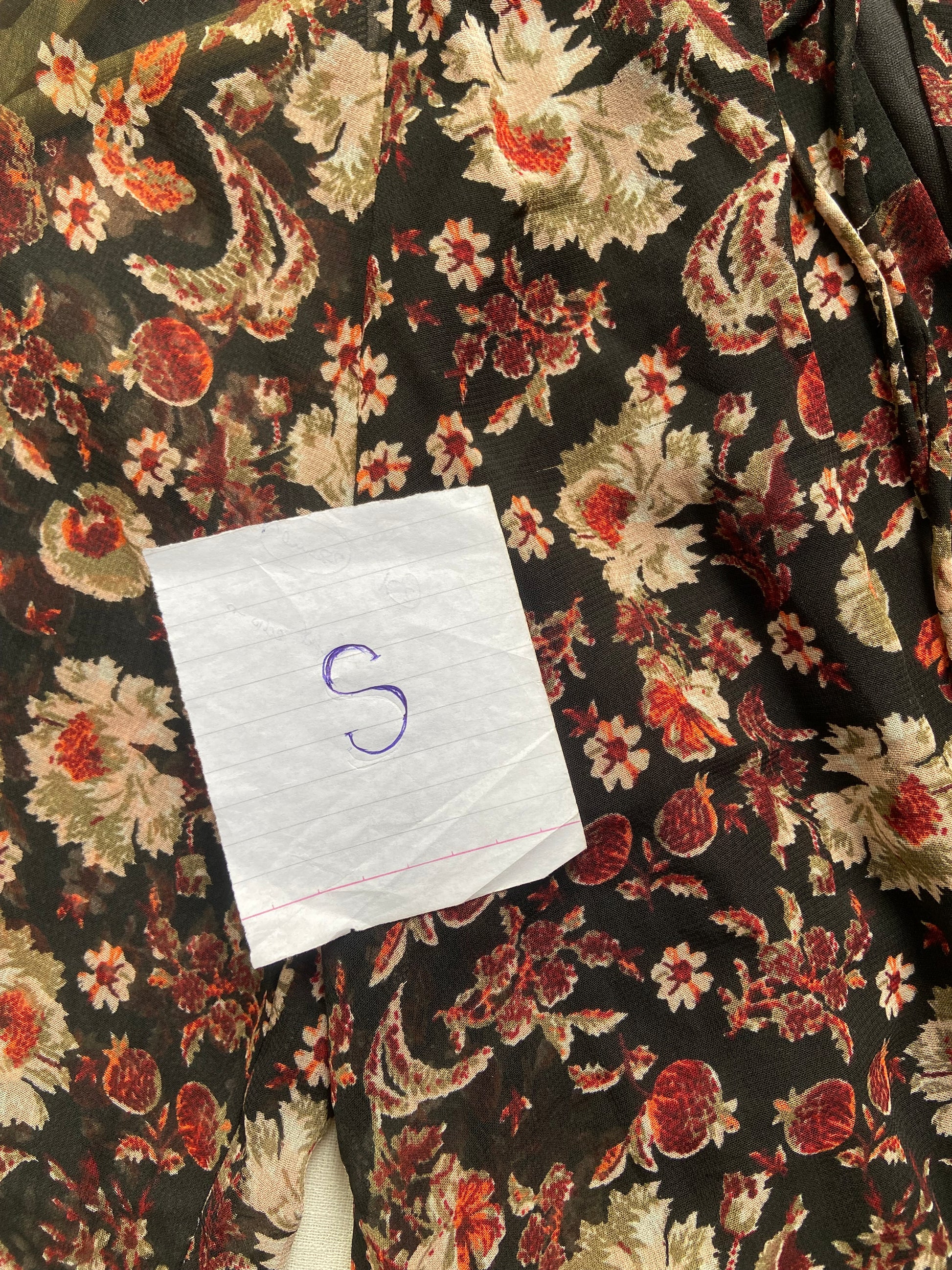 This black A-line flared mini dress features a beige floral print and a stylish touch neck pattern, crafted from soft viscose fabric for comfortable wear. With full sleeves and a boho vibe, it’s perfect for casual outings or festive occasions. Best styled with ankle boots or strappy sandals, it complements both relaxed and chic looks effortlessly. Ideal for size small, this dress combines comfort and style with expert design details.
