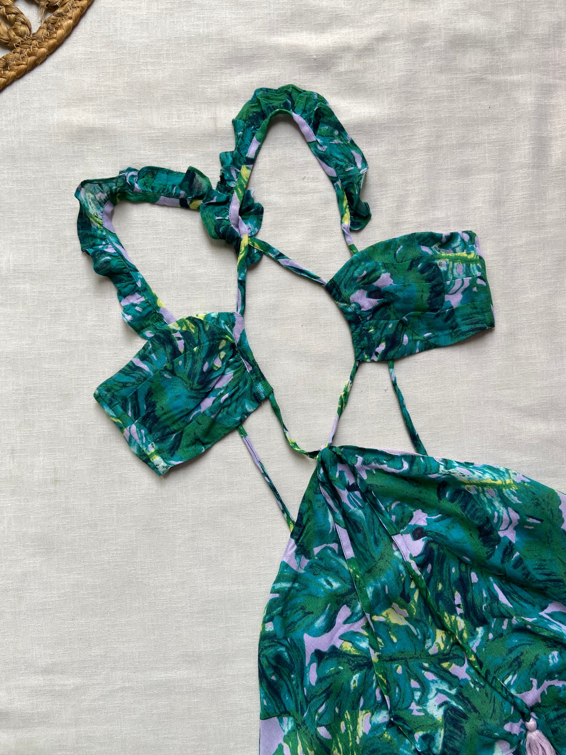 Green Floral Cut out Mini Dress