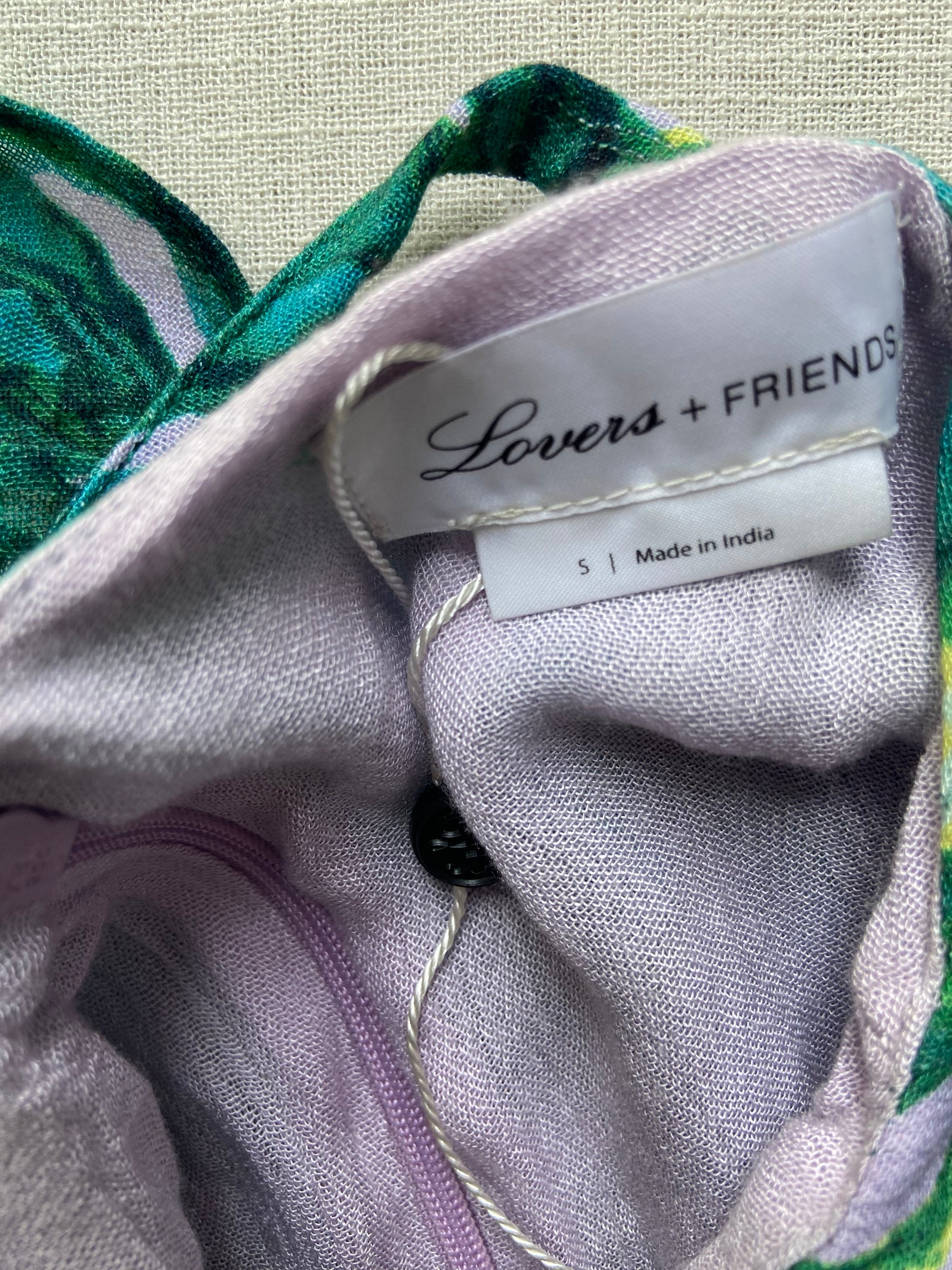 This green floral mini dress from Lovers + Friends features a flattering A-line flared silhouette crafted from a breathable cotton viscose blend. Designed with a stylish cut-out and backless pattern, along with delicate straps, it offers a fresh and airy look. Available in size small, this dress is perfect for warm-weather occasions and pairs beautifully with sandals or wedges for an effortlessly chic ensemble.