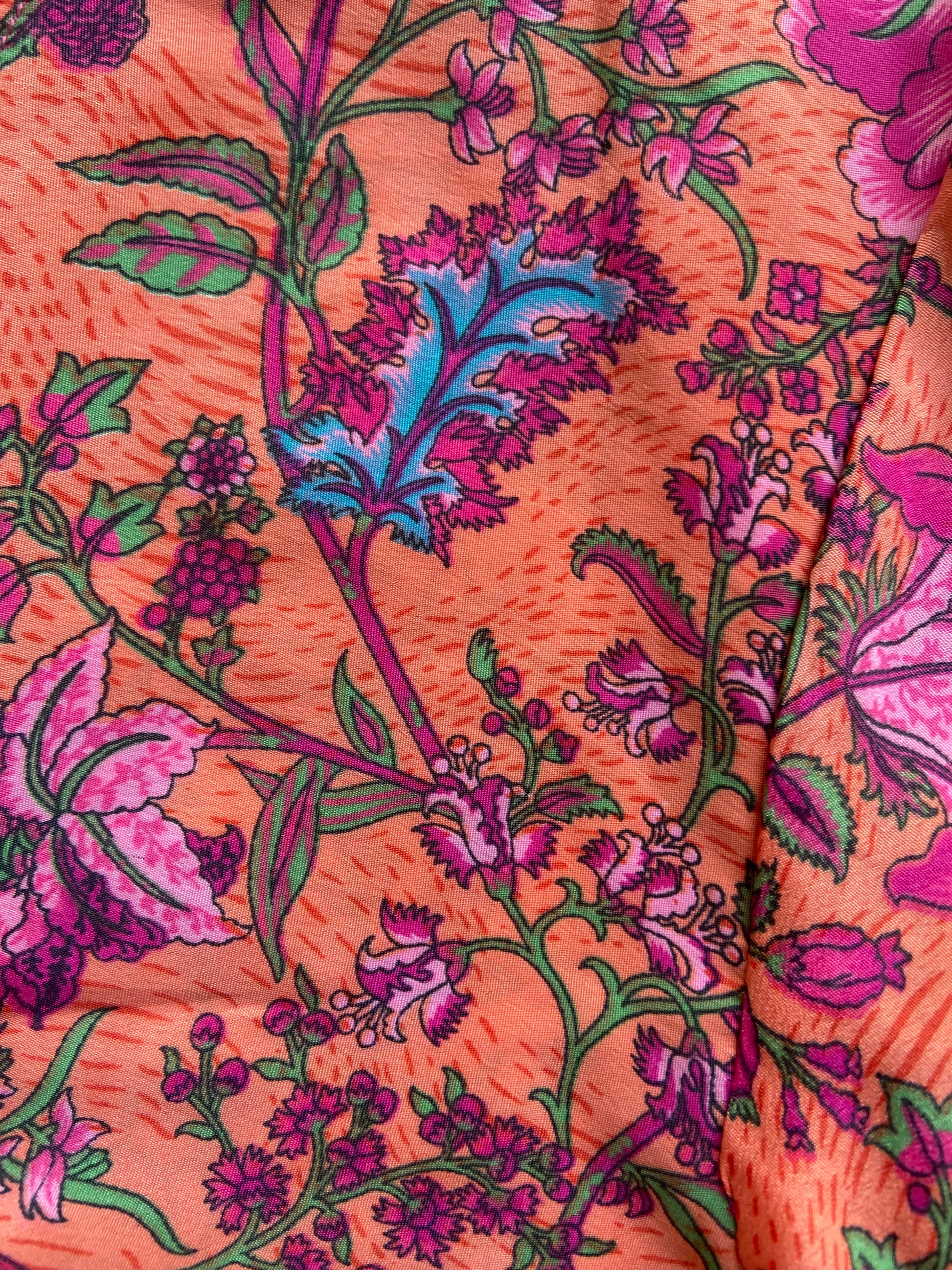 Turn heads with this vibrant bohemian-style crop top, featuring a bold floral print in shades of pink, purple, and teal over a warm orange base. Designed with dramatic flared sleeves and a flattering front tie, this top adds a playful and feminine touch to any outfit. Perfect for festivals, beach days, or casual summer outings, it pairs beautifully with high-waisted jeans, skirts, or shorts. Lightweight and breathable, it’s your go-to piece for effortless boho charm.