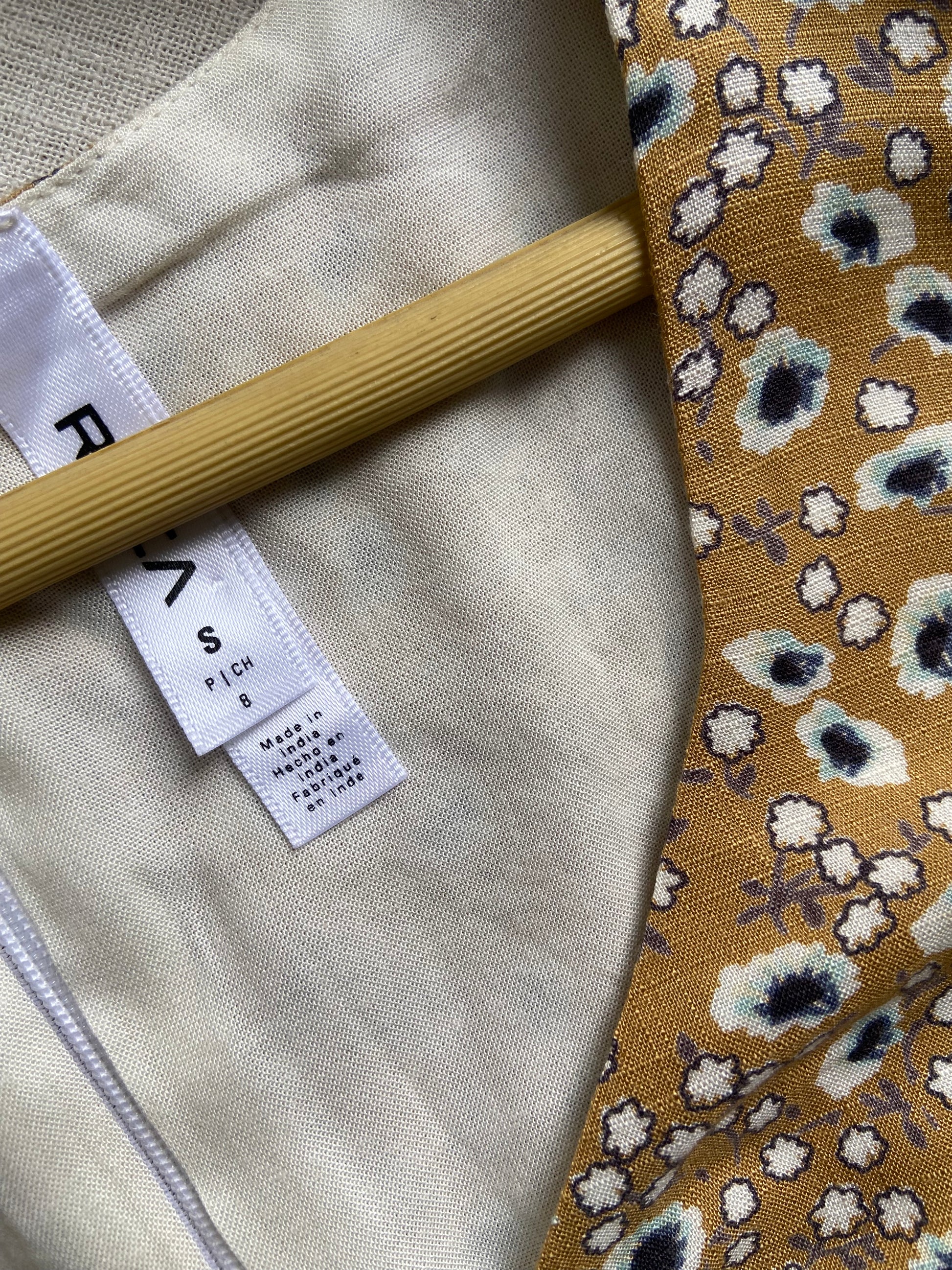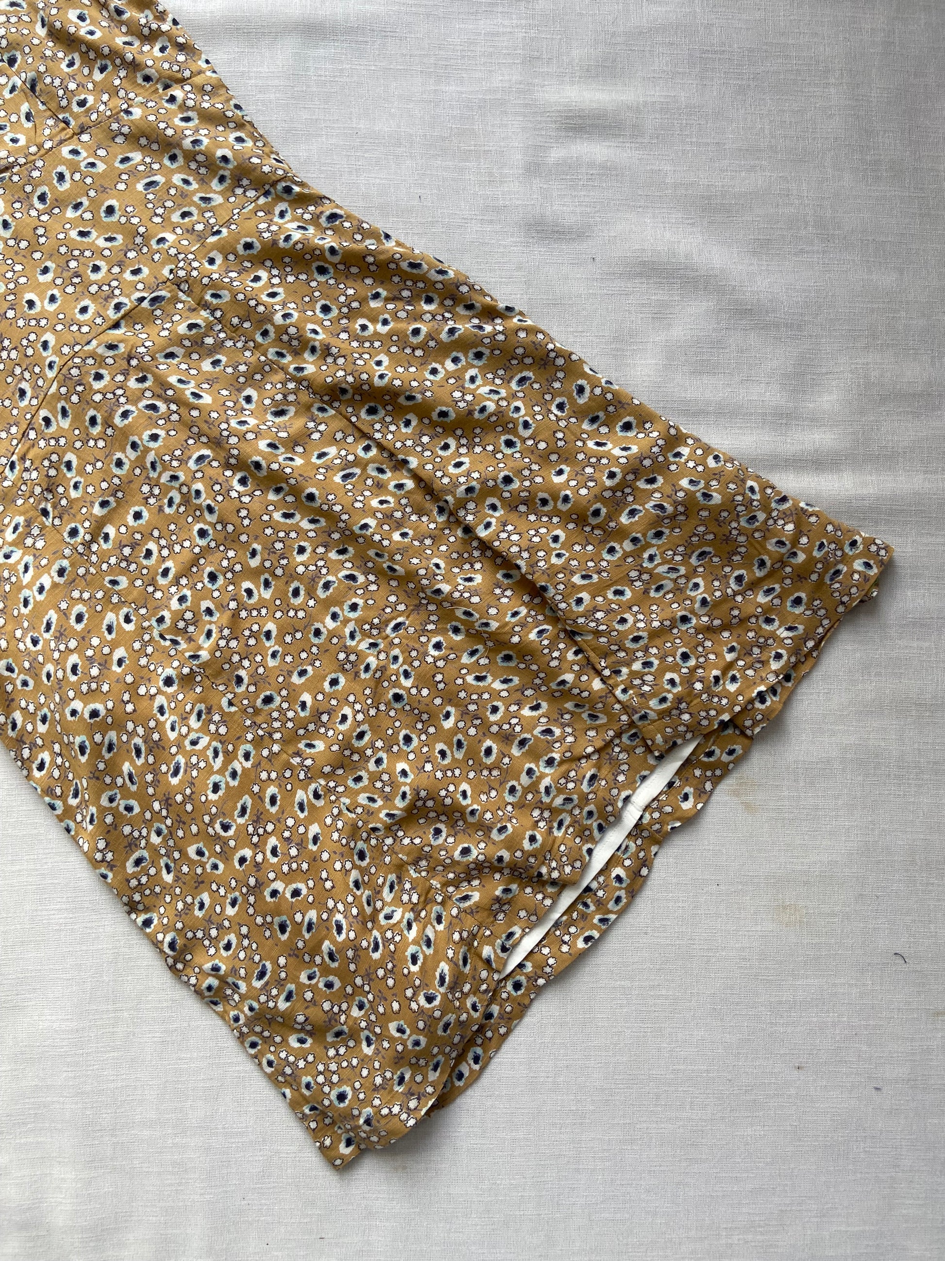 This mustard-colored V-neck mini dress by RVCA is crafted from breathable cotton viscose fabric, offering both comfort and style. Its vibrant print adds a lively touch, making it ideal for casual outings or summer events. Designed in size Small, this dress pairs beautifully with sandals or ankle boots and is best suited for daytime gatherings or relaxed weekend wear.