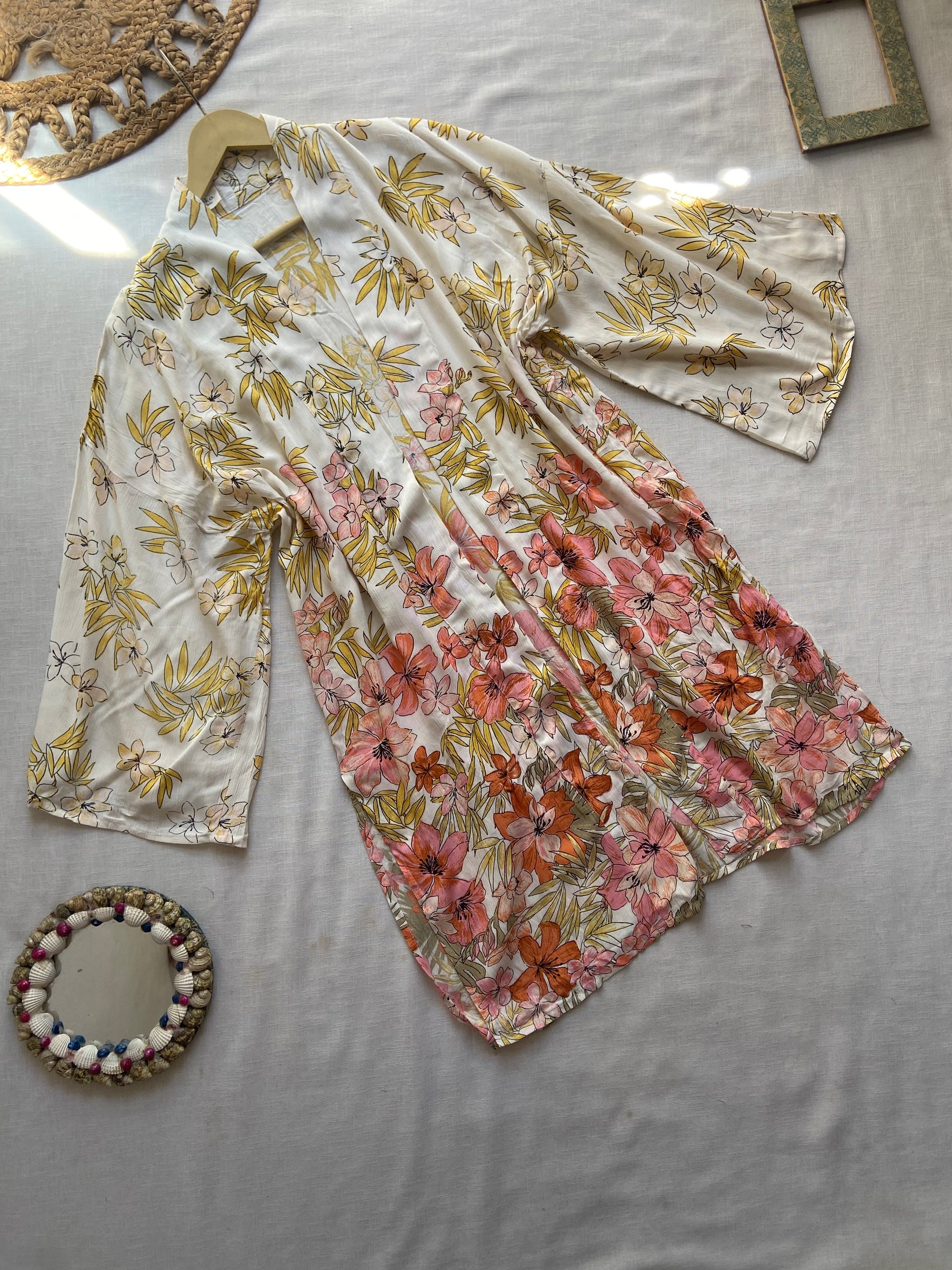Beige Floral Long Beach Shrug