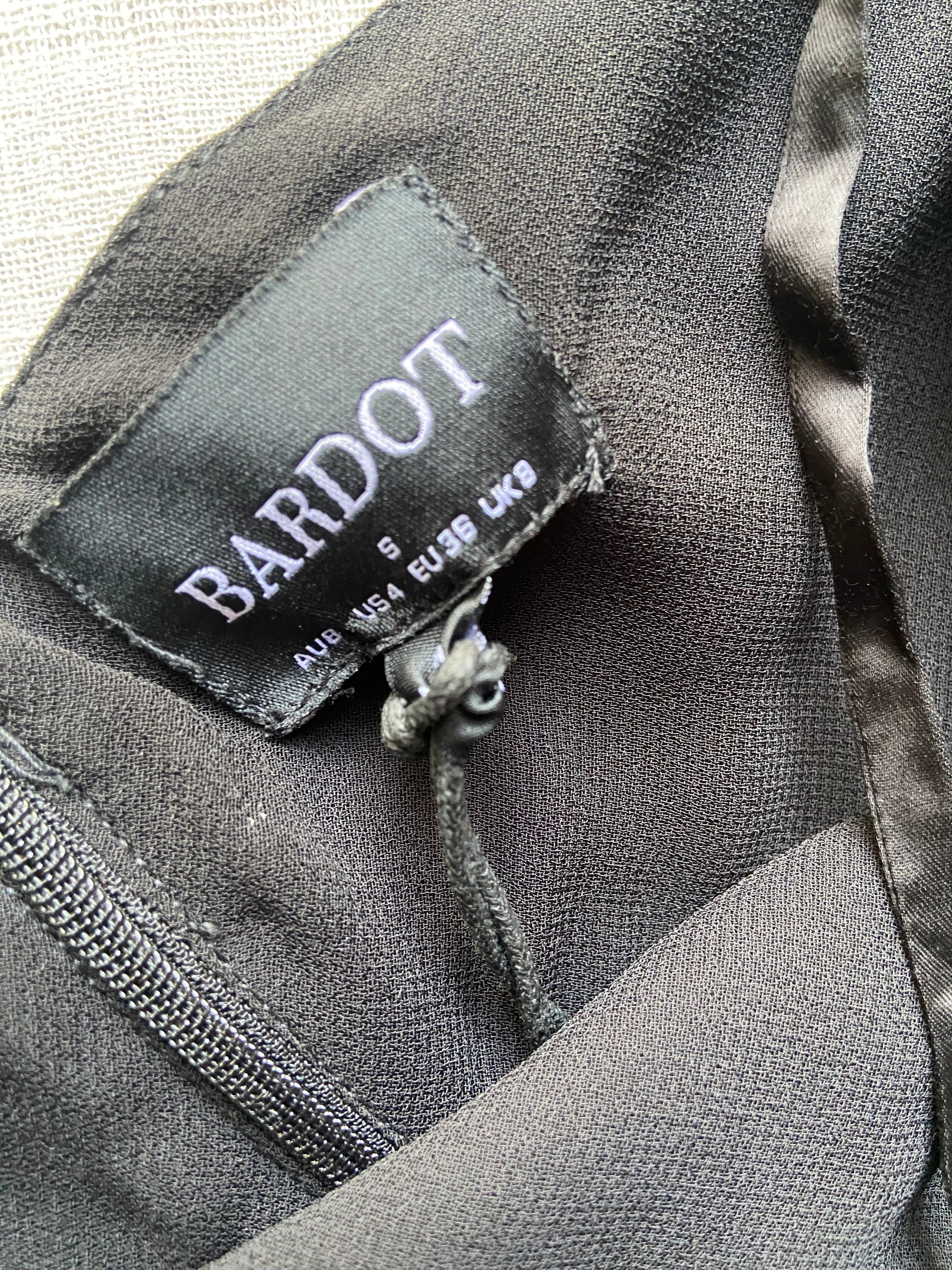 This Bardot Black Party Dress in size small features a sophisticated strap pattern and an A-line silhouette, crafted from a luxurious satin blend. Its long length and sleek black color make it an ideal choice for birthdays and formal events. Pair it with statement accessories for a refined, expert-styled ensemble that stands out at any celebration.