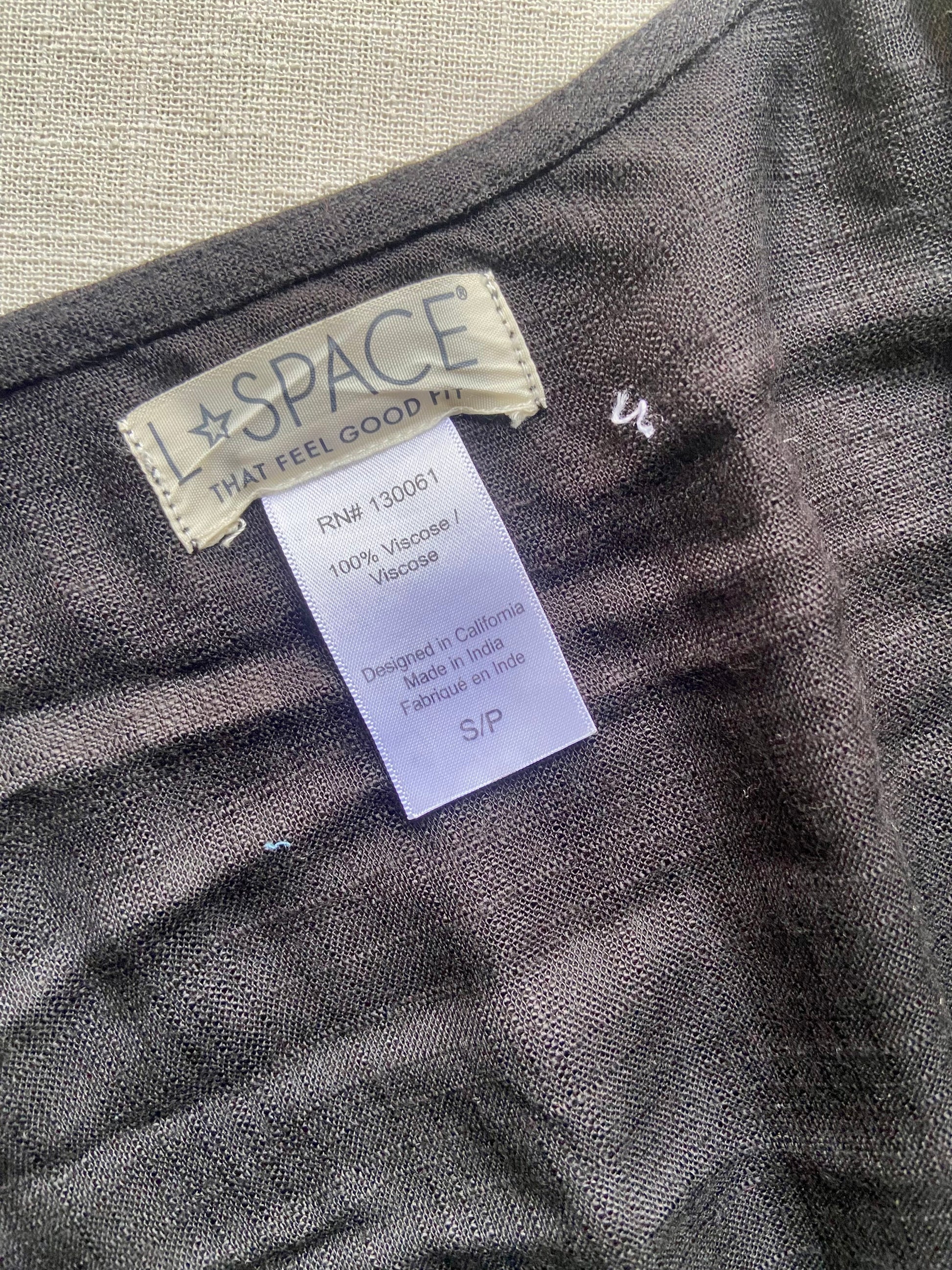 This Black V Neck Beach Maxi Dress from LSPACE combines comfort and style with its breathable cotton fabric and flattering V-neck design. Featuring a belt pattern that accentuates the waist and a front double slit for ease of movement, it’s perfect for beach outings. Available in size small, this dress pairs effortlessly with sandals or a wide-brim hat for a chic, relaxed look.