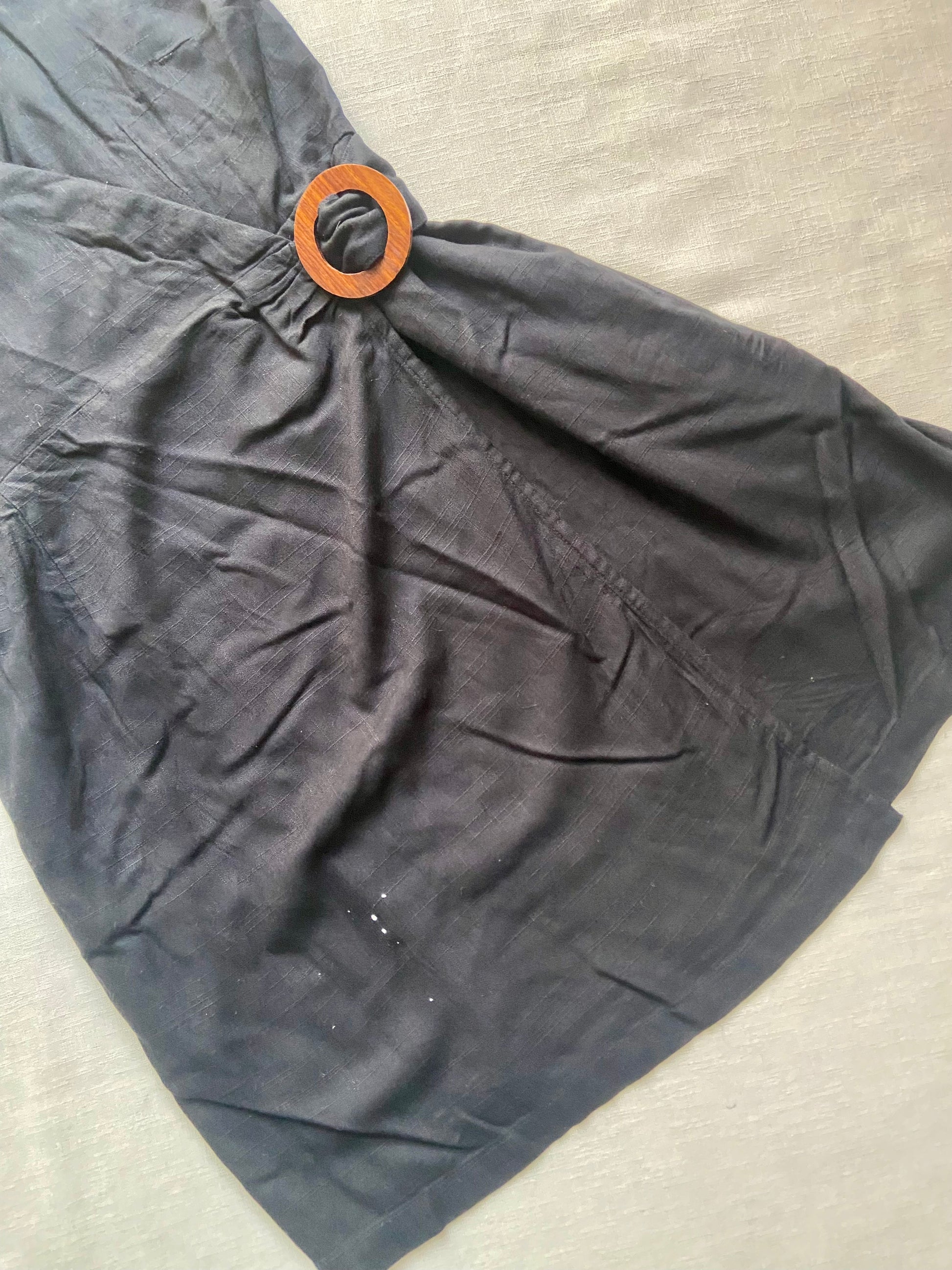 This black wrap mini dress from LSPACE features a stylish strap pattern and is crafted from breathable cotton fabric, ensuring comfort and ease of movement. Designed in size M, it offers a flattering fit that accentuates the waist. Ideal for casual outings or evening events, pair it with minimalist heels and delicate accessories for a chic, sophisticated look.