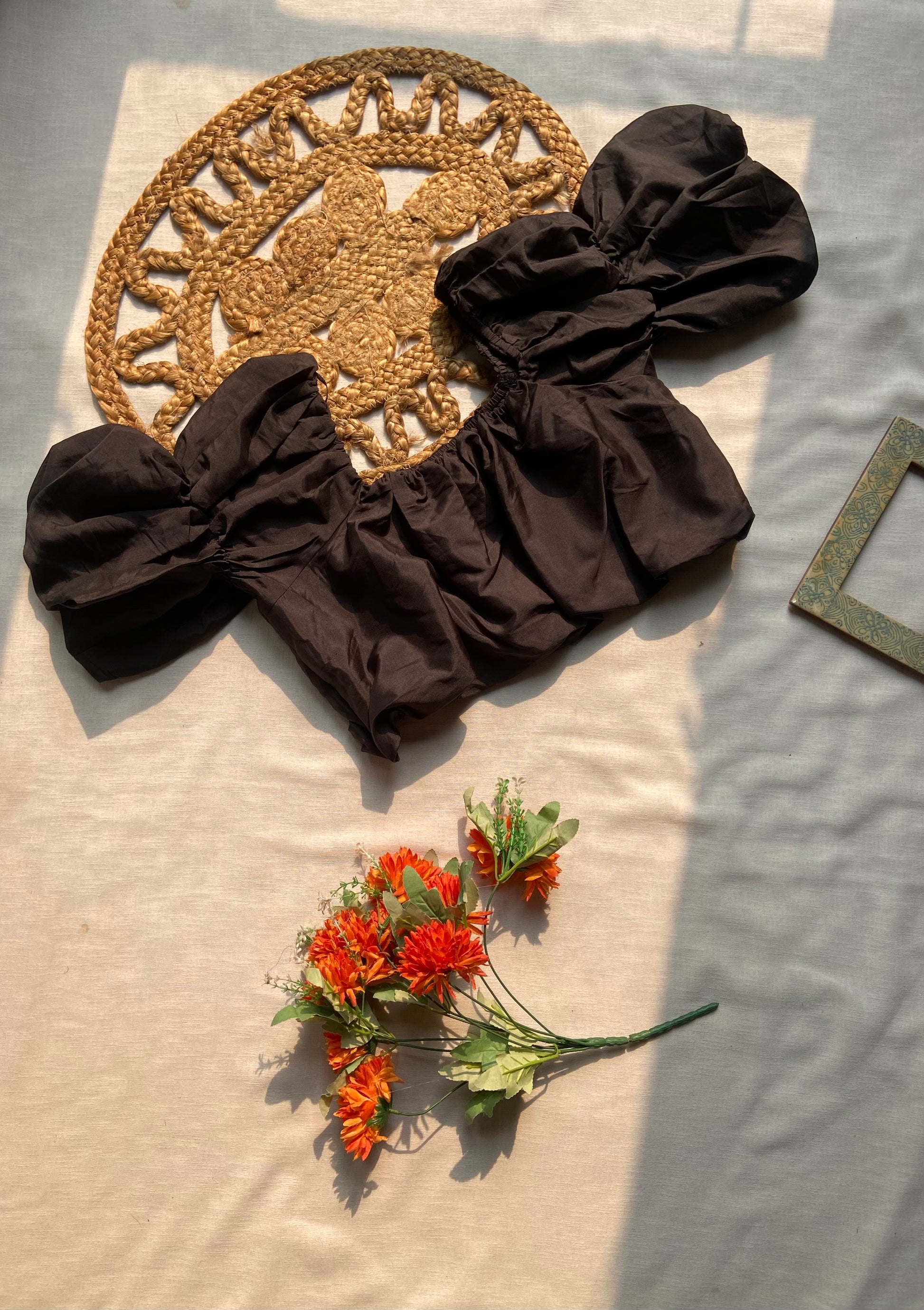Add timeless elegance to your wardrobe with this black puff sleeve cotton blouse, designed for a chic and versatile look. Featuring dramatic puff sleeves and a flattering neckline, this blouse blends modern style with classic charm. Crafted from soft, breathable cotton, it ensures comfort while keeping you stylish for any occasion. Perfect for pairing with skirts, sarees, or high-waist trousers, this blouse is ideal for parties, festive wear, or casual outings. A must-have statement piece for every fashion-forward woman.