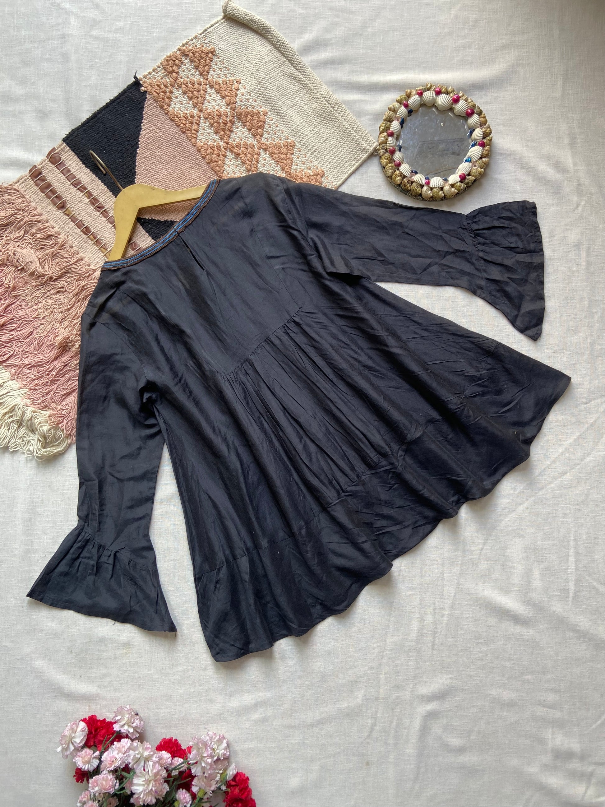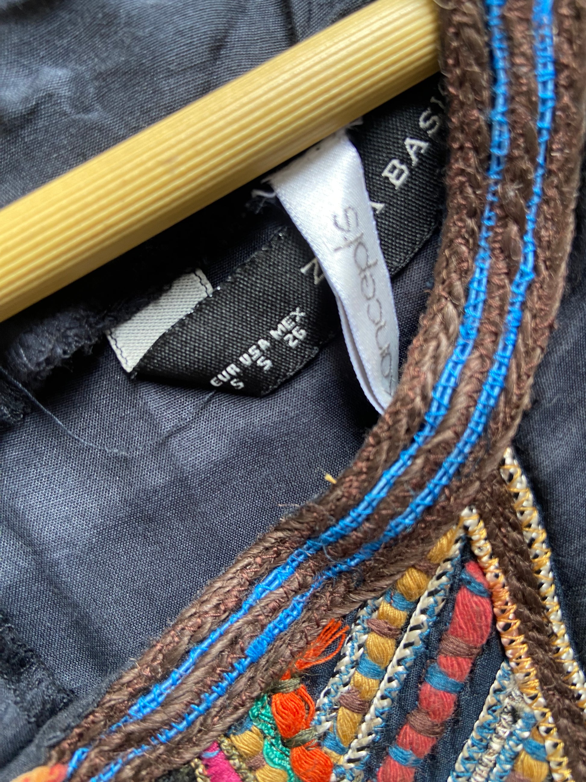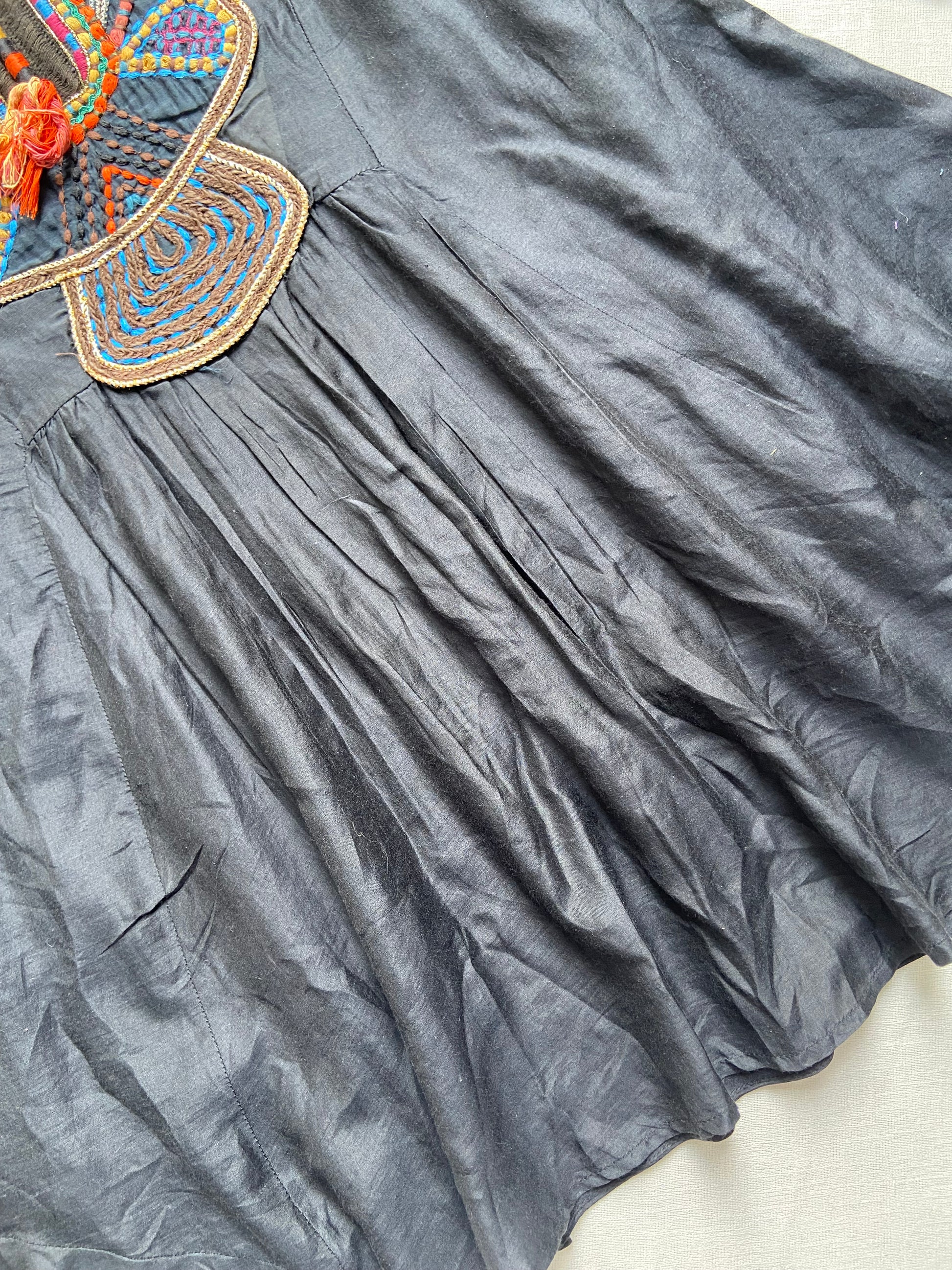 Women's Black Flared Tunic Top with Colorful Embroidery – Boho Ethnic Style