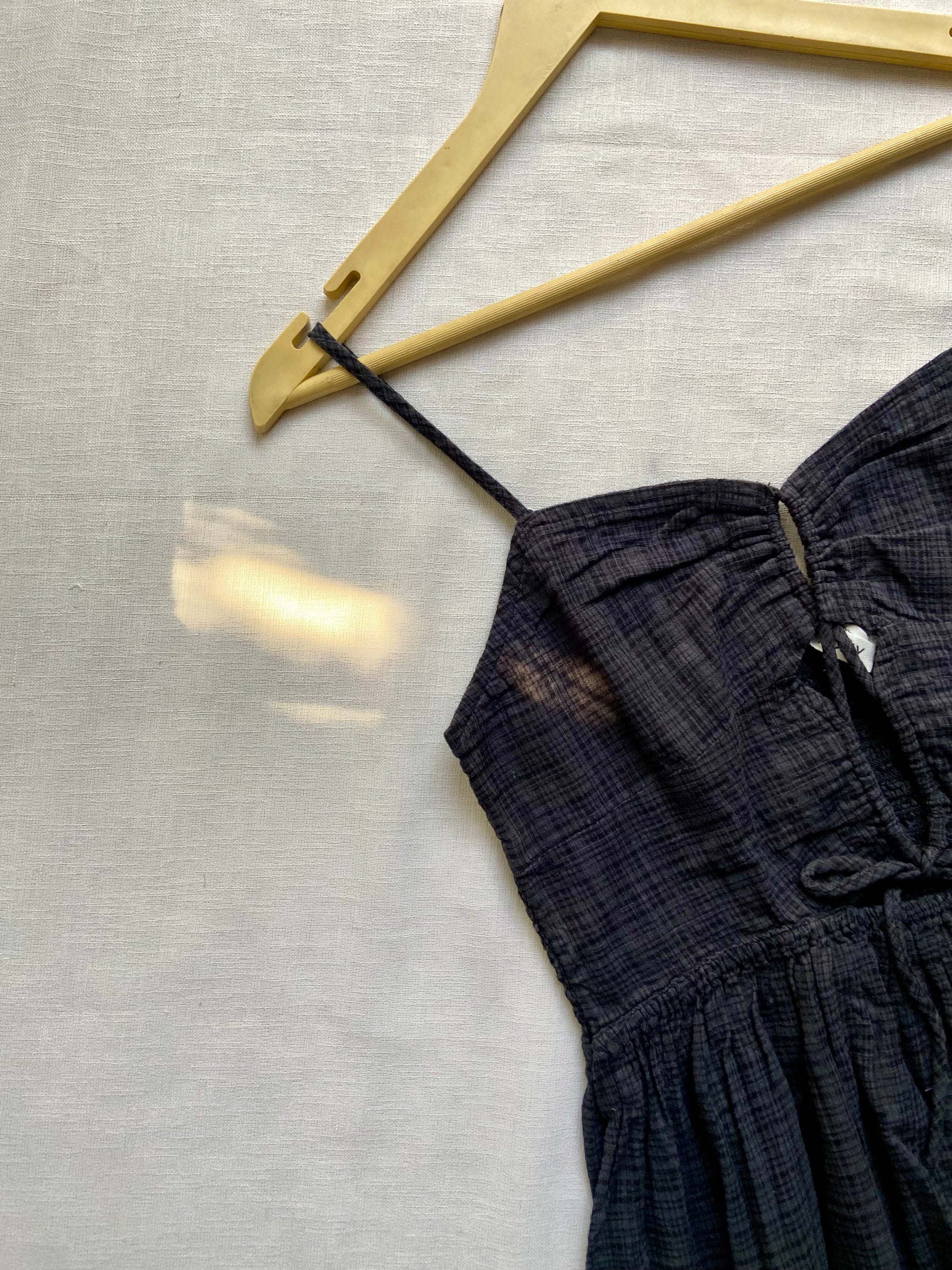 This casual black dress features a subtle checkered pattern, adjustable spaghetti straps, and a flattering tie-up front. The tiered skirt adds volume and flow, making it perfect for summer days, picnics, or casual get-togethers. Crafted from lightweight, breathable fabric, it ensures all-day comfort with effortless style. Pair with sandals or sneakers for a relaxed, chic look.