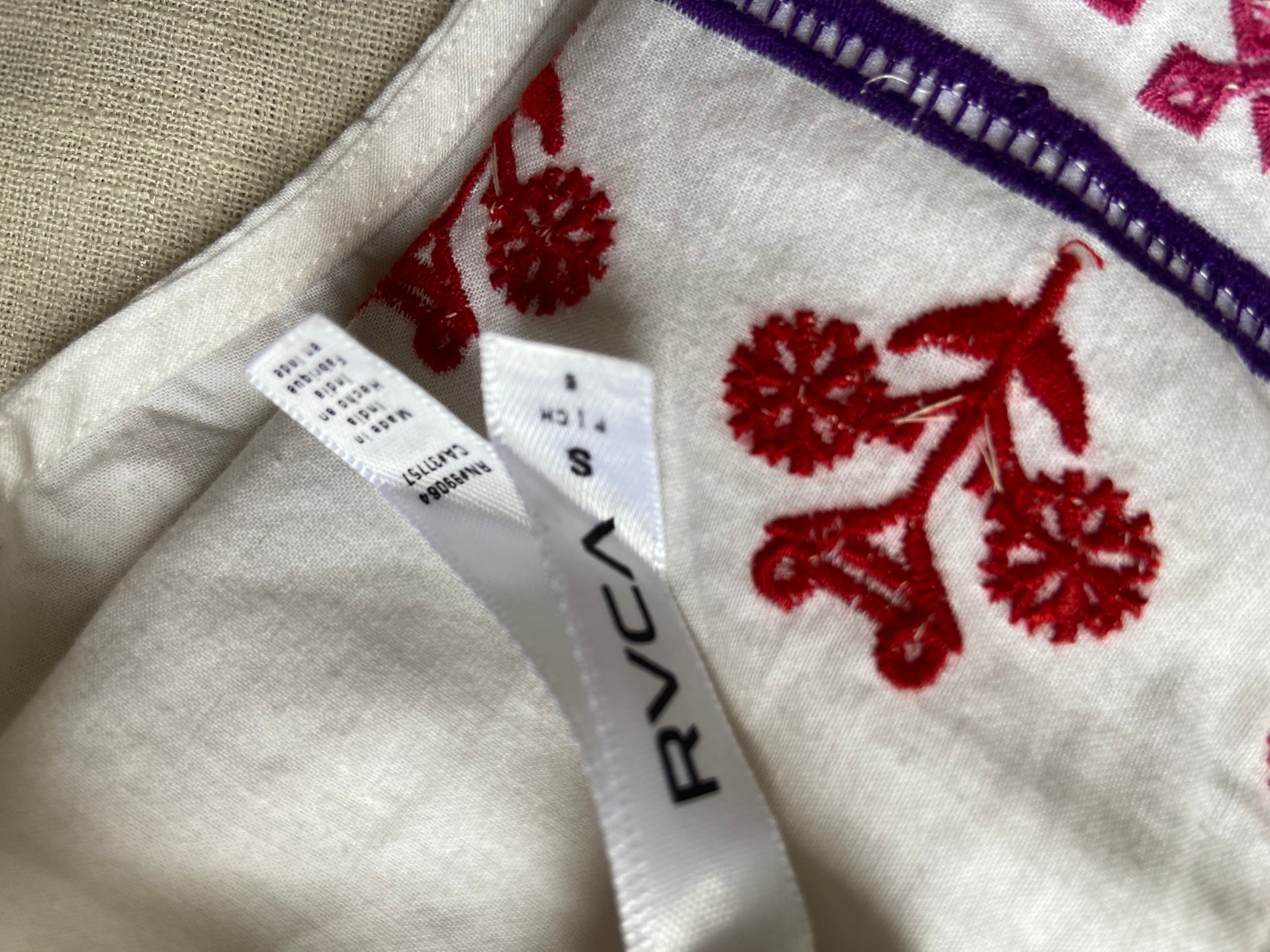 White Sleeveless Tiered Top with Red Embroidery