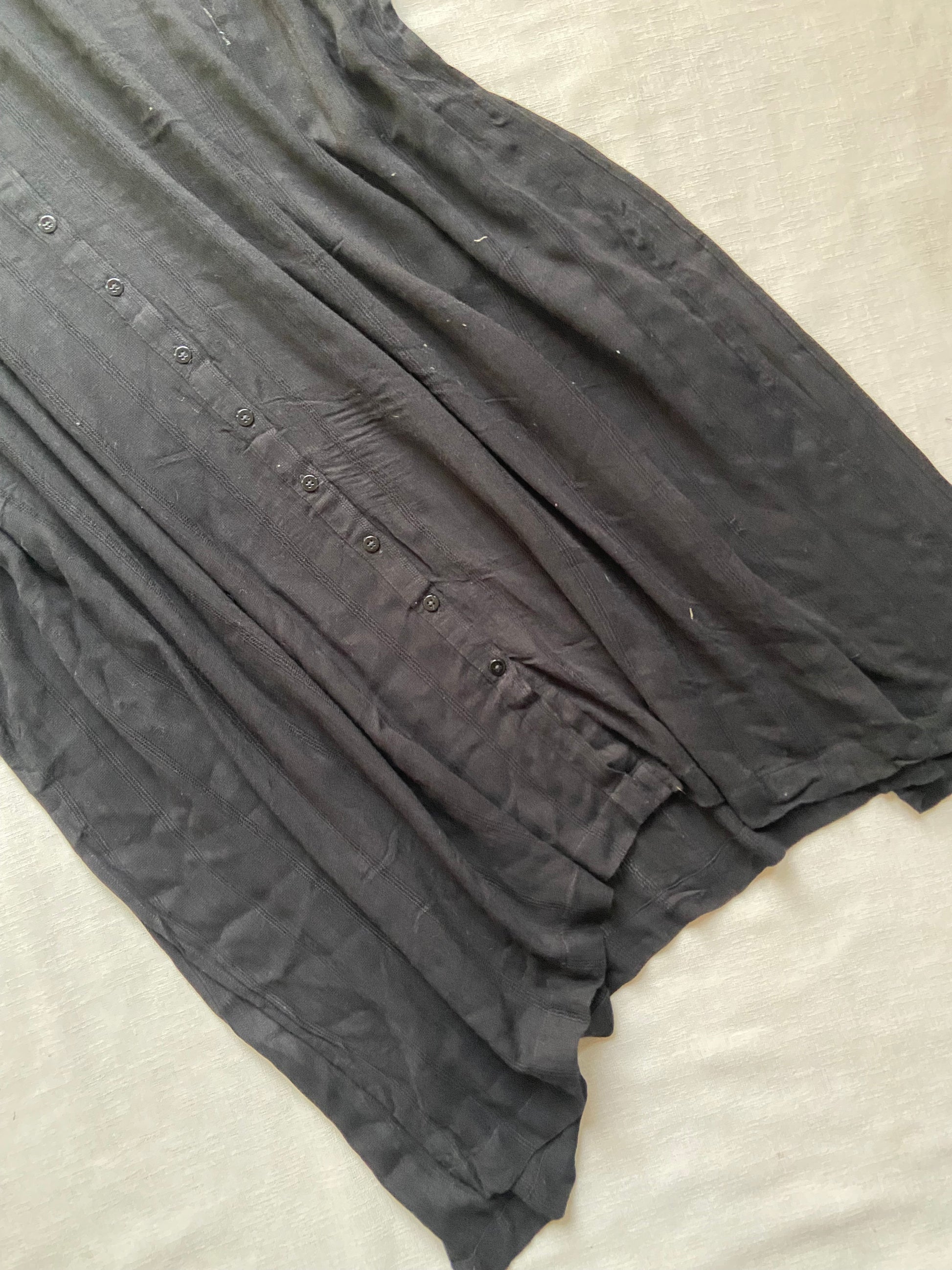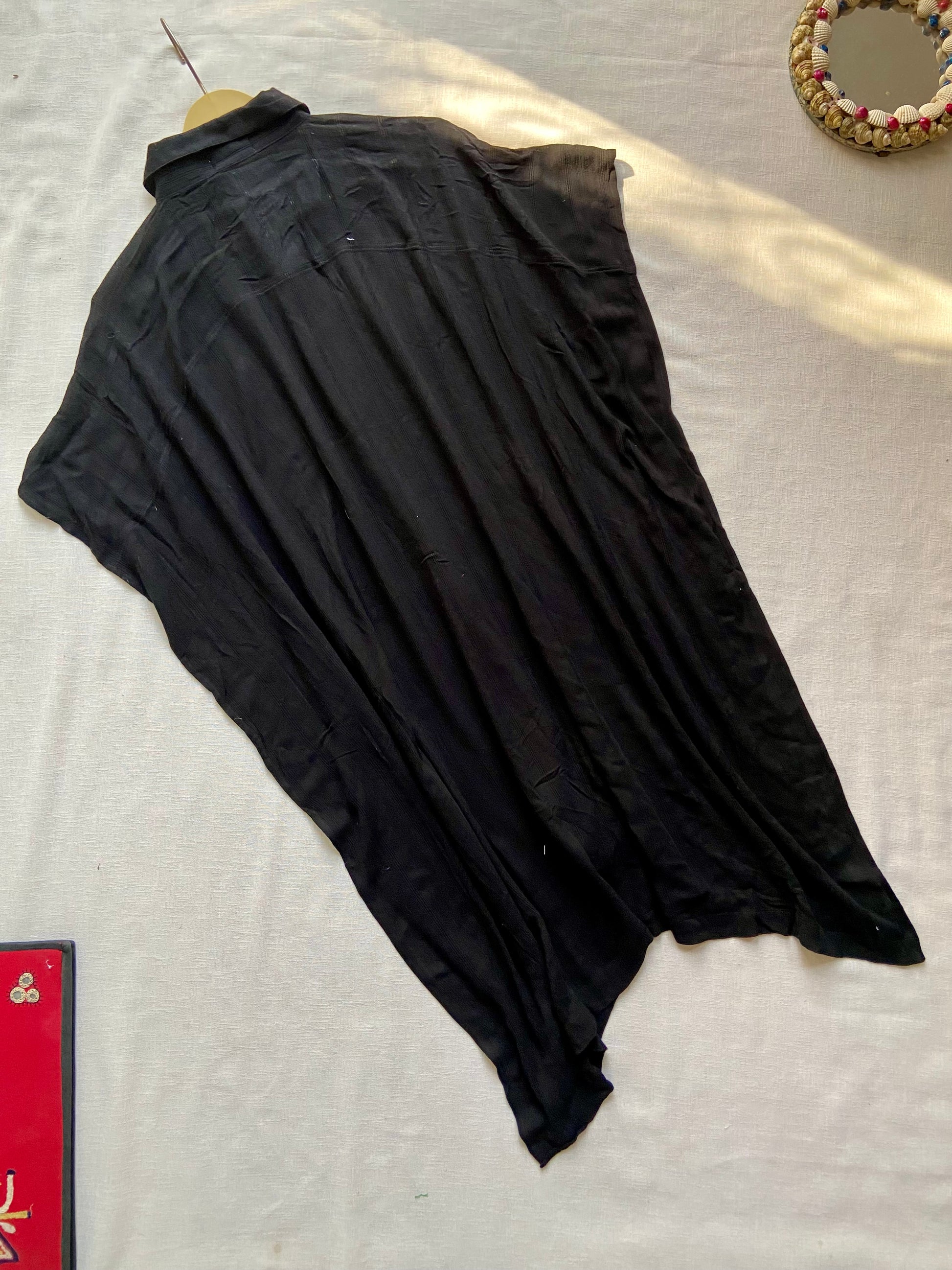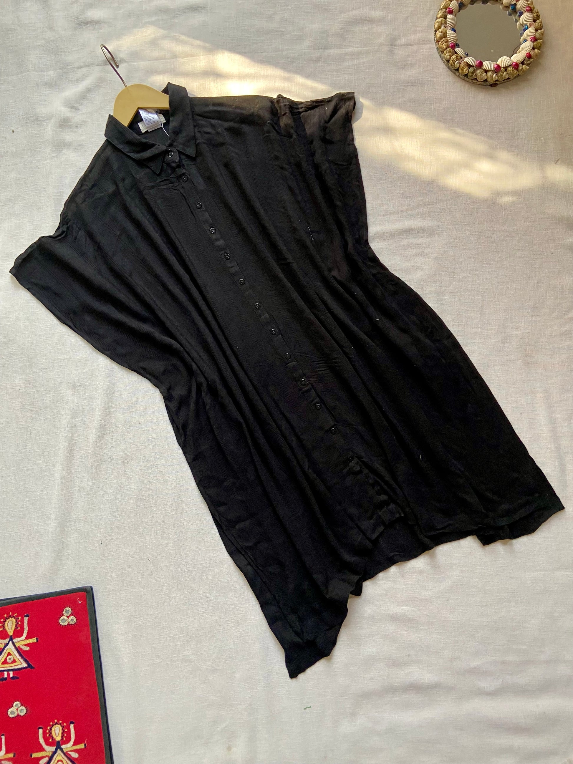 Elevate your everyday style with this black button-down shirt dress featuring a classic collar and relaxed fit. Designed for comfort and versatility, it can be worn as a dress or layered over outfits as a chic shrug. The lightweight fabric drapes beautifully, making it ideal for casual outings, office wear, or travel. Pair it with sneakers or sandals for an effortlessly stylish look.