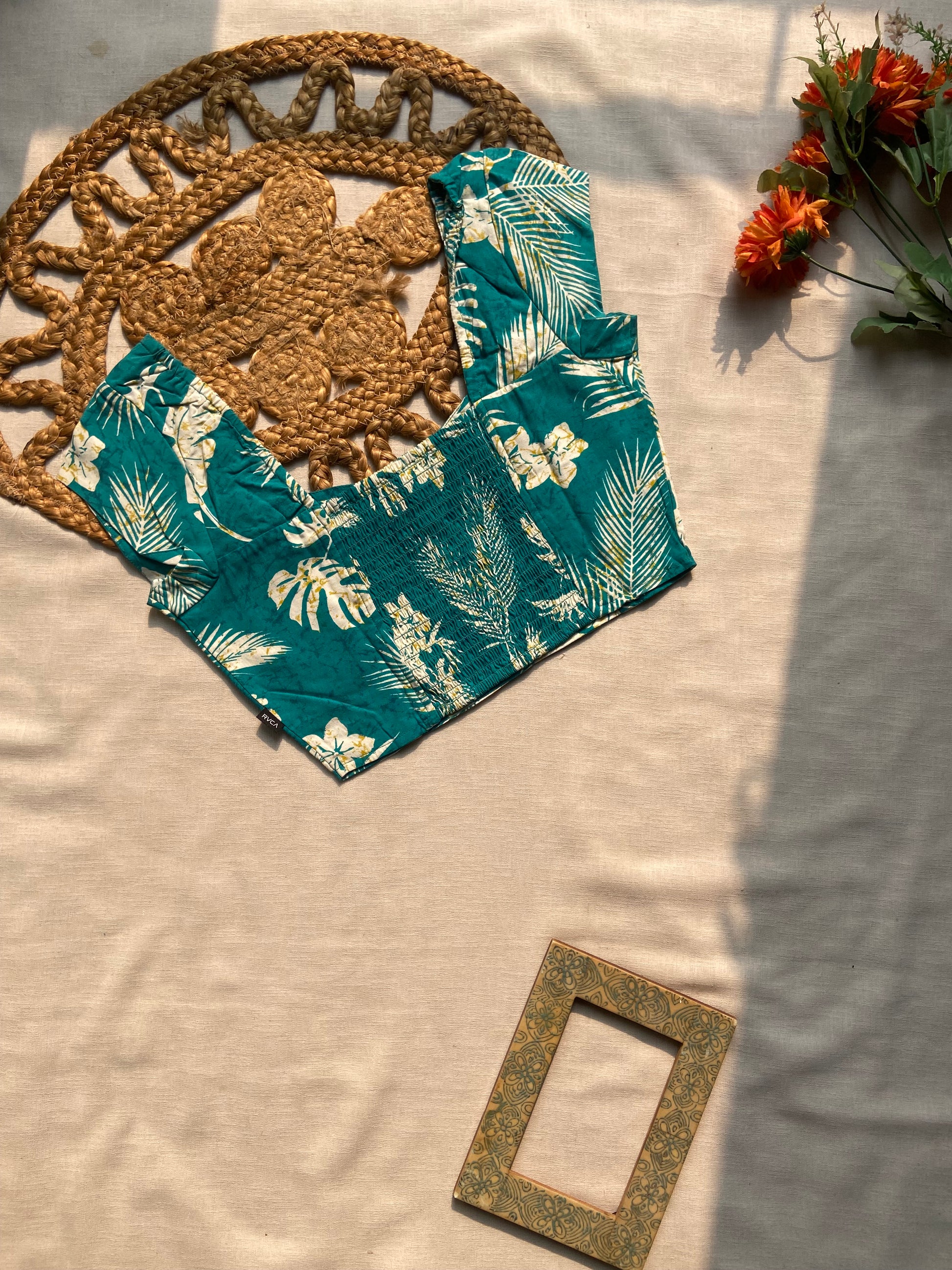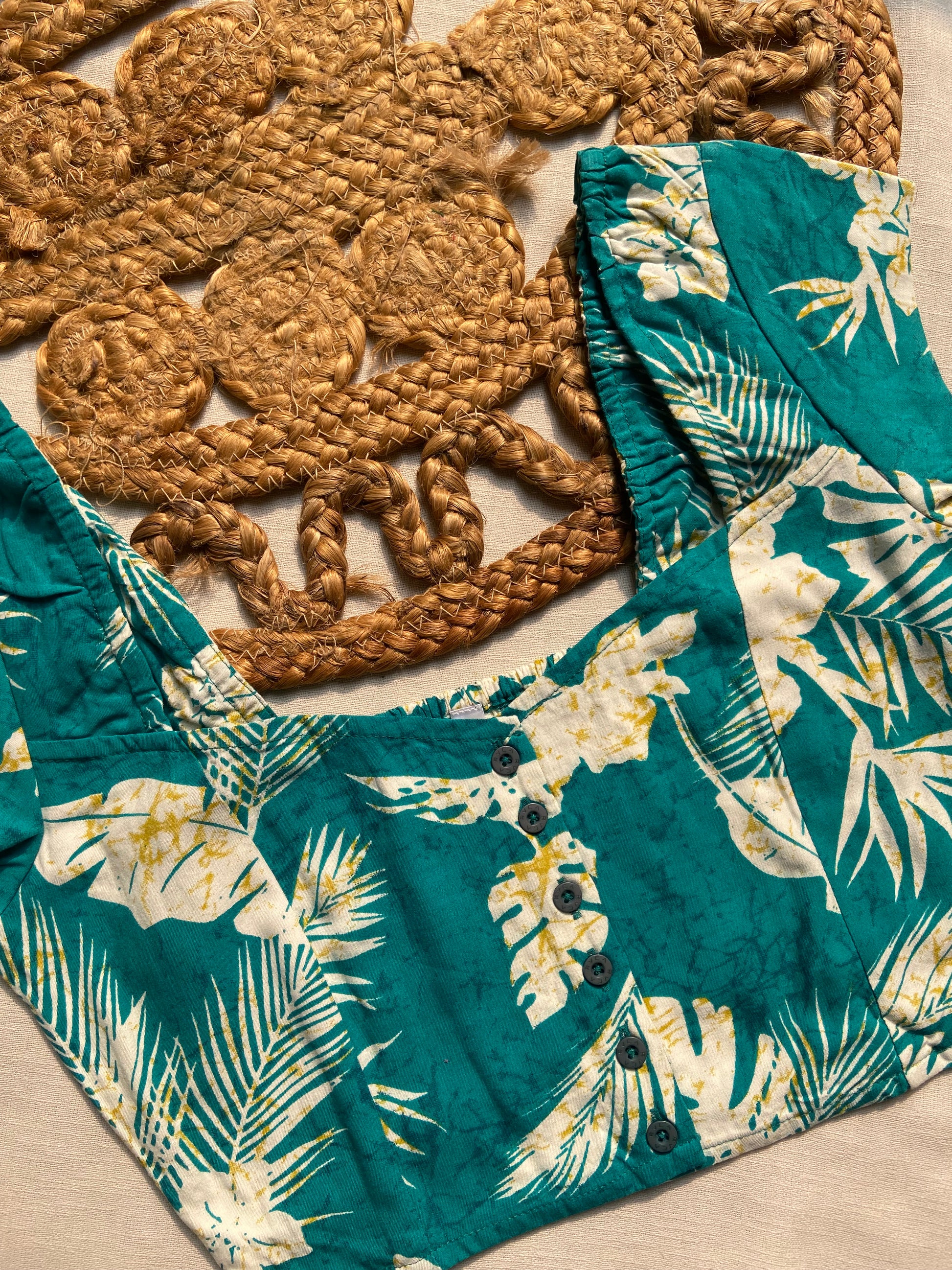 Elevate your everyday style with this tropical green floral cotton blouse, crafted for comfort and elegance. Designed with a flattering neckline, half sleeves, and a vibrant leaf and floral print, this blouse adds a refreshing touch to any outfit. Made from breathable cotton fabric, it ensures all-day comfort, making it perfect for casual wear, summer outings, or vacation looks. Pair it with jeans, skirts, or ethnic wear for a versatile and chic appearance.