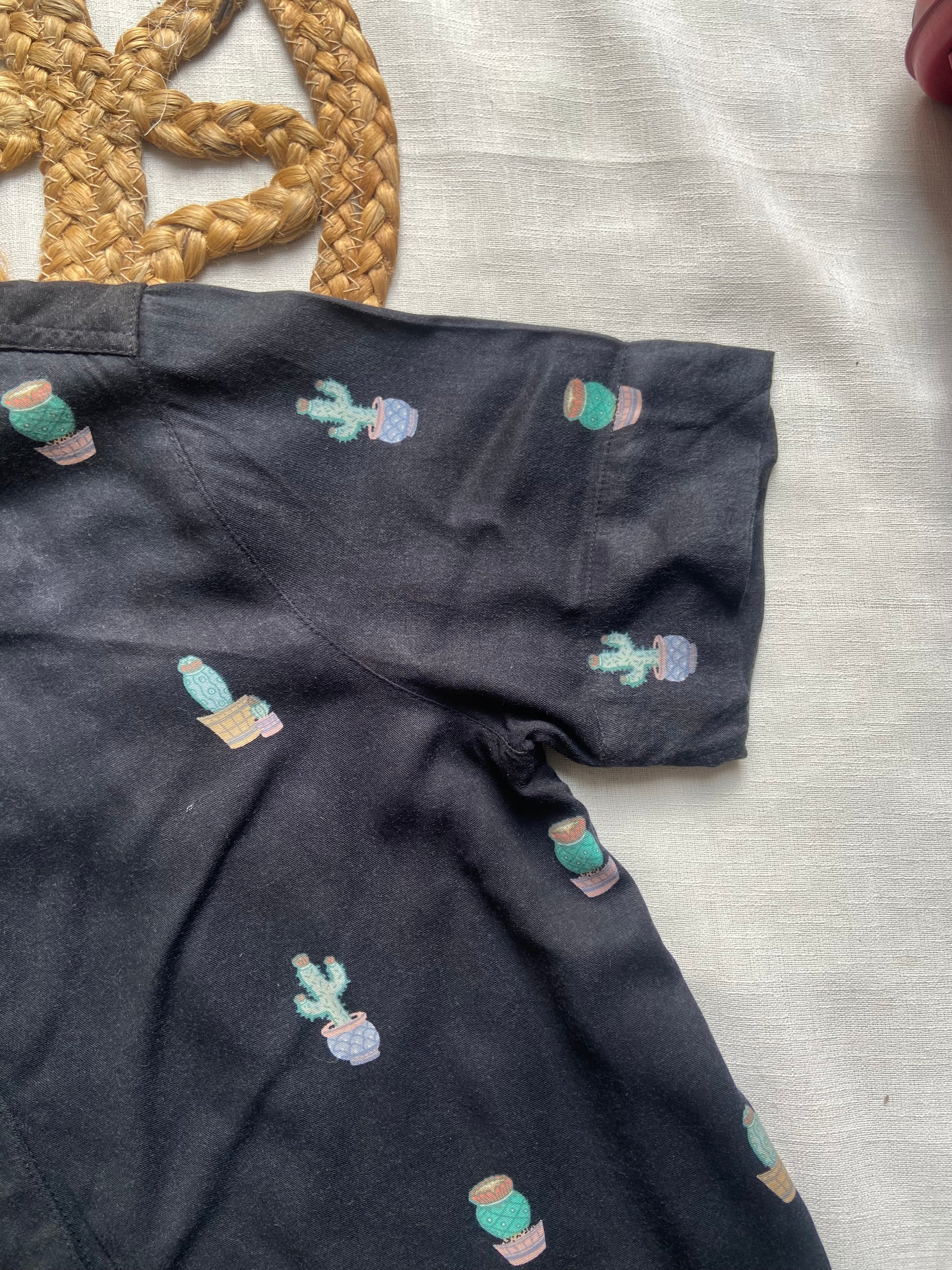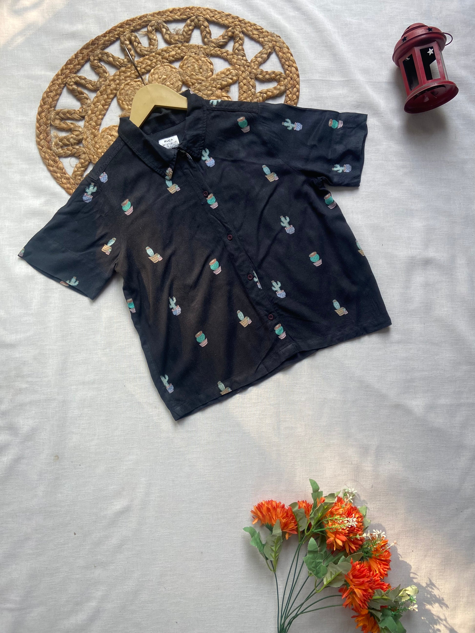 Bring fun and comfort to your style with this black cactus print short sleeve shirt. Designed with a classic collar, button-down front, and relaxed fit, this shirt offers a cool and casual vibe for everyday wear. The quirky cactus pattern adds a trendy twist, making it perfect for holidays, outings, or weekend looks. Made from soft, breathable fabric, this printed casual shirt pairs easily with jeans, shorts, or chinos for a laid-back yet stylish outfit.