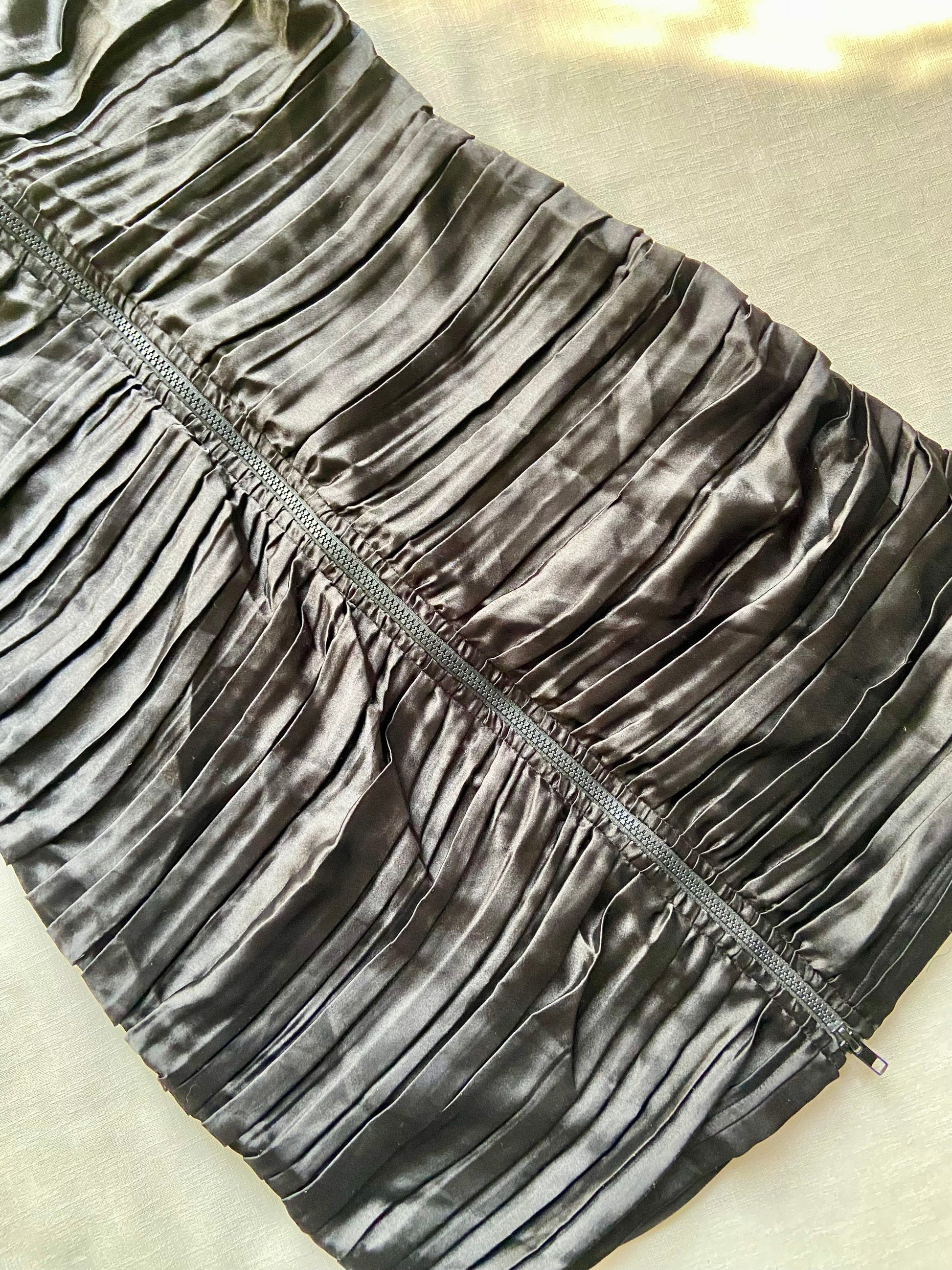 Black Ruched Bodycon Dress with Front Zip