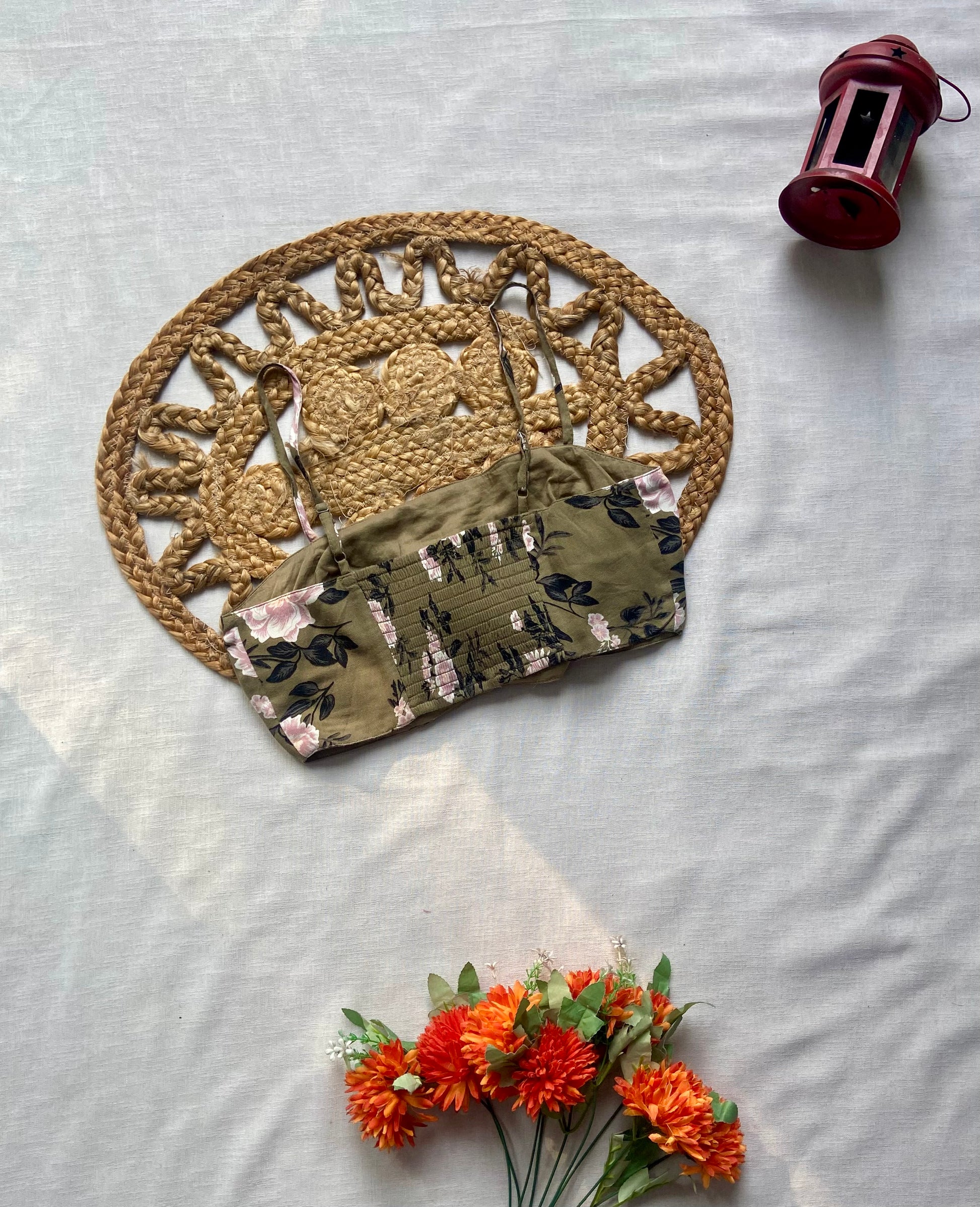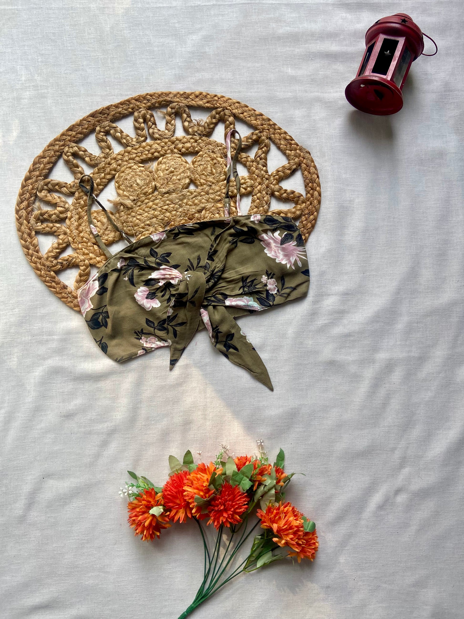 Olive Green Floral Knot Crop Top – Stylish Summer Wear
