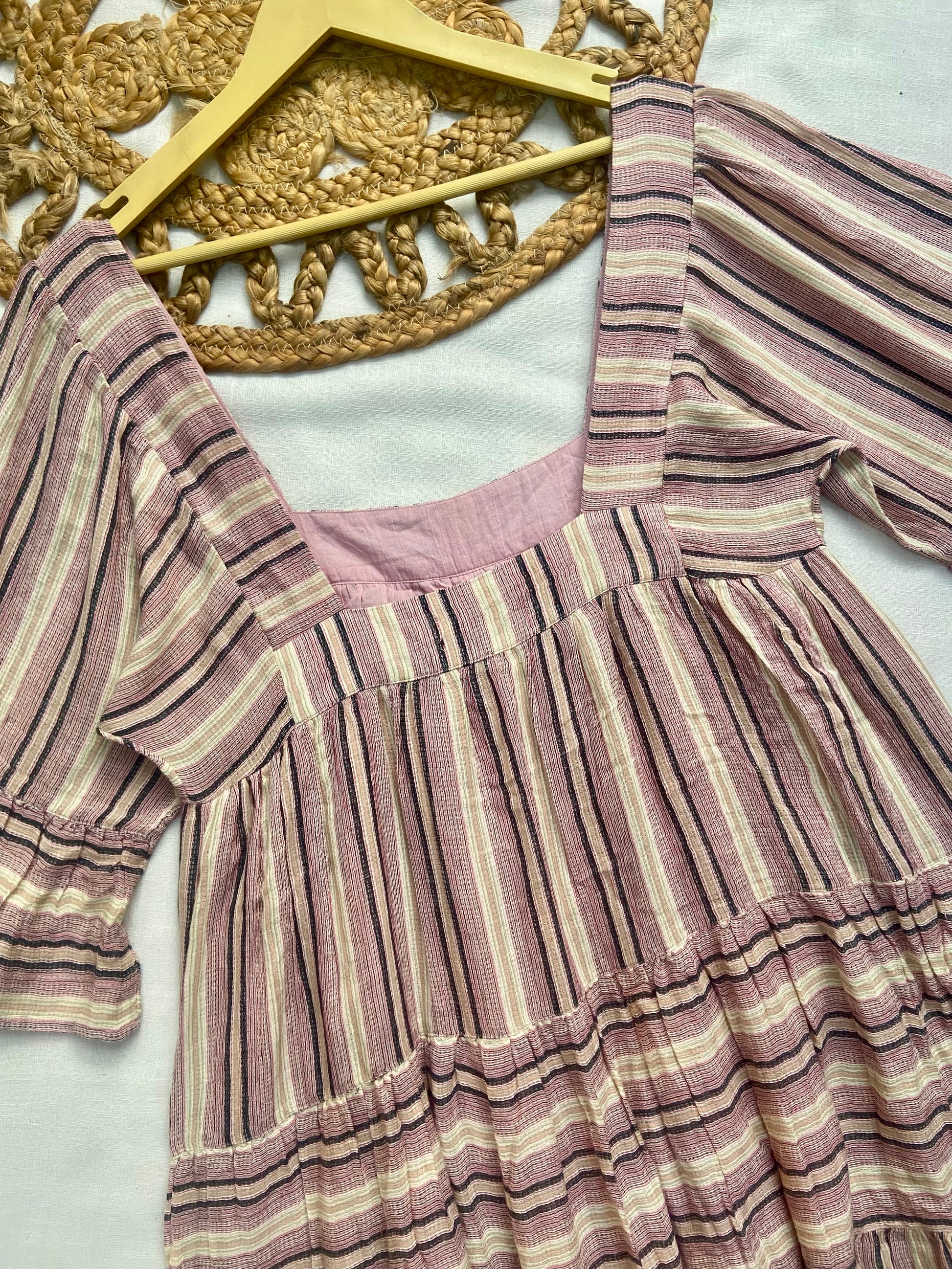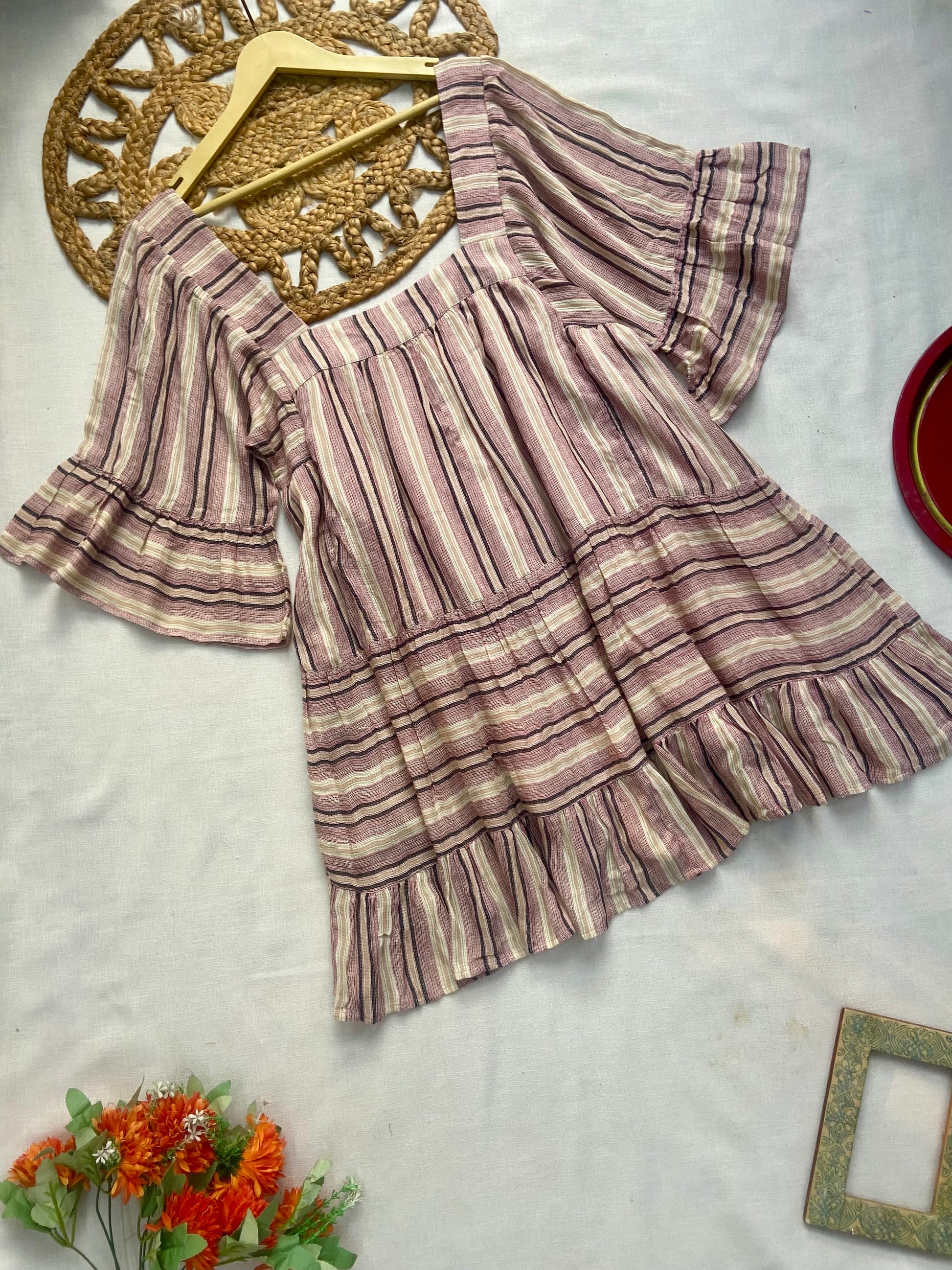 Women’s Striped Flared Sleeve Tunic Top with Ruffle Hem