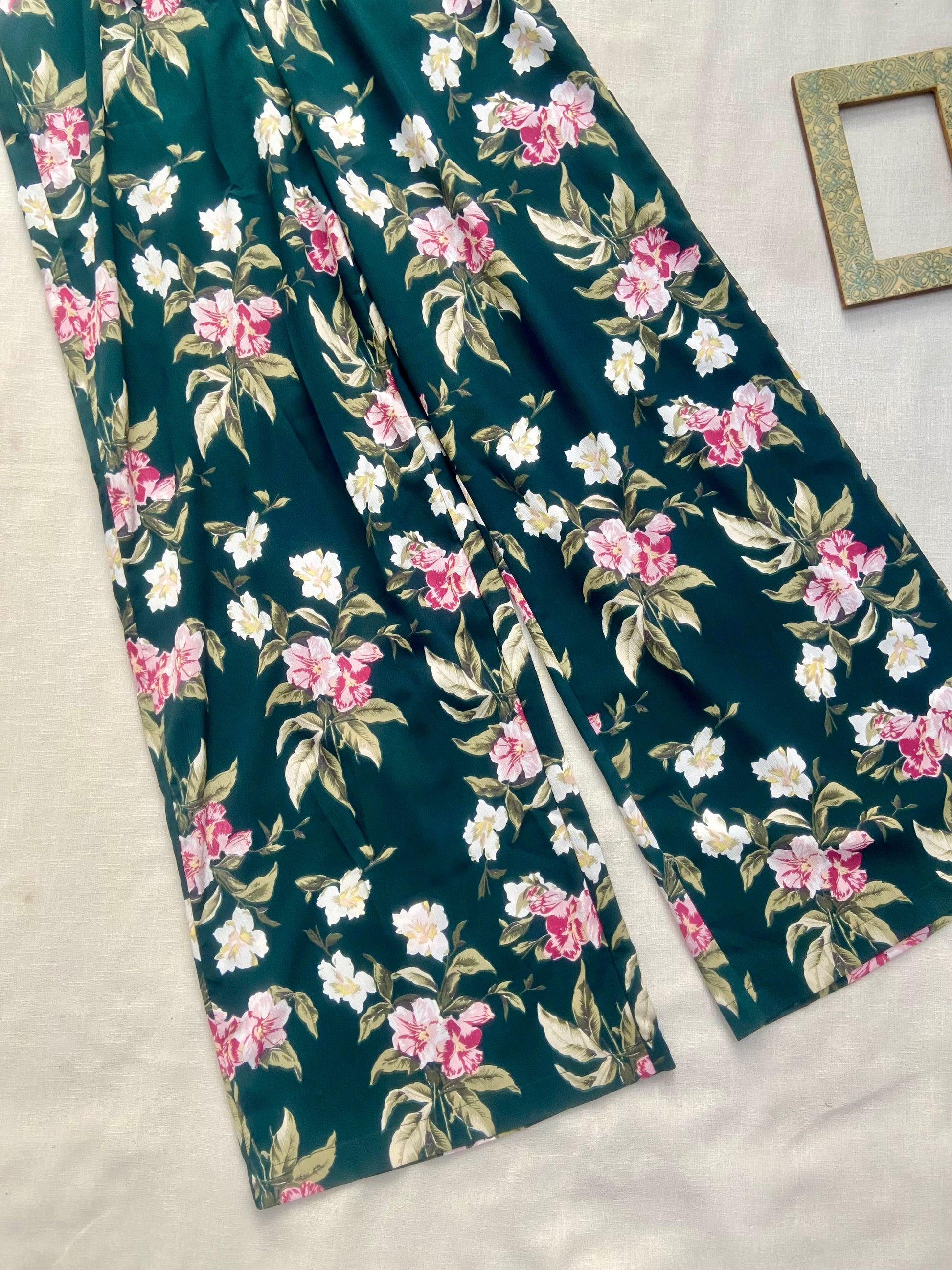 Step into effortless elegance with this women’s green floral jumpsuit, featuring a vibrant all-over flower print and flattering short sleeves. Designed with a relaxed fit and soft, breathable fabric, it ensures comfort while keeping you stylish all day long. Perfect for brunches, vacations, casual outings, or evening wear, this floral jumpsuit pairs beautifully with heels or flats for a chic and feminine look.