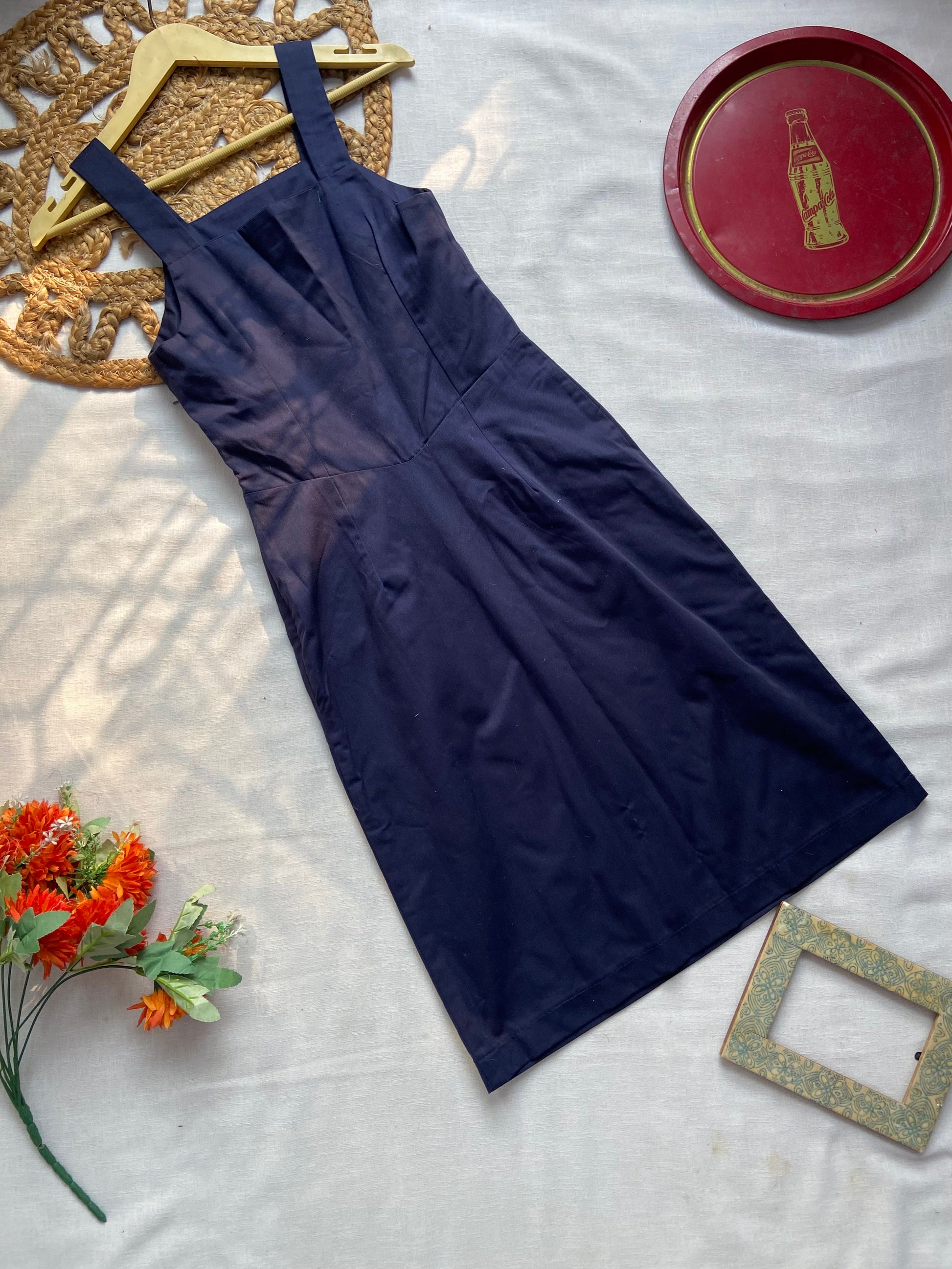 Elevate your everyday style with this elegant navy blue sleeveless A-line dress. Designed with wide shoulder straps and a flattering fit, this dress offers both comfort and sophistication. Crafted from soft, breathable fabric, it’s perfect for casual outings, office wear, or evening gatherings. Pair it with heels for a chic look or flats for a relaxed vibe. A versatile wardrobe essential for modern women who value both style and comfort.