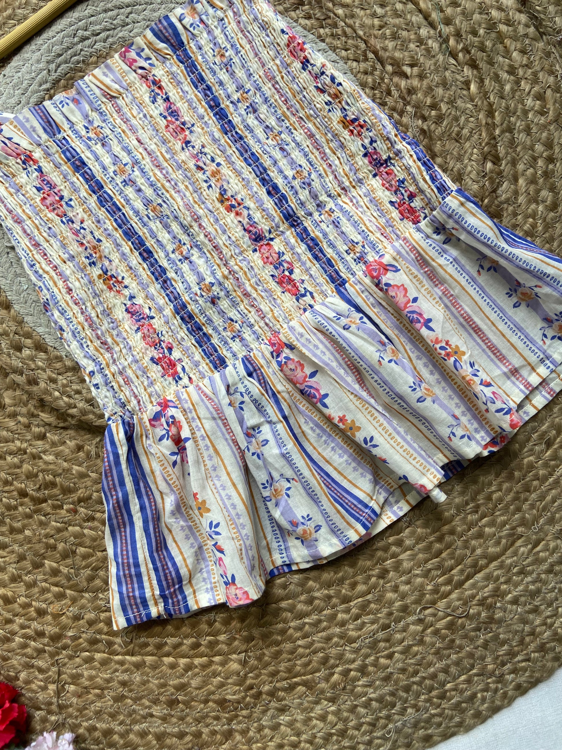 Women's Floral Smocked Peplum Cami Top – Multicolor Summer Stripes