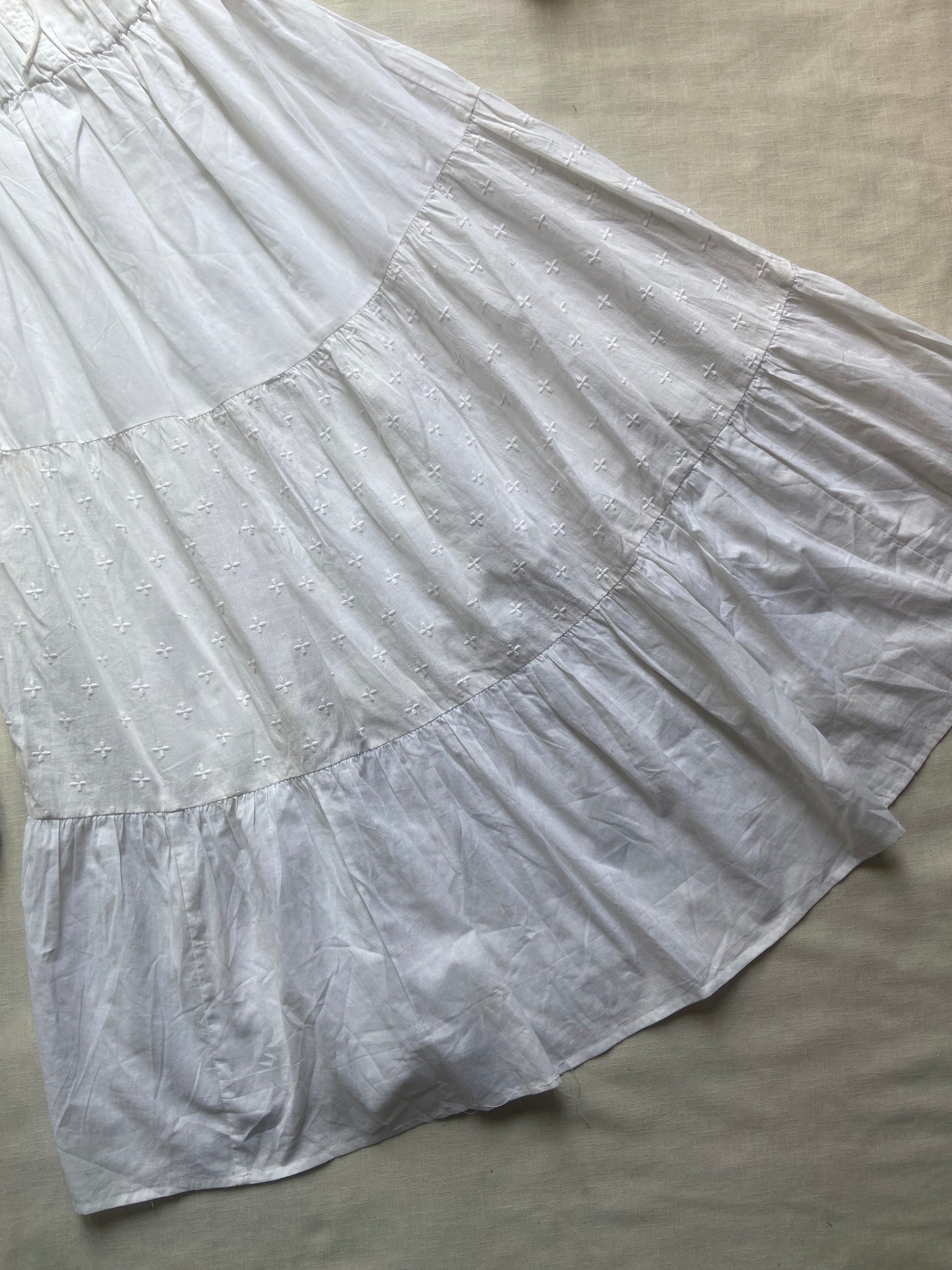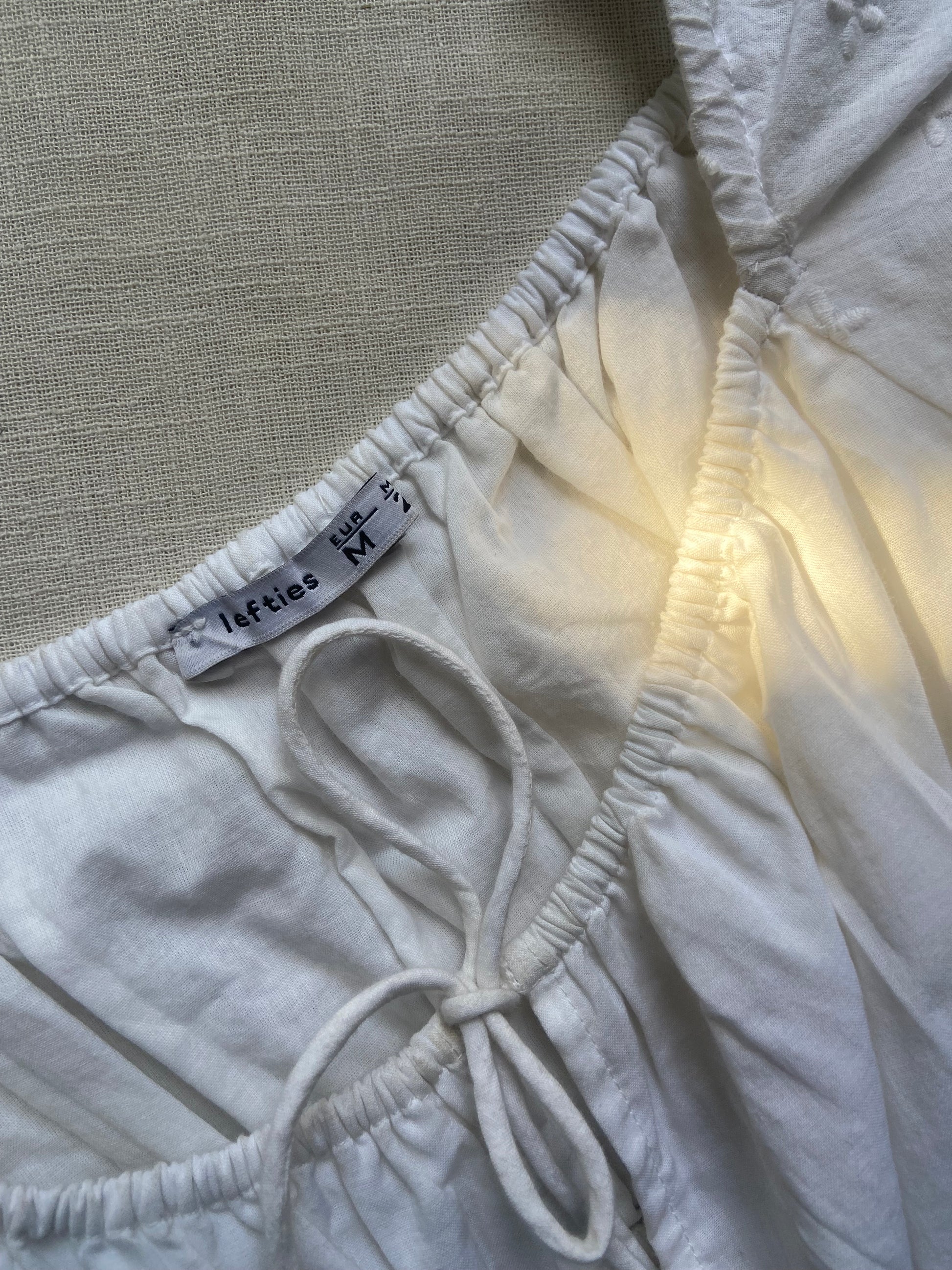 Embrace effortless elegance with this white midi dress featuring puff sleeves, a gathered bodice, and delicate embroidered detailing. The soft elastic neckline and tie-front add a romantic touch, perfect for summer outings, garden parties, or casual brunches. Light, airy, and timeless—this dress is a warm-weather essential.