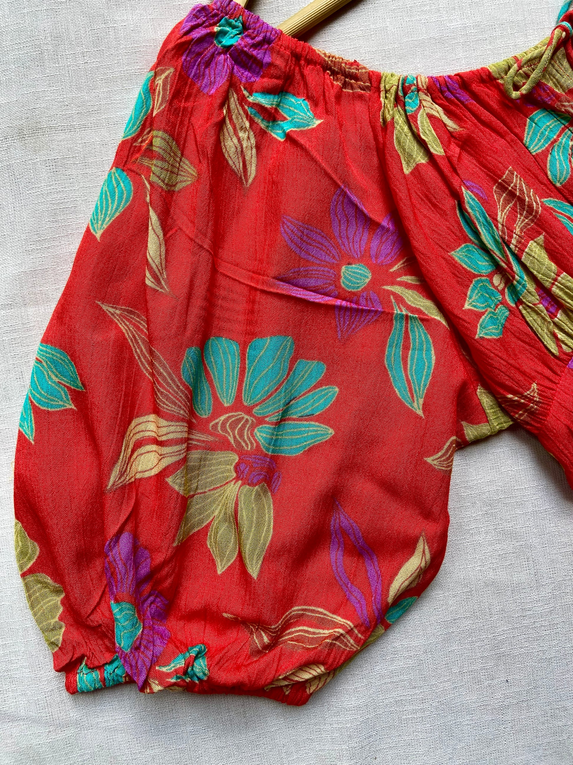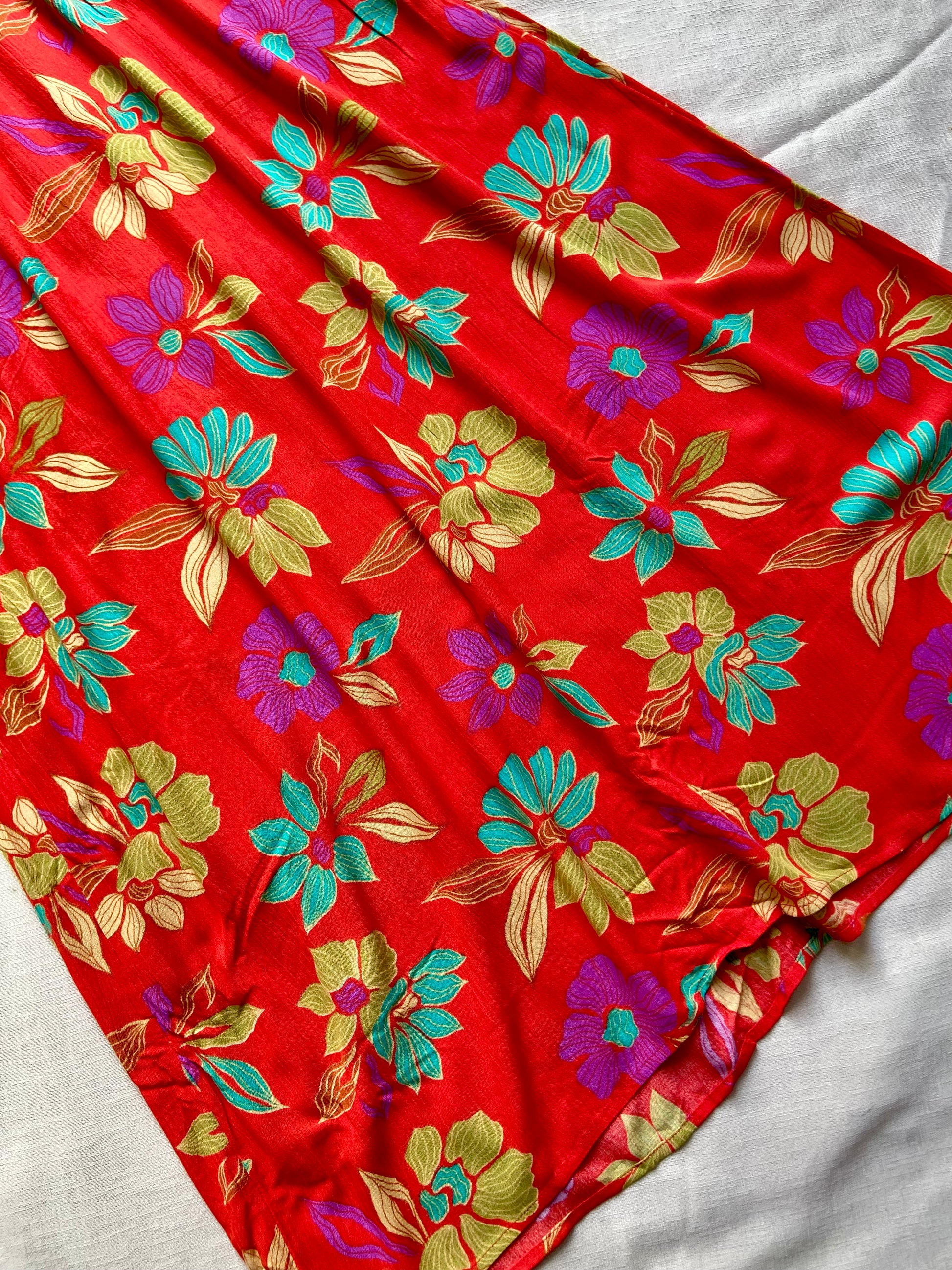 Turn heads with this vibrant red off-shoulder midi dress, adorned with bold multicolored floral prints. Featuring short puff sleeves, a ruched neckline with tie detail, and a relaxed silhouette, this dress is perfect for summer days, beach vacations, or casual outings. The soft, flowy fabric ensures all-day comfort while the eye-catching print adds a playful and tropical charm. Pair it with sandals or wedges for a fresh and flirty look.