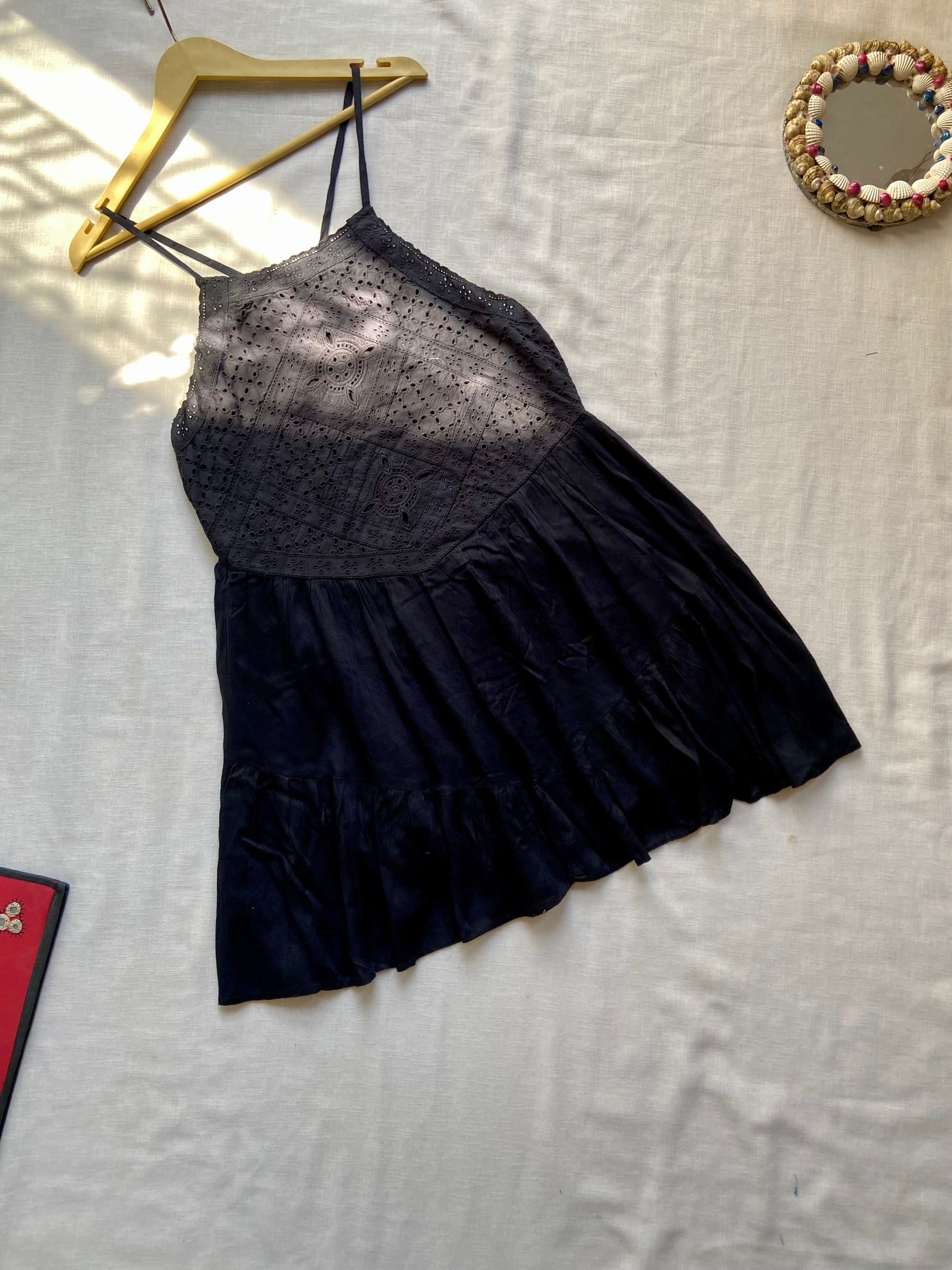 Black Eyelet Embroidered Spaghetti Strap Dress