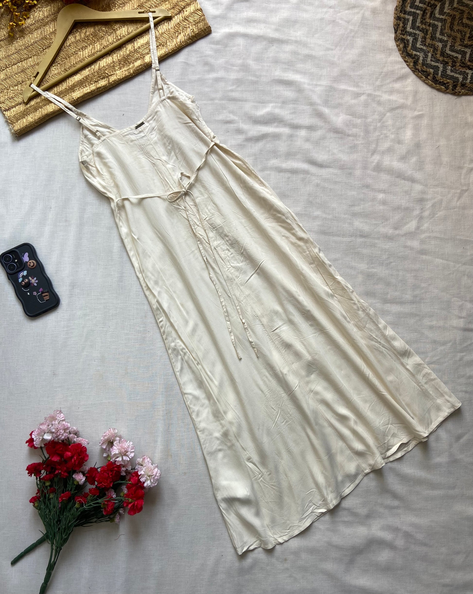 Women's Cream Satin Slip Dress with Front Button Detailing