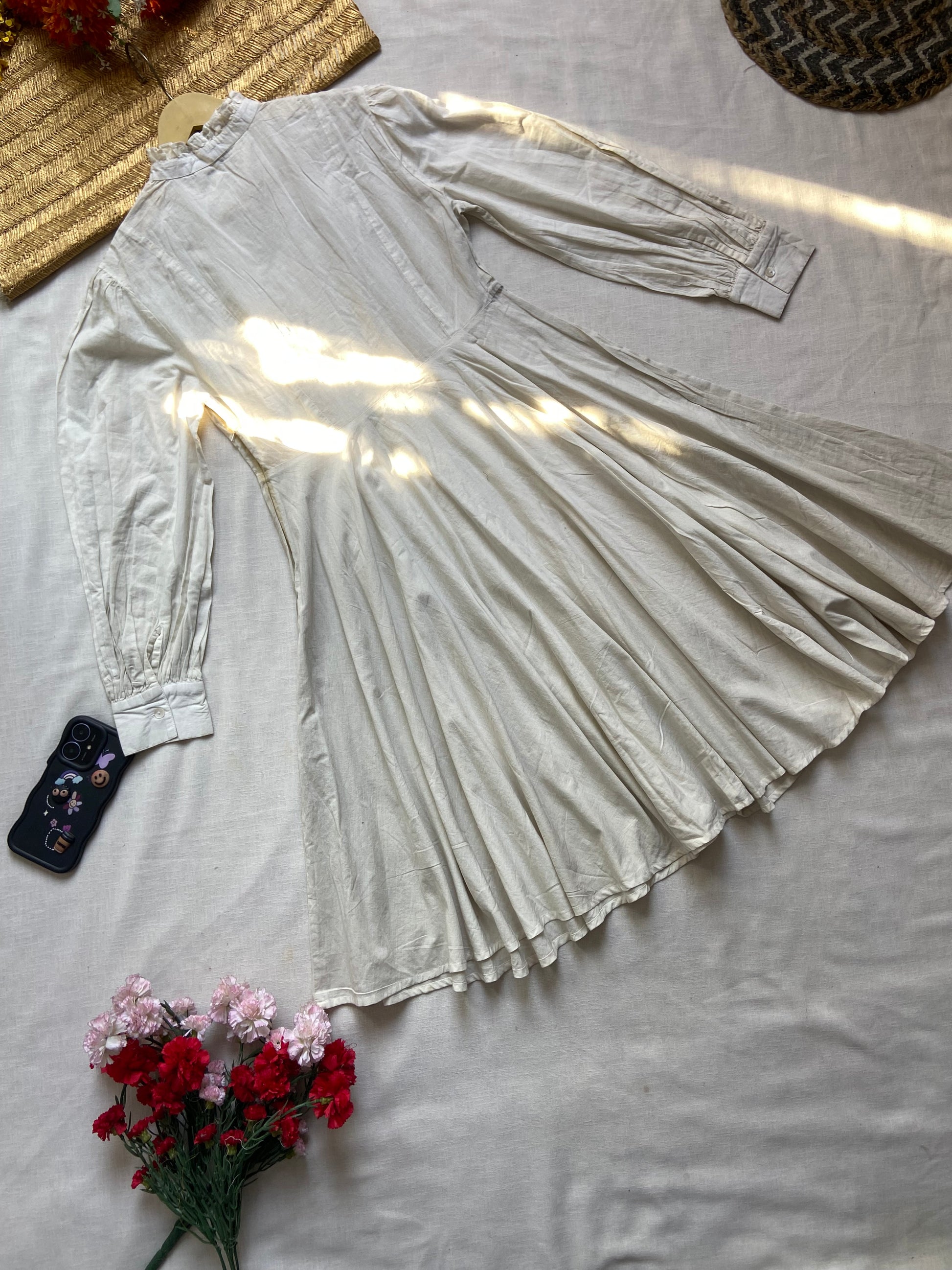 Channel timeless elegance with this vintage-inspired white dress, featuring a ruffled high collar, button-down front, and pleated fit-and-flare silhouette. Designed with full-length sleeves and cuff details, this dress blends classic charm with modern grace. Ideal for formal gatherings, tea parties, or a stylish day out—just pair it with your favorite heels or boots for a refined look.