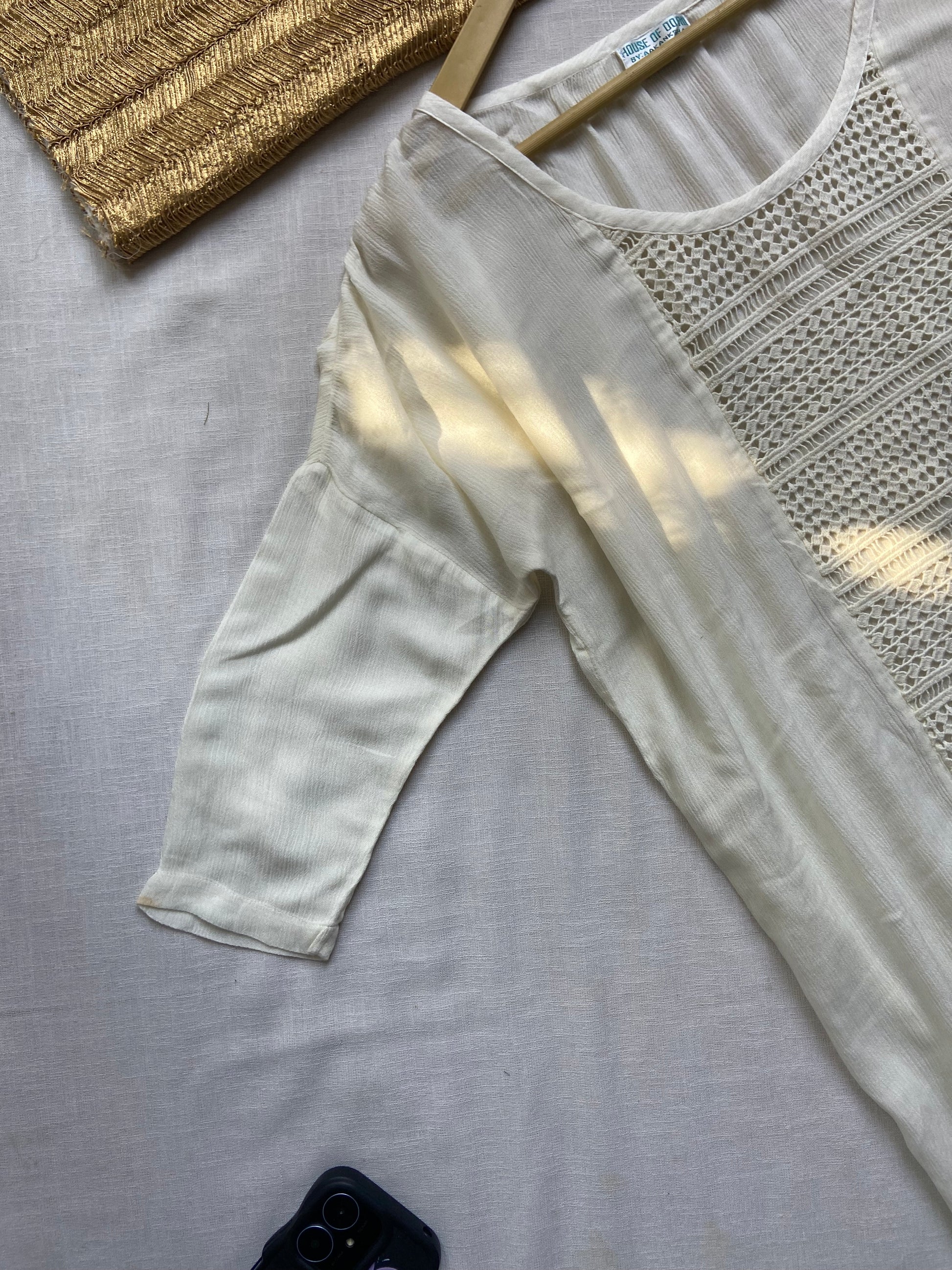Women's Cream Crochet Panel Tunic Top