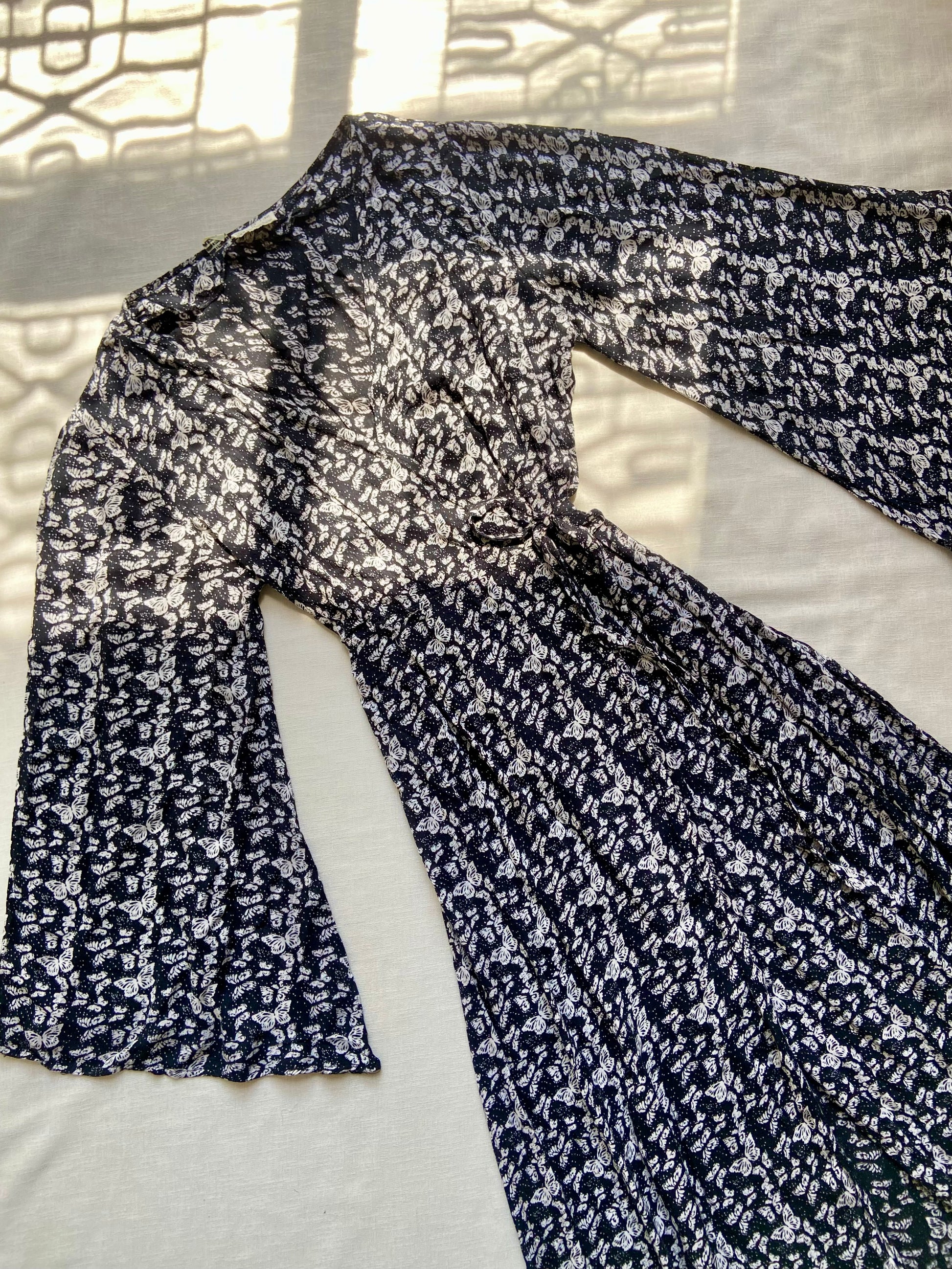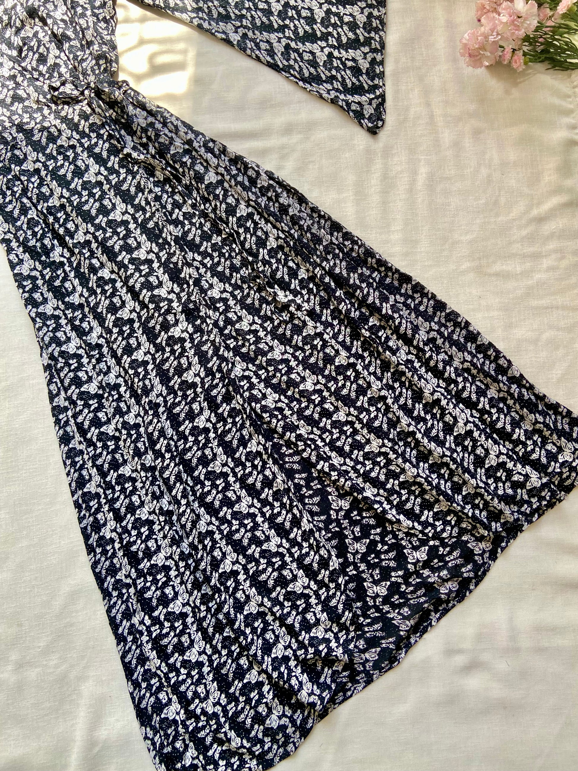 Elevate your everyday style with this elegant black maxi dress featuring a delicate white floral print. Designed with a flattering cinched waist and wide flared sleeves, this dress offers a comfortable yet chic silhouette. Perfect for casual outings, brunch dates, or evening strolls, the lightweight fabric ensures all-day comfort and effortless charm. Pair it with sandals or heels for a versatile look that transitions seamlessly from day to night.