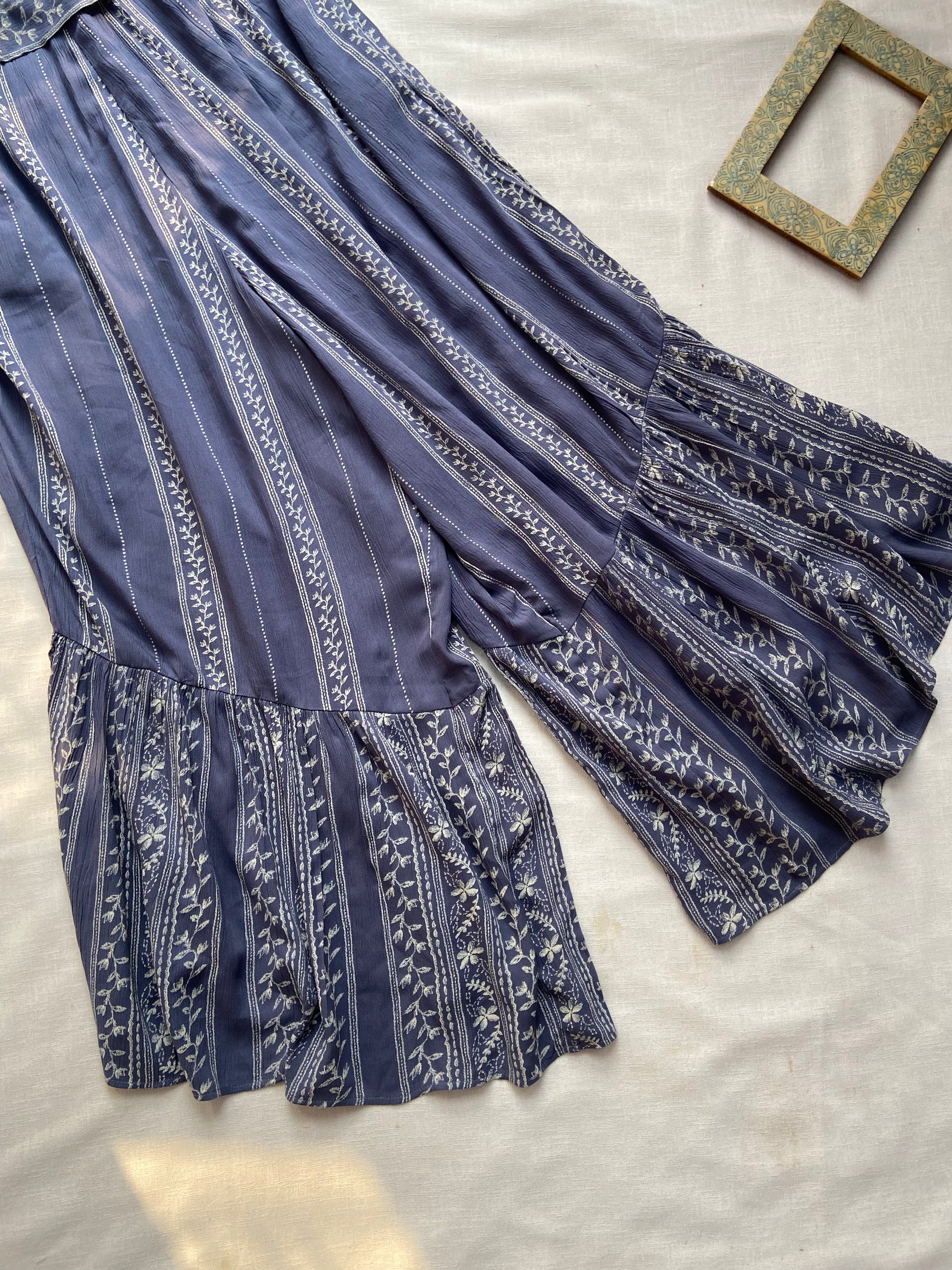 Stay stylish and comfortable with this blue off shoulder printed flared jumpsuit for women. Featuring an elastic off-shoulder neckline, chic floral and stripe prints, and wide flared bottoms with layered detailing, this jumpsuit adds a touch of boho elegance to your look. Made from lightweight, breathable fabric, it’s perfect for casual outings, beach vacations, or festive gatherings. Pair it with sandals or wedges and minimal accessories for a relaxed yet fashionable statement. A must-have off shoulder boho jumpsuit for your wardrobe.