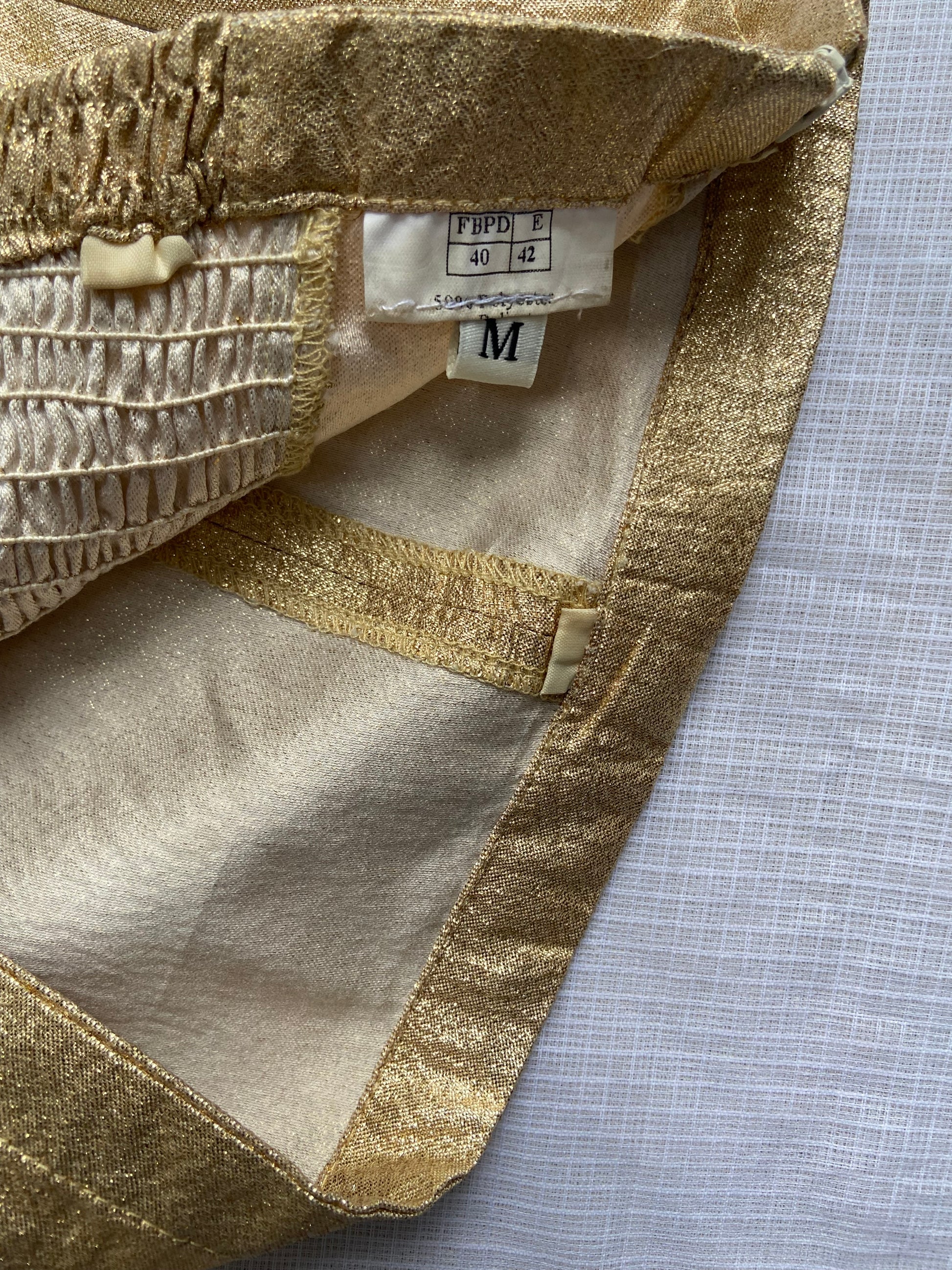 Keywords: gold tube top, metallic strapless top, party wear blouse, festive wear top, women’s shimmer top, strapless crop top