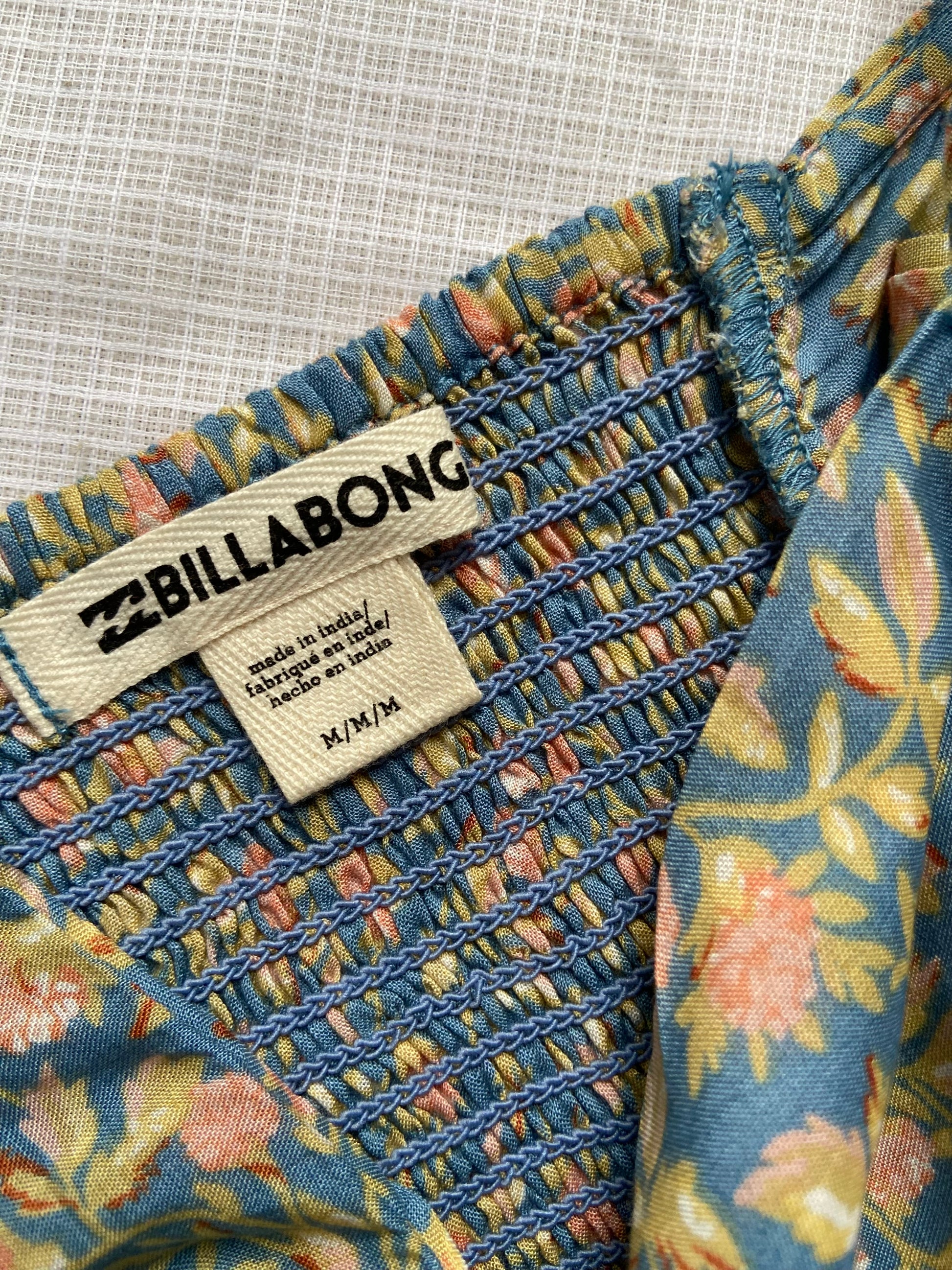 Color: Multicolor floral print on blue base