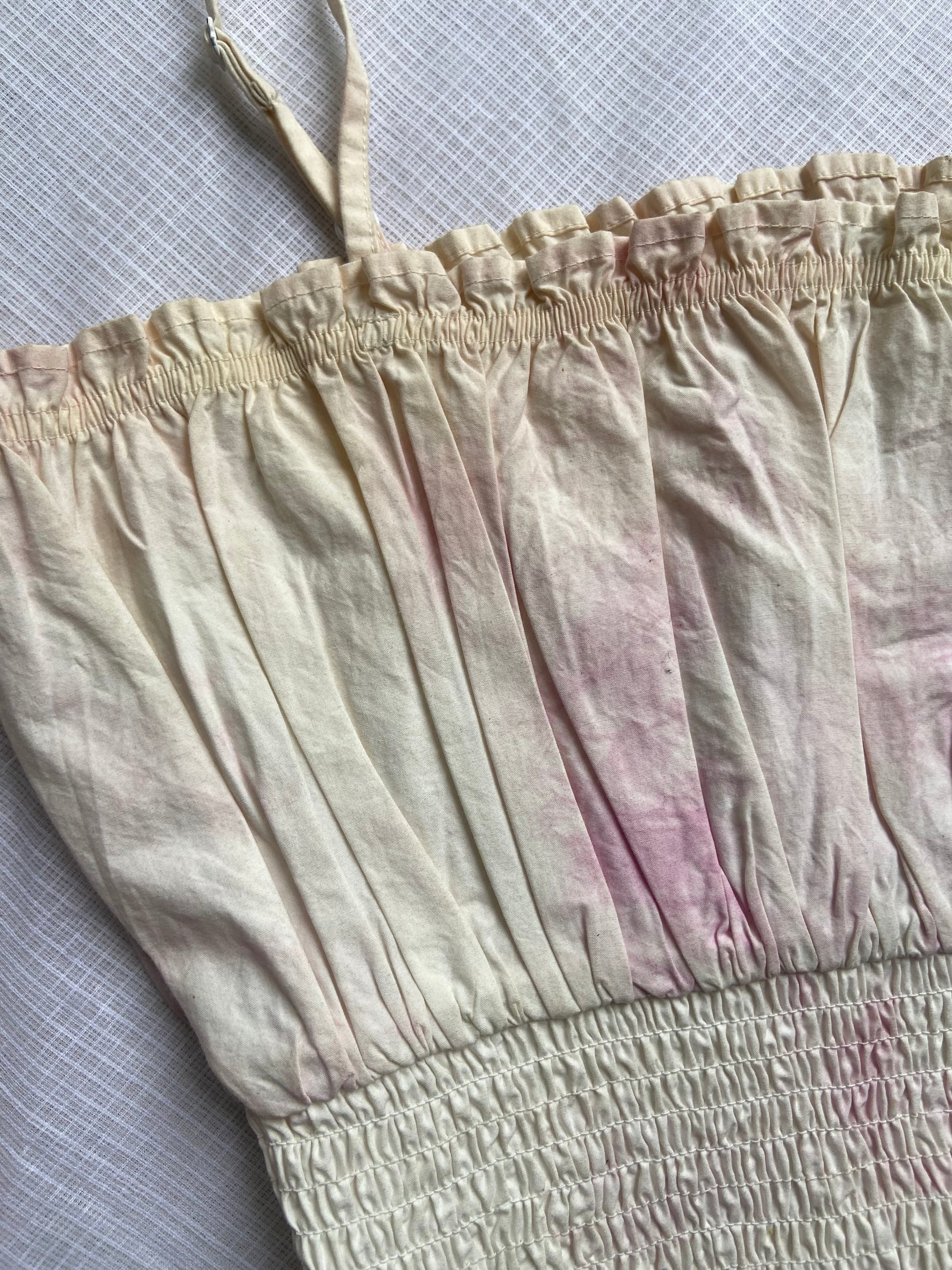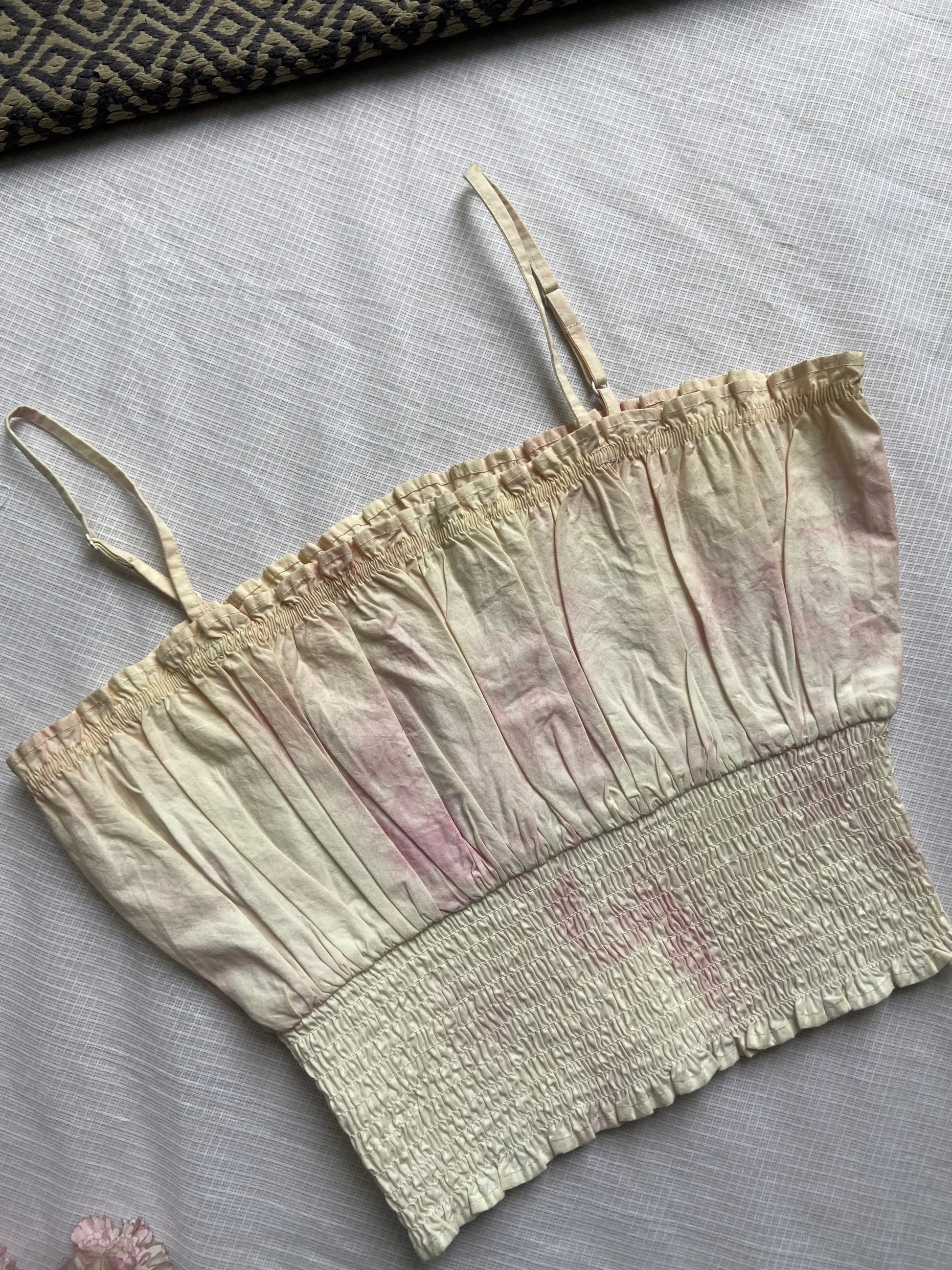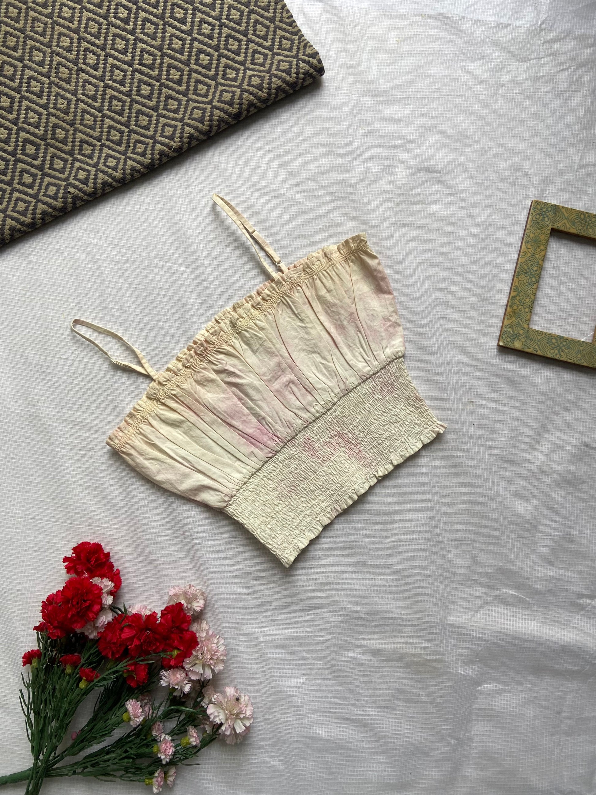 Elevate your casual wardrobe with this elegant smocked crop top, featuring delicate adjustable straps for a perfect fit. Crafted from soft, breathable fabric, this top offers a comfortable yet stylish look with subtle pleats and a slightly ruched design. Ideal for pairing with high-waisted jeans or skirts, it’s a versatile addition that adds a touch of effortless charm to any outfit. Perfect for warm weather, casual outings, or layering under jackets, this crop top blends comfort and style seamlessly.