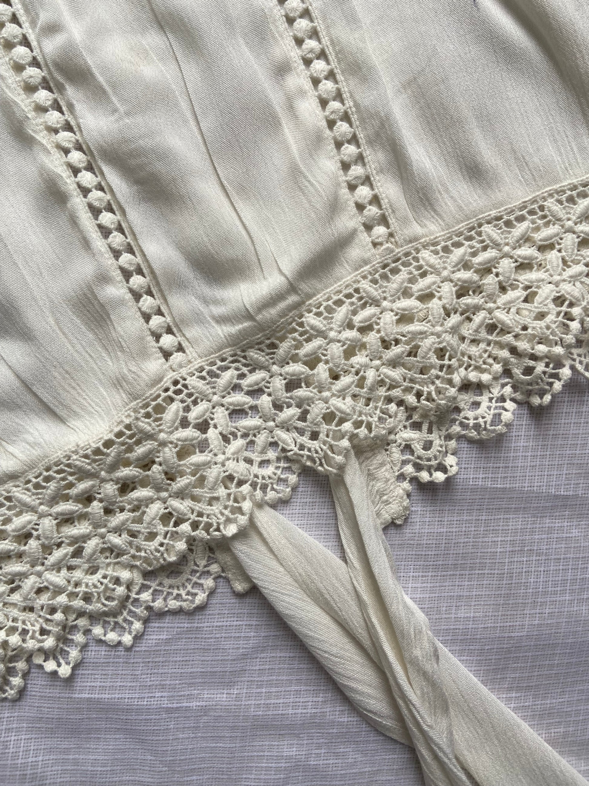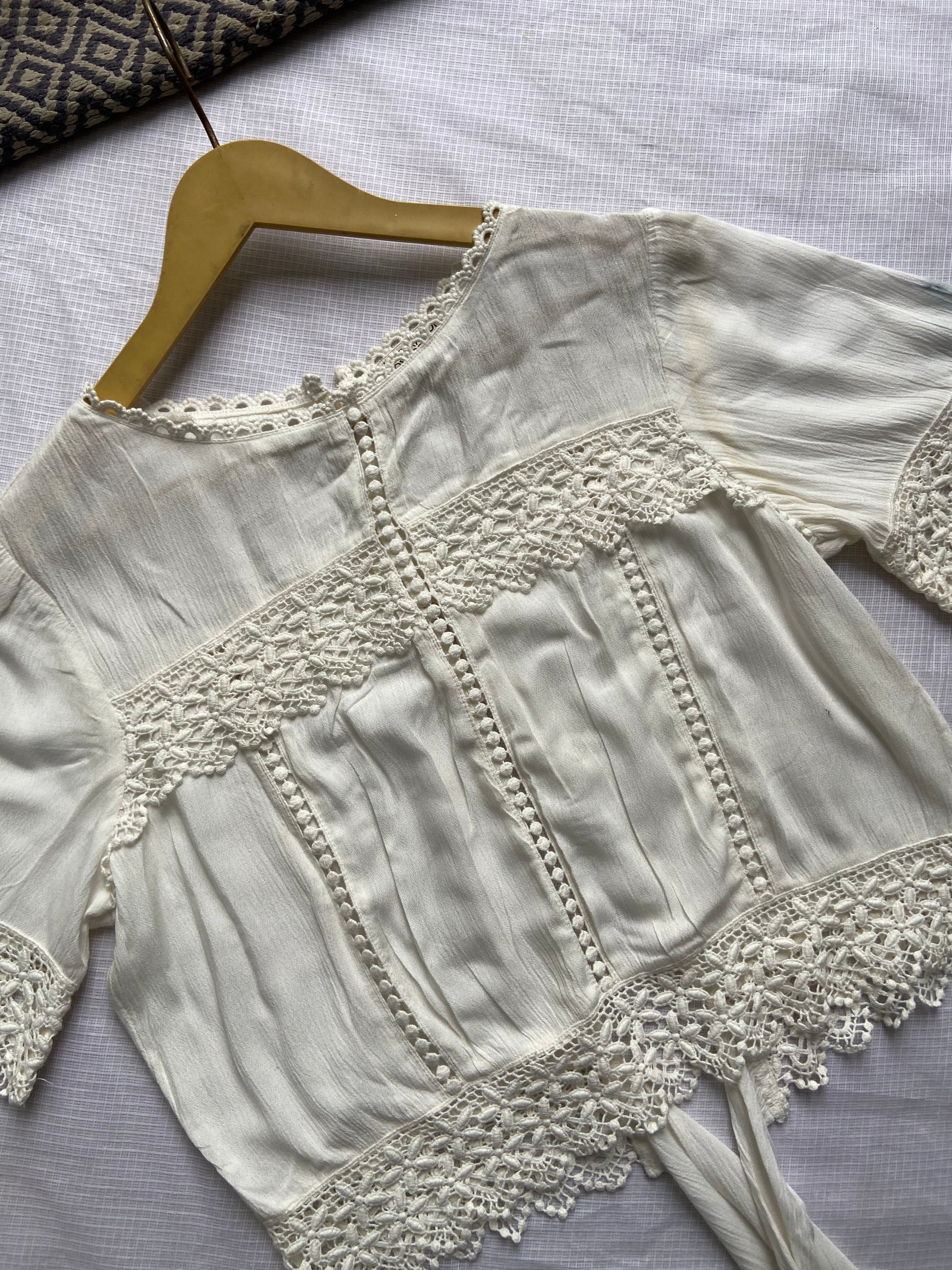 Ivory Boho Lace Trim Crop Top with Tie-Back