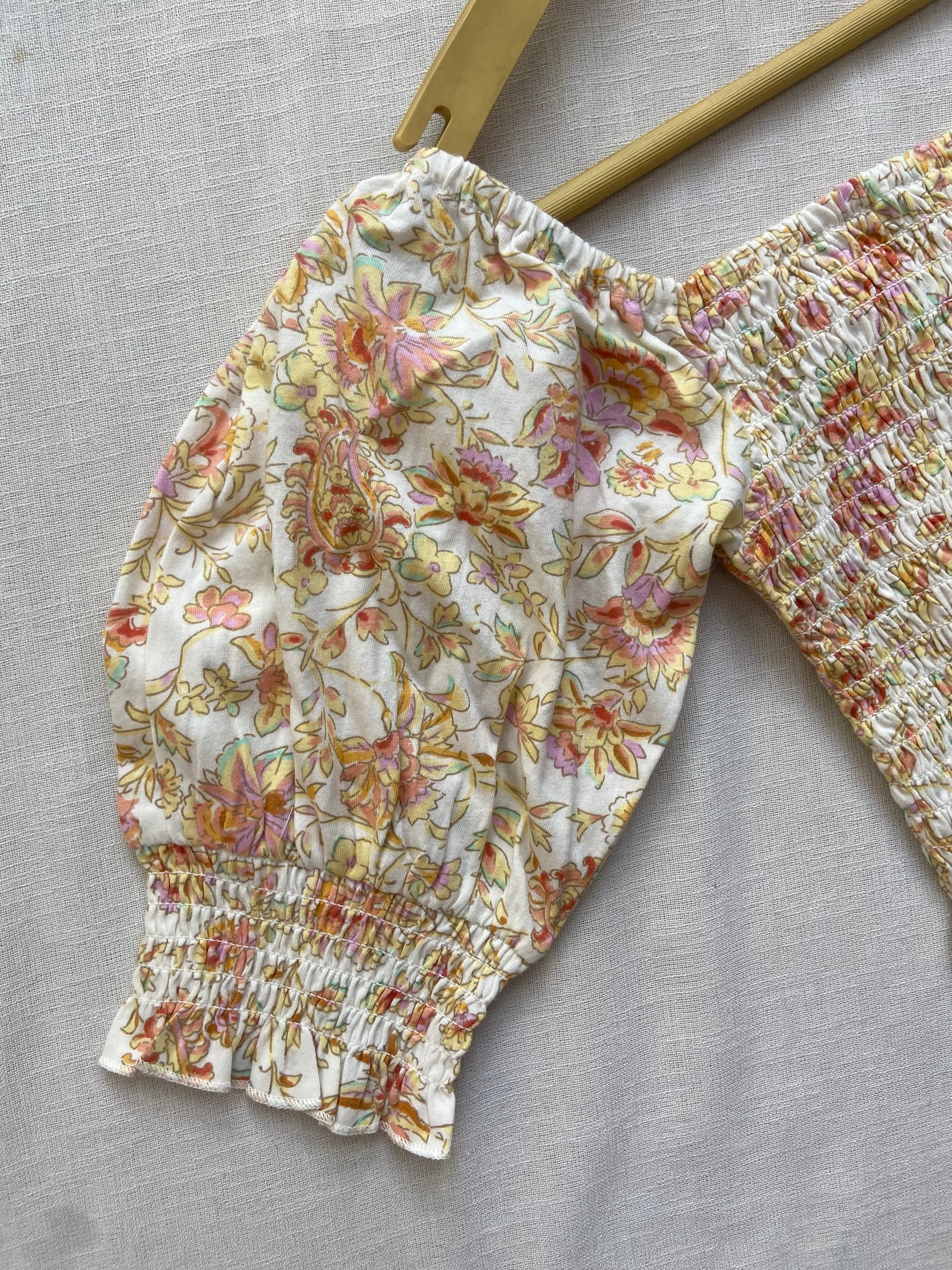Floral Smocked Crop Top with Puff Sleeves