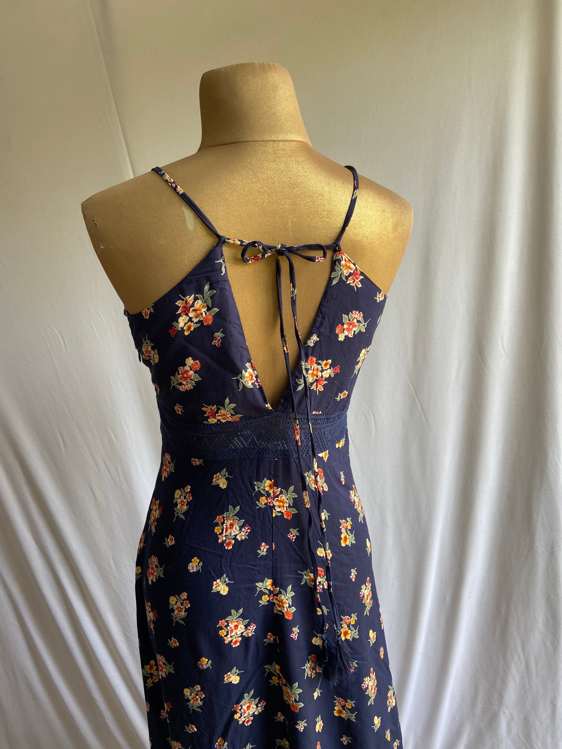 Navy Blue Floral Spaghetti Strap Maxi Dress