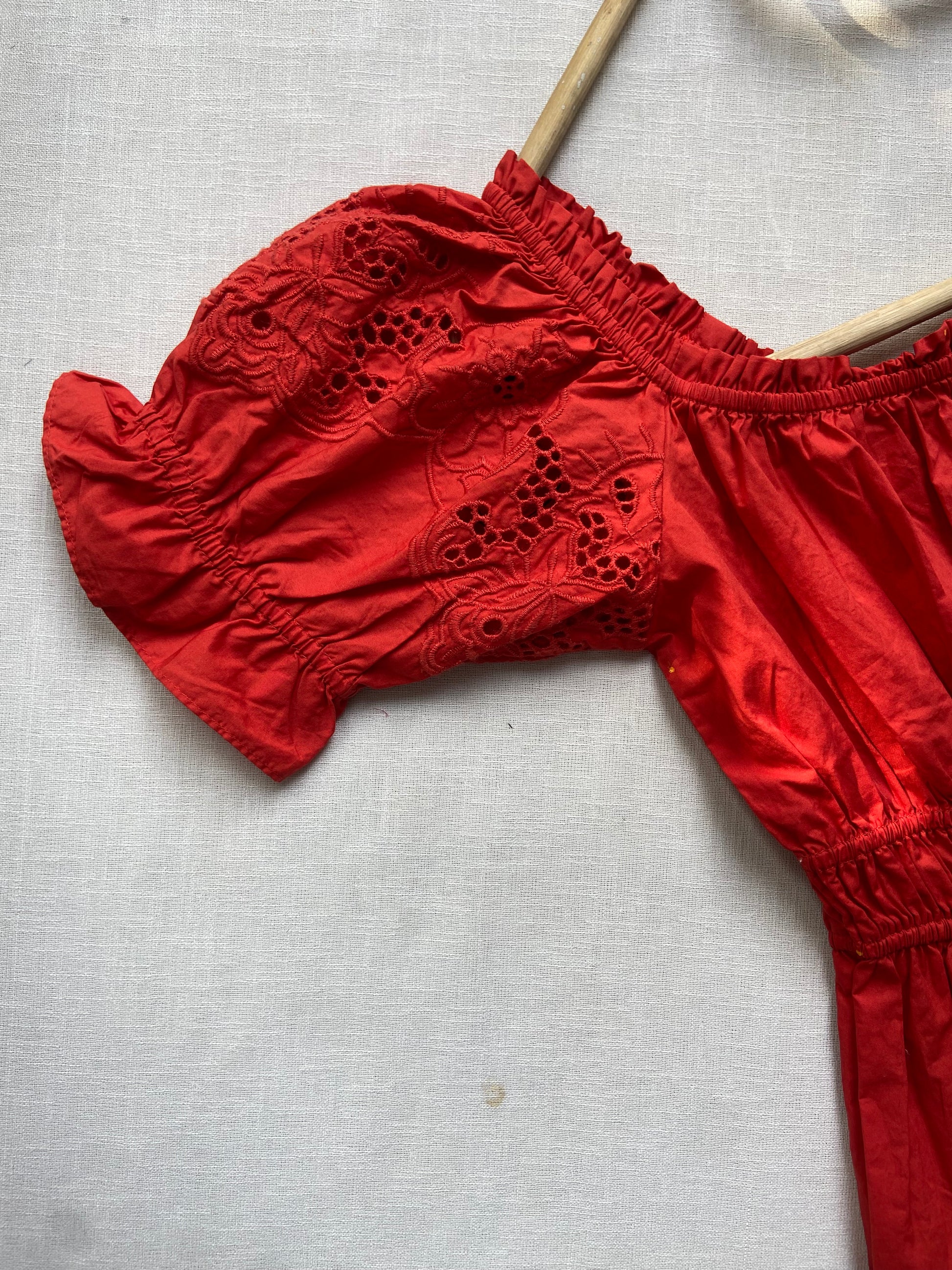 Radiate confidence and charm in the Ruby Echo Smocked Midi Dress. This eye-catching piece features romantic puff sleeves, a delicately smocked bodice, and a flowing tiered skirt that flutters with every step. The striking ruby red hue adds an instant pop of color to any occasion, making it a standout choice for both daytime outings and evening gatherings.
