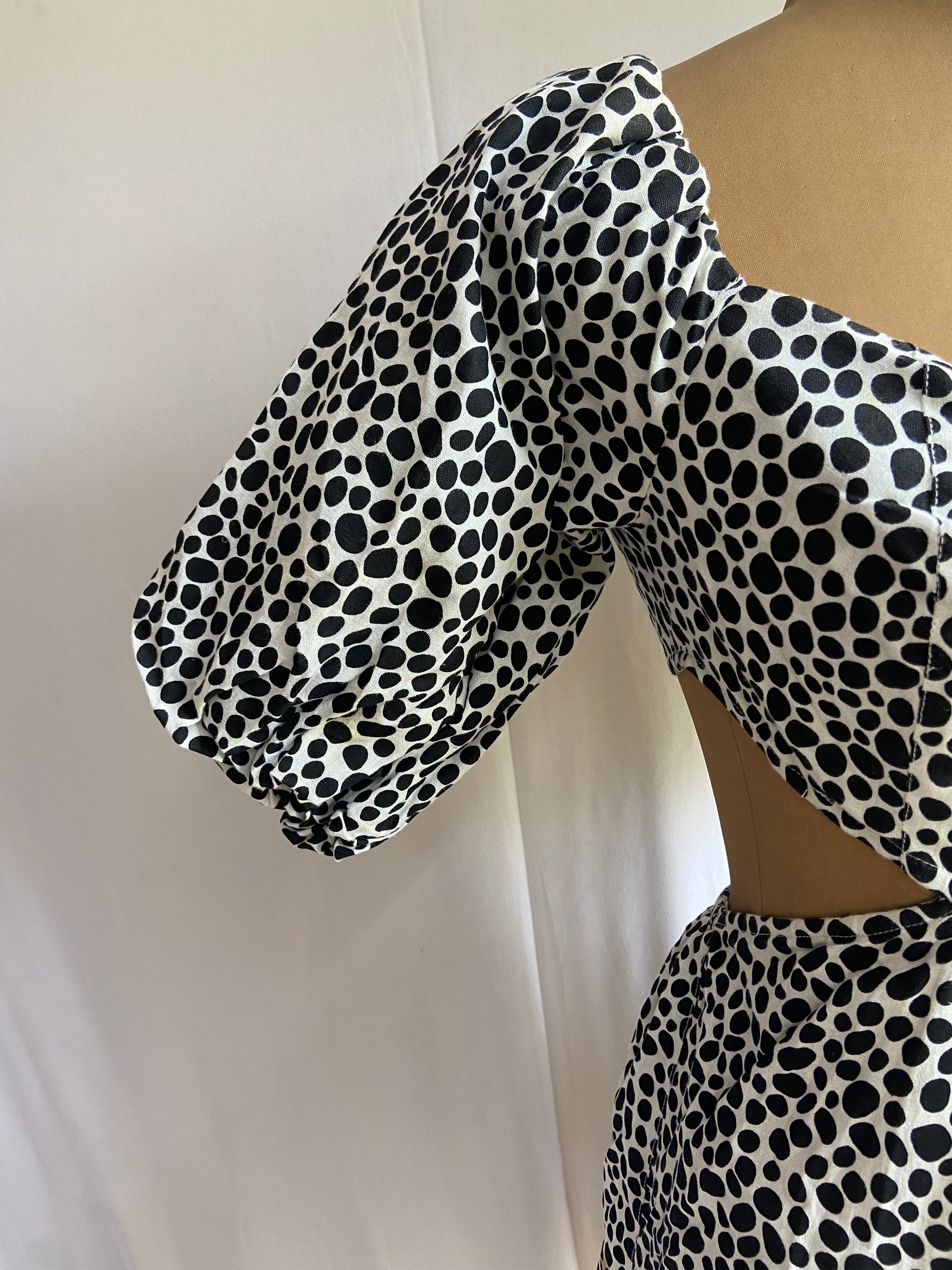 Polka Dot Puff Sleeve Dress with Front Cut-Out and Tiered Hem