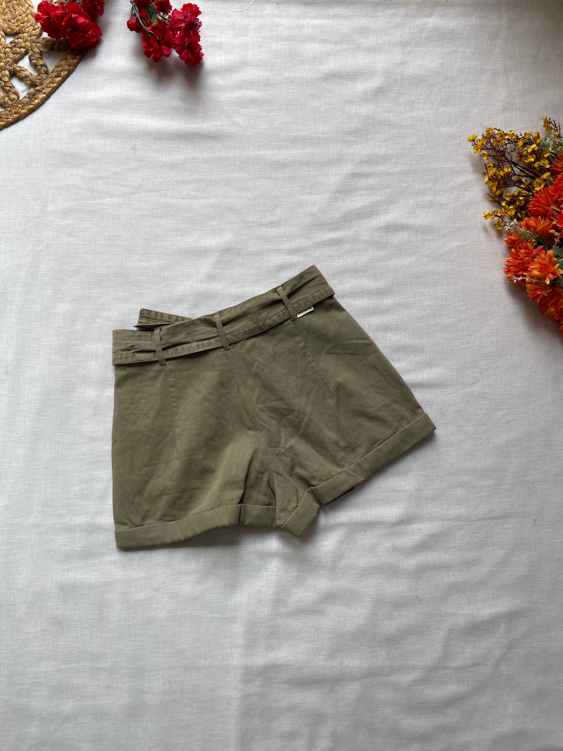 Women's High-Waisted Khaki Paperbag Shorts with Belt