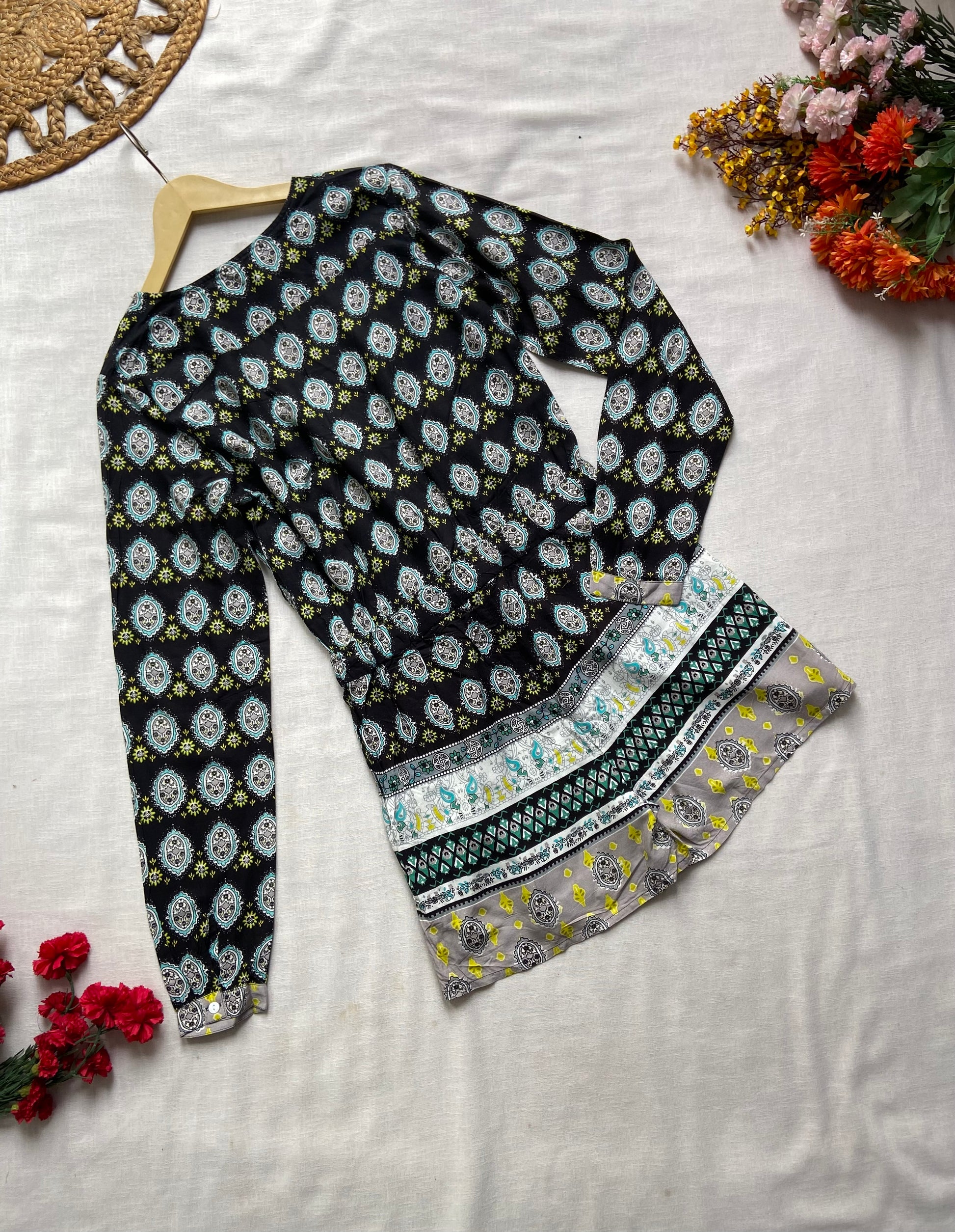 Add a touch of elegance and charm to your wardrobe with this beautiful black mini dress featuring a vibrant red floral print. Designed with full-length sleeves and a flattering cinched waist, this dress offers a perfect blend of comfort and style. The soft fabric drapes effortlessly, making it ideal for both casual outings and special occasions. Pair it with heels or boots to complete your look.