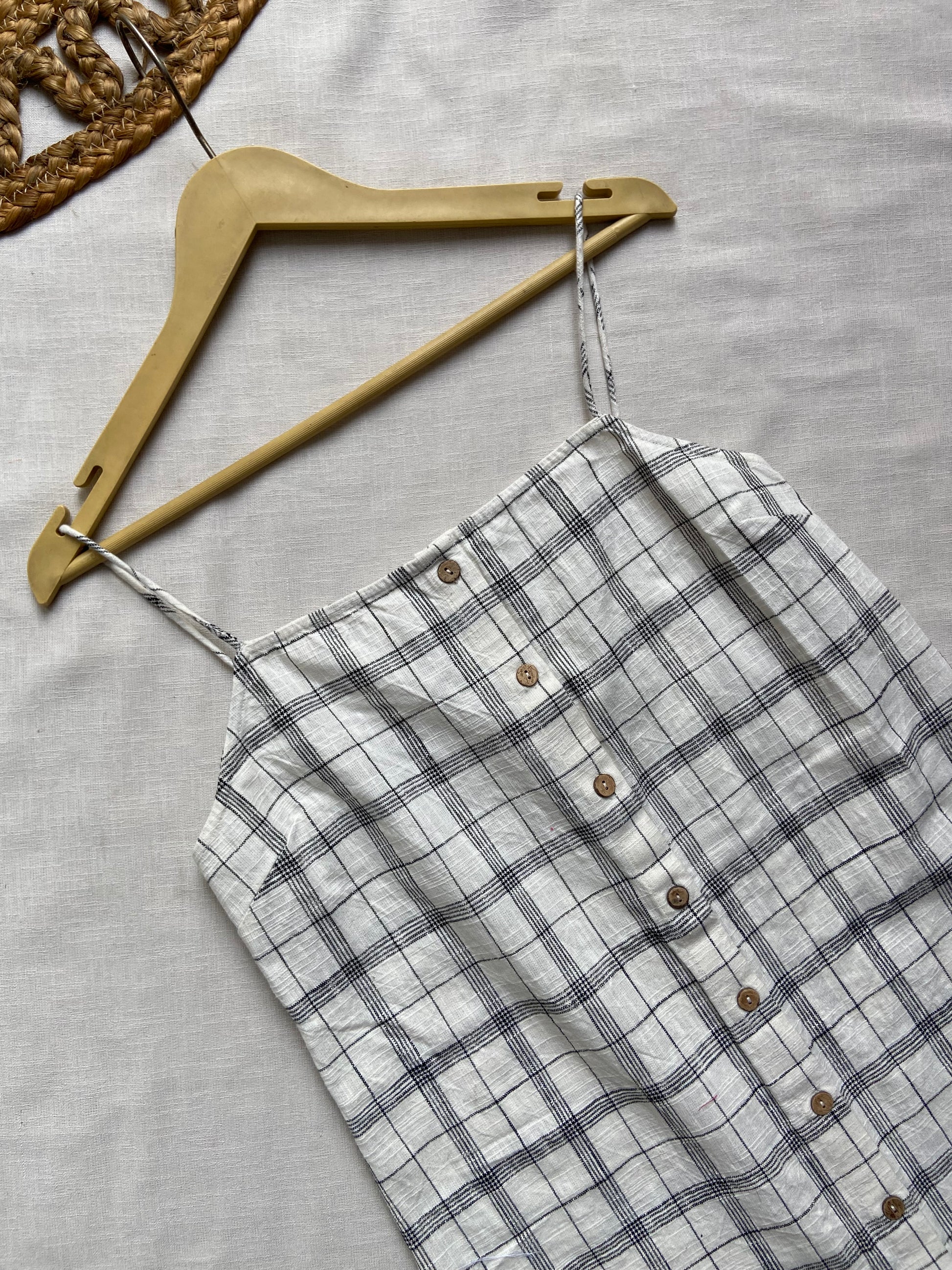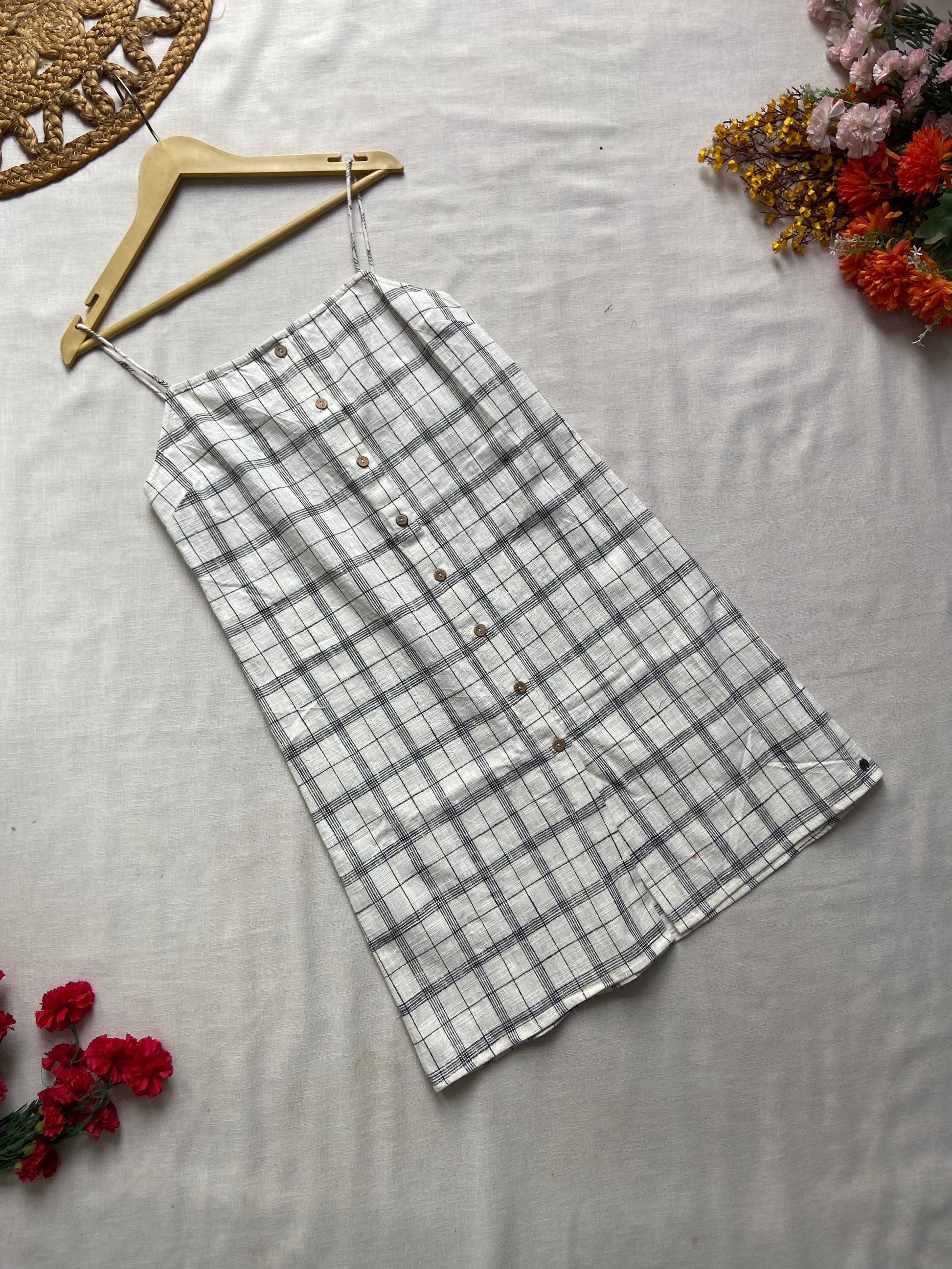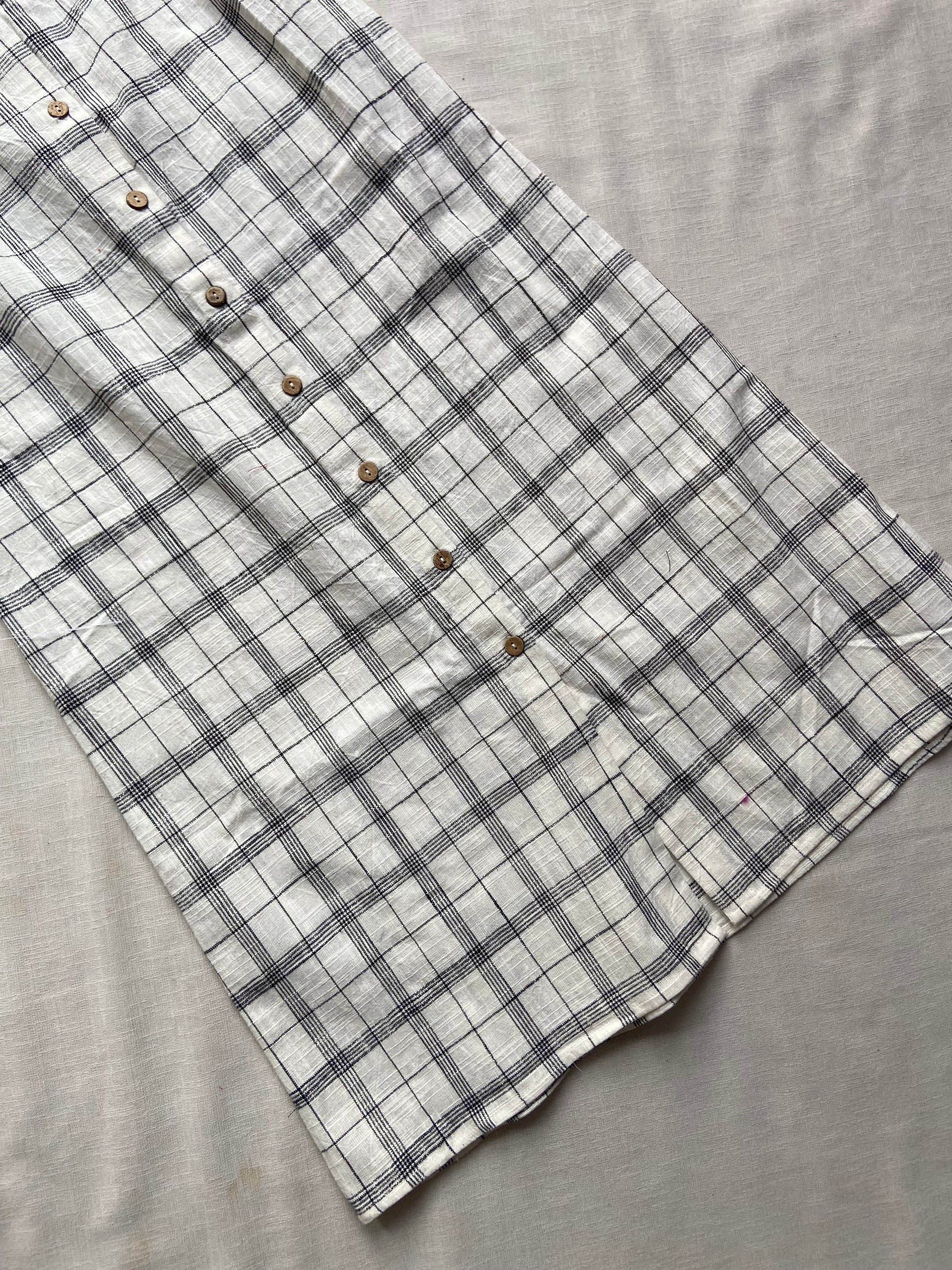 White Check Print Button Down Mini Dress
