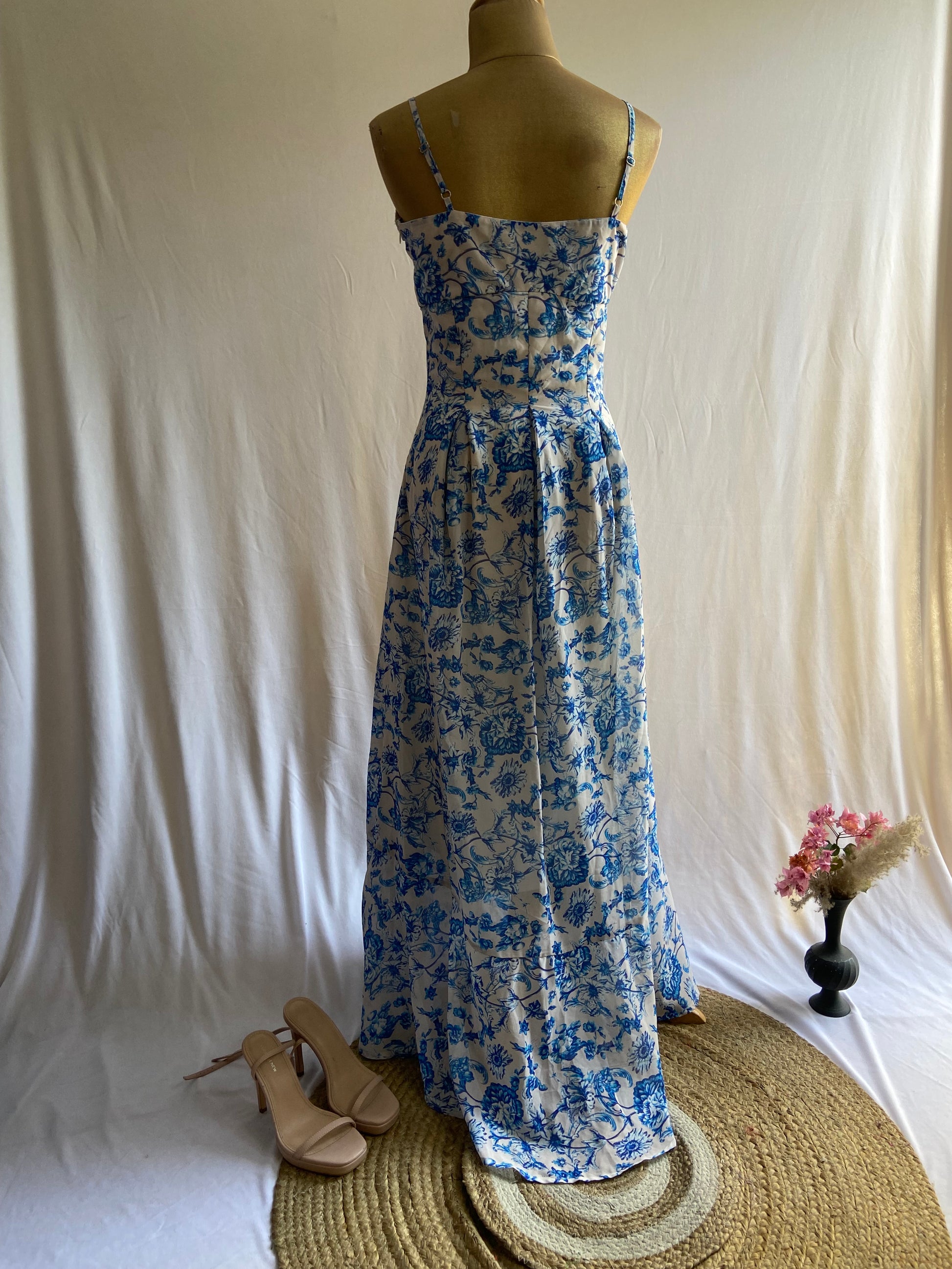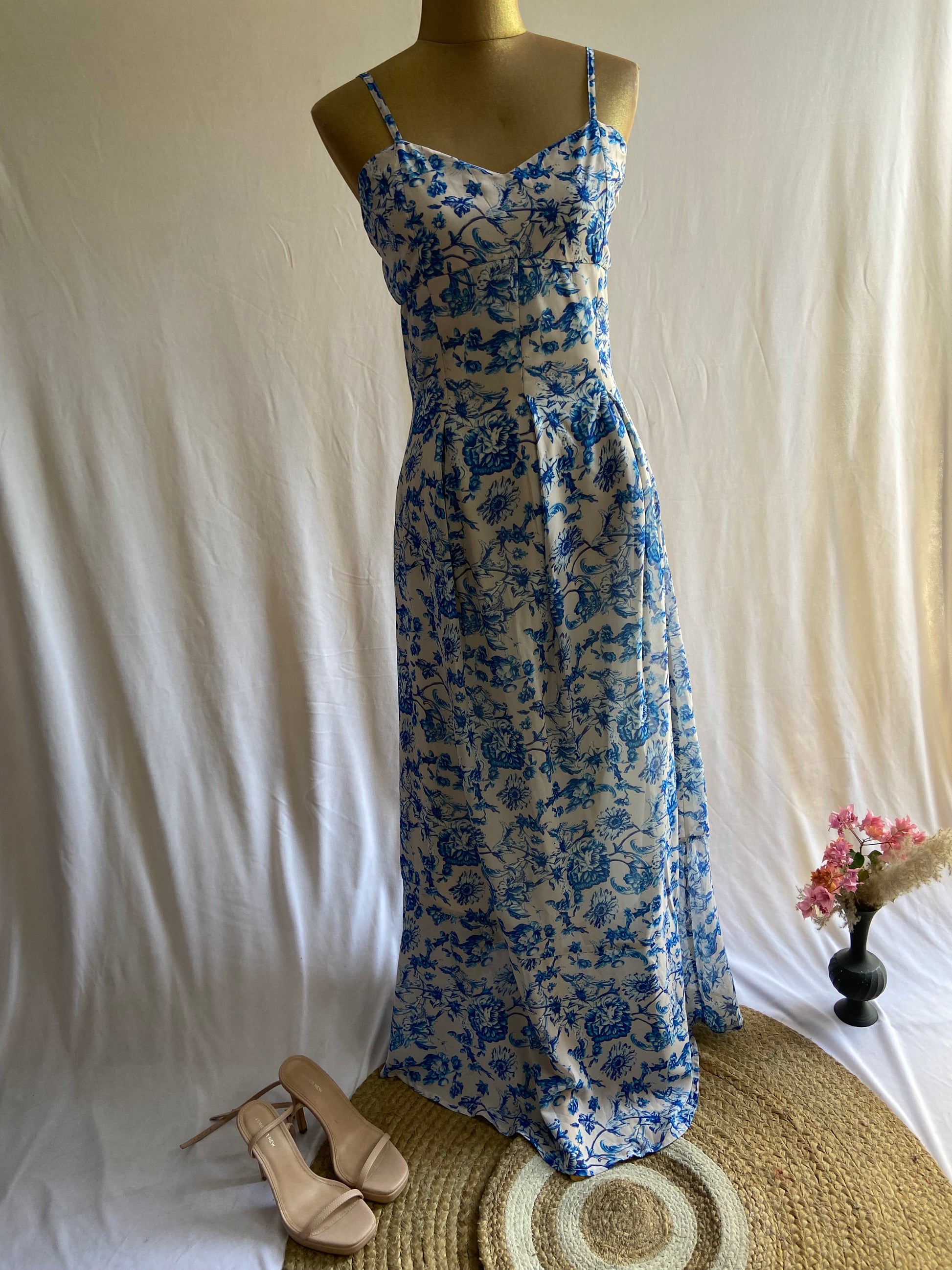 Step into timeless elegance with this beautiful blue floral print maxi dress. Featuring delicate spaghetti straps and a flattering sweetheart neckline, this dress is perfect for summer outings, garden parties, or beachside dinners. Made from lightweight, breathable fabric, it flows effortlessly with every step while ensuring all-day comfort. The classic blue and white floral pattern adds a touch of vintage charm, making it a must-have for any wardrobe.